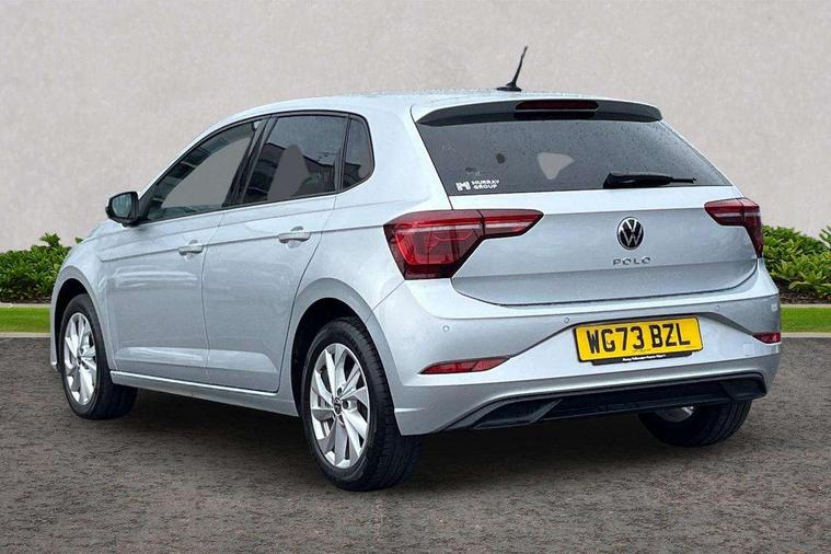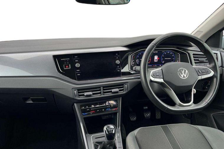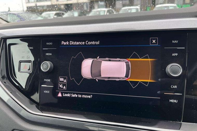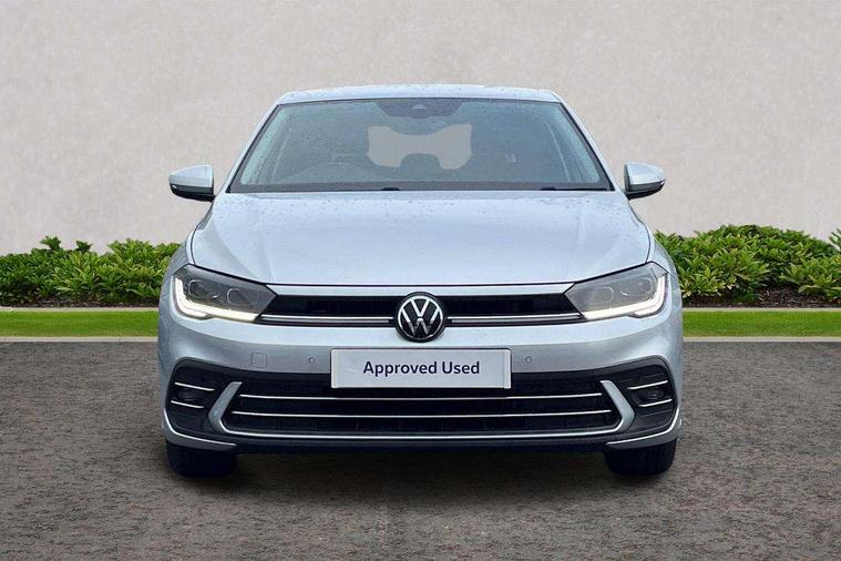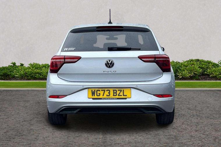 Adaptive cruise control without follow-to-stop and speed limiter, Bluetooth mobile phone interface, Digital Cockpit Pro with 10.25" Display, Driver alert system, Dynamic road sign display, Emergency call service, Power assisted speed sensitive steering, Preparation for We connect and We connect plus, Speedo and rev counter, electronic odometer, trip, service interval display and fuel gauge, Standard rear axle, Travel Assist - Lane keeping system and traffic jam assist, Travel assist including emergency assist, Trip computer, Warning signal and warning light for front and rear seatbelts not fastened, Washer fluid level indicator, Wireless app connect, Front wheel drive, Rear shock absorpion, Start-stop system with battery regeneration (recuperation - energy recovery during braking), DAB Digital radio, Diversity antenna for FM reception, Front and rear 6 speakers, Automatic dimming interior rear view mirror, Automatic headlights, Body colour door handles, Body coloured bumpers and radiator grille with chrome trims, Electric front windows, Heat insulating darkened glass in side and rear windows, Heat insulating glass windscreen, LED separate daytime running lights with coming/leaving home function, Power folding adjustable/heated exterior mirrors and front passenger exterior mirror lowering function, Rain sensor, Rear electric windows, Rear fog light, Rear side wing doors, Rear windscreen washer and wiper with interval delay, Third brake light, 12V power socket in centre console, 2 USB-C ports in the front, 2 USB-C charging sockets on the center console in the rear, 3 rear head restraints, 60/40 split folding rear seat and rear seat bench not split, Air care climatronic air conditoning system with active combination filter and 2-zone temperature control, Ambient lighting, Chrome plated radiator grille inserts, air vent surrounds and light switch surrounds, Door and side trim panel, Driver and front passenger seat height adjustment, Driver/passenger sunvisors with illuminated vanity mirrors, Front + rear carpet mats in recycled material, Front centre armrest, Front footwell illumination, Front seat backrest storage pockets, Front sports comfort seats, Handbrake lever handle in leather, Headliner in recycled material, Isofix child seat preparation easy-fit (for two outer rear seats, and front passenger seat) compatible with I-size, Leather trimmed gear knob, LED interior light with switch off delay and dimmer, 2 reading lights front and rear, Luggage compartment cover, Luggage compartment floor, Luggage compartment lighting, Lumbar adjustment for front seats, Multifunction steering wheel, Single front passenger seat, Standard pedal cluster, IQ LED matrix headlights pack - Polo, Light and vision pack - Polo, 3 point height adj front seatbelts + pretensioners, 3x3 point rear seatbelts, ABS, Driver and front passenger airbag with front passenger airbag deactivation, Drivers and front passengers safety optimised head restraints, ESC (Electronic stability control) + EDL (Electronic Differntial lock) and ASR (Traction control), Extended and predictive pedestrian/ cyclist protection, Front curtain and side airbags with center airbag, Front disc brakes, Hill hold control, Manual child lock in rear doors, Rear drum brakes, Single tone horn, Tyre pressure loss indicator, Alarm with interior protection, Anti-theft alarm system with interior monitoring, backup horn, and towing protection, Anti-theft wheel bolts, Electronic engine immobiliser, Chrome applications on rotary light, mirror adjustment, window regulator switches, outlet with frame in black, Low rolling resistance tyres,