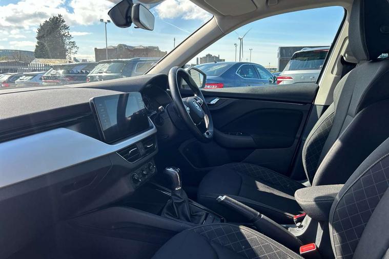 Amundsen satellite navigation with 9.2" glass colour touchscreen display, web radio, voice control and traffic sign recognition, Bluetooth system, E-call, Front assist system, Gesture control, PAS, Service indicator, Speed limiter, Wireless SmartLink for apple car play, android auto and mirrorlink, 8 Speakers, Auxiliary input socket, DAB Digital radio, Body colour bumpers, Body colour door mirrors and handles, Chrome grille surround, Dimming rear view mirror with black surround, Electrically adjustable and heated door mirrors, Front and rear electric windows, Headlight range control, Heated rear window, LED rear lights - low functionality, LED third brake light, Light sensors, Privacy glass, Rain sensor, Rear fog lights, Rear side wing doors, Rear wiper, 12V Accessory socket in centre console, 3 seat bench in 2nd row, Chrome inner door handles, Cloth upholstery, Front head restraints, Glove compartment with illumination, Height adjustable driver and front passenger seats - manual, Ice scraper, Isofix child seat fittings on outer rear seats, ISOFIX on front passenger seat, Manual lumbar support for front seats, Rake/reach adjustable steering wheel, Reading lights, Single front passenger seat, Sun visors with illumination on front passenger, Textile floor mats, Third rear headrest, Top tether for front passenger seat, Umbrella in driver's door, 3x3 point rear seatbelts, Airbags - driver and front passenger, ESP, Front passenger airbag deactivation switch, Front side airbags with curtain airbags, Hill hold control, Manual parking brake, Manual rear child locks, One tone horn, Rear disc brakes, Seatbelt reminder for driver an co-driver, Traction control, Tyre pressure monitor, Anti-theft alarm system with interior monitoring, backup horn, towing protection and remote central locking with SAFE system, Anti-theft wheel bolts, Electronic engine immobilizer, Silver haptic decorative insert on the dashboard with hot stamping in glossy black,