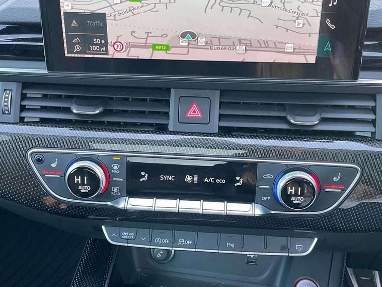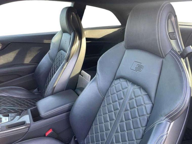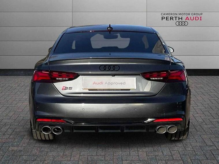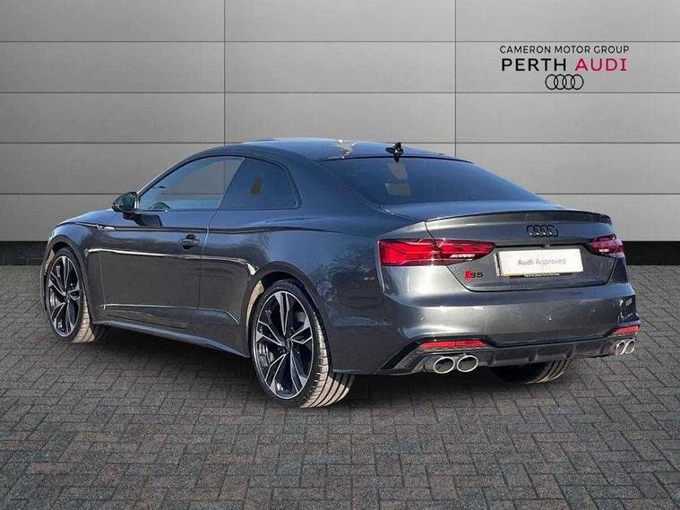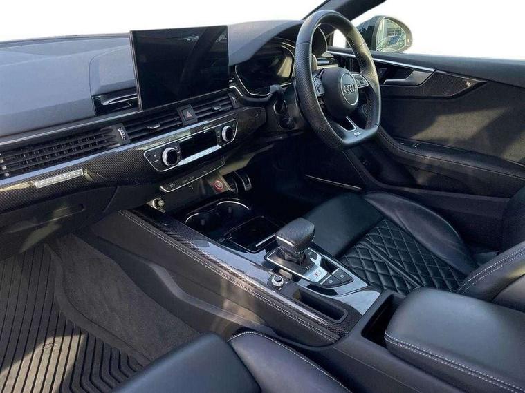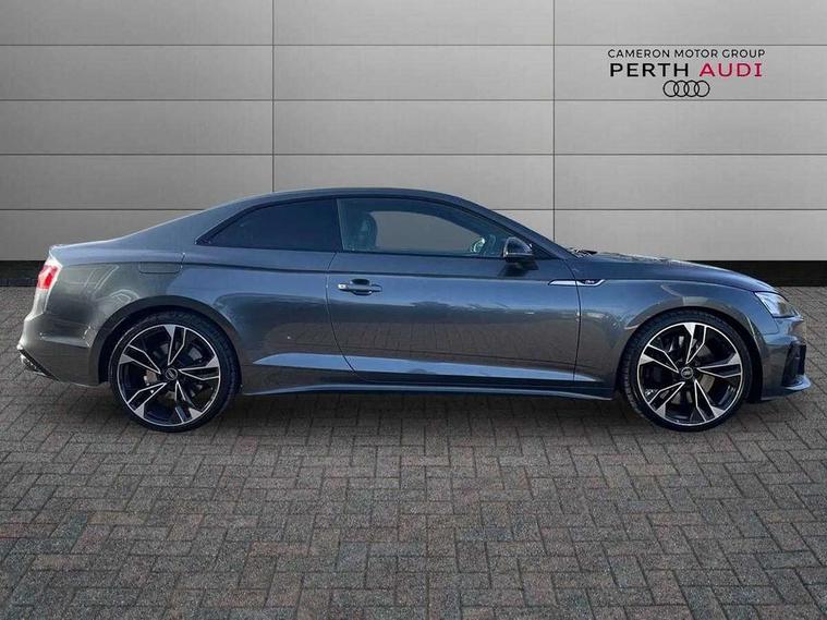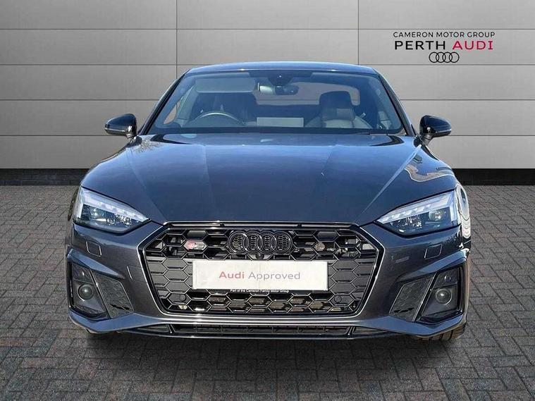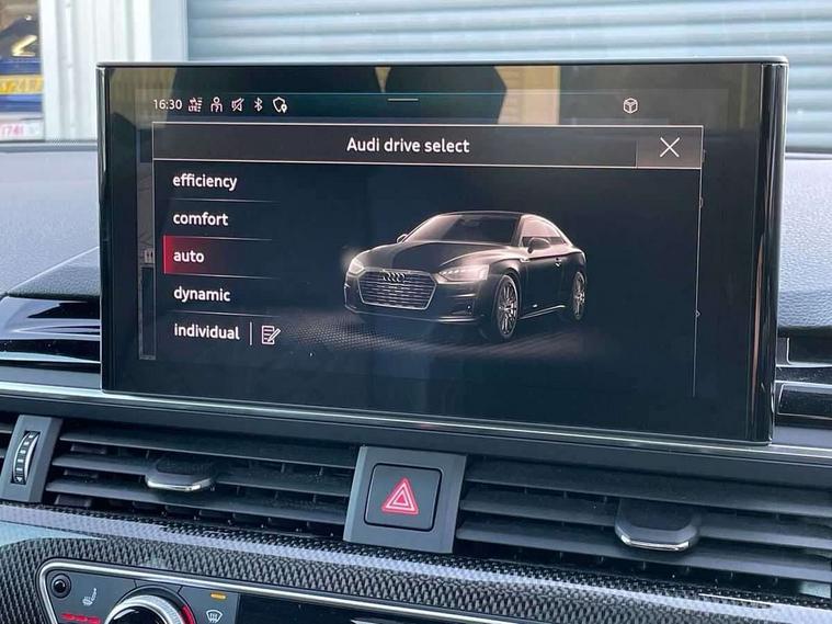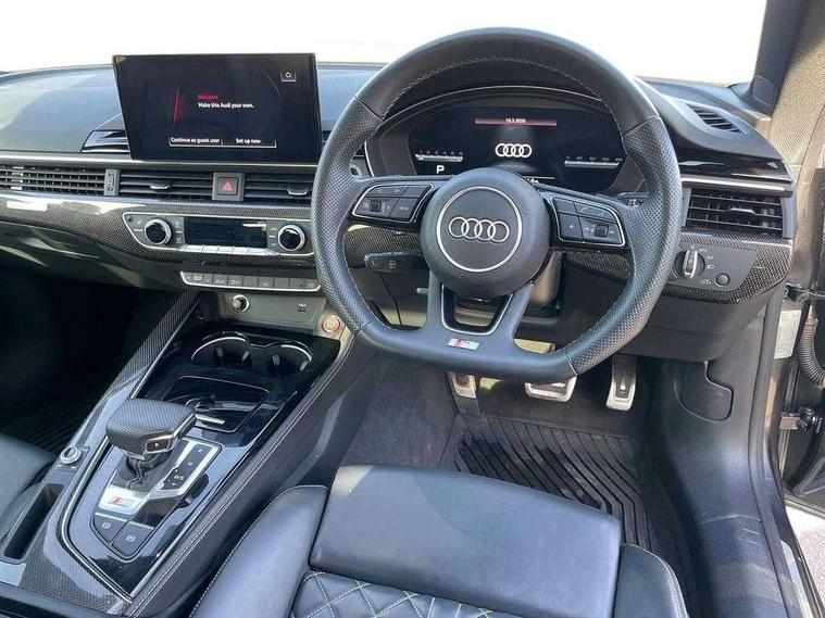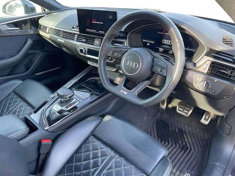Audi connect safety and service (e-call), Audi connect with Amazon Alexa Integration, Audi drive select (Auto, Comfort, Dynamic, Efficiency and Individual), Audi parking system plus with front and rear sensors, Audi smartphone interface, Audi virtual cockpit - 12.3" full colour digital instrument cluster, vehicle/engine speed, Radio/media information+Driver assistance systems, Automatic start-stop system with coasting functionality and efficiency programme, Bluetooth interface, Electric boot lid release, Electro-mechanical power steering, Email, calendar and text messages displayed via MMI, MMI nav+ with MMI touch - 10.1" high resolution MMI display, touch sensitive, 3D map, route/country info, dynamic route guide, personal route assist, Rear view camera, S instrument dials, Service interval indicator, Voice control system, Diesel particulate filter, S sports suspension, Audi sound system with 10 loudspeakers, CD player, DAB digital radio reception, Two additional USB ports for rear passenger in rear centre console, Two SDXC card slots, Audi Beam uses LEDs to project the Audi logo, Audi matrix LED headlights with LED rear lights + dynamic front and rear indicators, Auto dimming door mirrors, Auto dimming rear view mirror, Black door mirror housings, Body colour door handles, Body colour front spoiler lip, Body colour side sill trim, Electric adjustable heated door mirrors, Electric folding door mirrors, Electric front windows, Front and rear bumpers with side skirts, Front fog lights, Kerb-view function for passenger side, LED daytime running lights, LED side indicator lights integrated into door mirrors, LED third brake light, Privacy glass, Rain and light sensors, Rear boot, Rear side wing doors, S radiator grille in twilight grey matt with dual struts in aluminium and S5 logo, S rear diffuser in twilight grey matt and honeycomb grille in black, S specific dual branch chrome tailpipes with twin oval pipes on left and right, S specific side air inlets in titan black with chrome inlays in unique S design, Variable front intermittent wipers, Windscreen with acoustic glazing, 2 seat bench in 2nd row, 40/20/40 split folding 2 seater rear seat bench with rear centre armrest, Adjustable steering column, Black cloth headlining, Black leather gear lever knob, Contrast stitching on seats, steering wheel and gear lever gaiter, Deluxe 3 zone electronic climate control, Electrically adjustable front seats, Fine nappa leather upholstery with S embossed logo + super sports seats, Front centre armrest, Front head restraints, Front/rear floor mats, Gear lever with diamond S badge, Heated front seats, Illuminated door sill trim with S logo, ISOFIX child seat mounting and top tether, Key with S logo, Luggage compartment mat, Pneumatically adjustable lumbar support with massage function, Rear headrests, Single front passenger seat, Stainless steel pedals, Sunvisors with vanity mirrors, Black styling pack - A5 Coupe/Sportback, Extended leather pack - A5, LED interior light pack - A5/RS5, 2 x 3-point rear seatbelts, 6 airbags - Driver, front passenger, curtain and side airbags, Electromechanical parking brake, Electronic Stabilisation Control (ESC) including ABS, ASR and EDL, Front brake calipers painted in black with S5 logo, Front passenger airbag deactivation, Height adjustable front seatbelts, Hill hold assist, Multi collision brake assist, Pop-up bonnet for pedestrian protection, Pre sense city, S model enhanced braking system, Seatbelt monitoring, Tyre pressure warning, Variable restraint system, Warning triangle and first aid kit, Anti theft alarm system, Anti theft wheel bolts, Immobiliser, Keyless Go, Remote central locking, 20" 5 twin spoke polygon design alloy wheels in gloss anthracite black and gloss turned finish, Tool kit, Tyre repair kit,