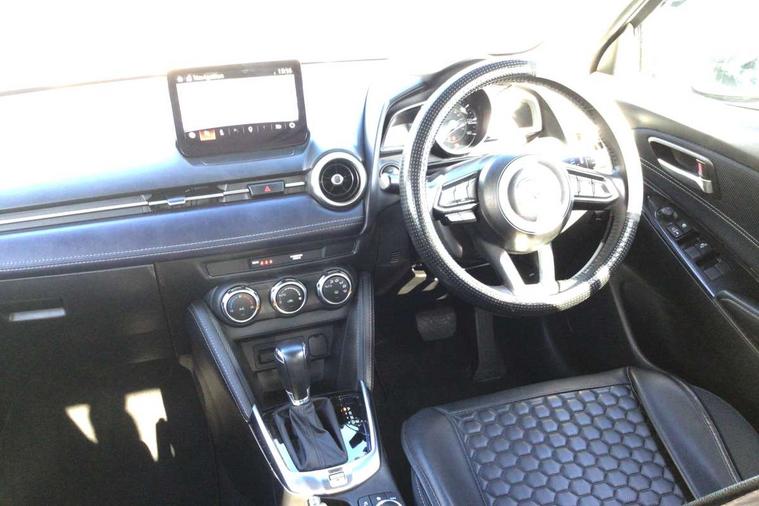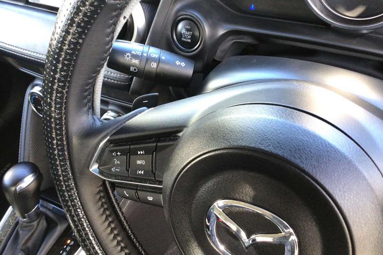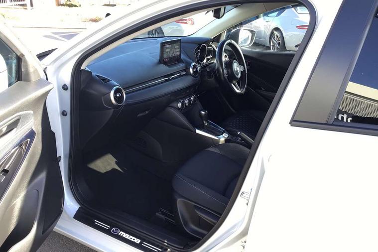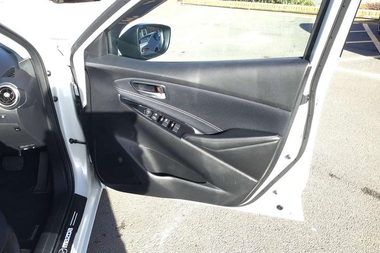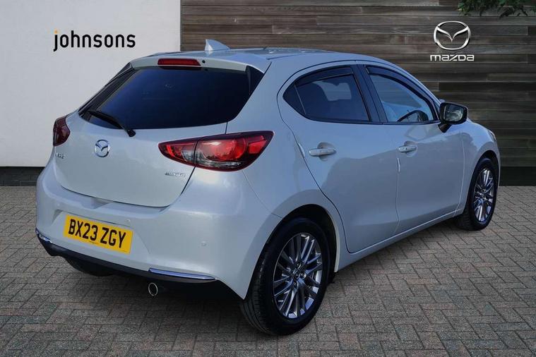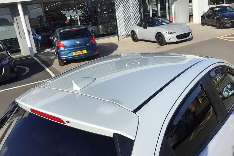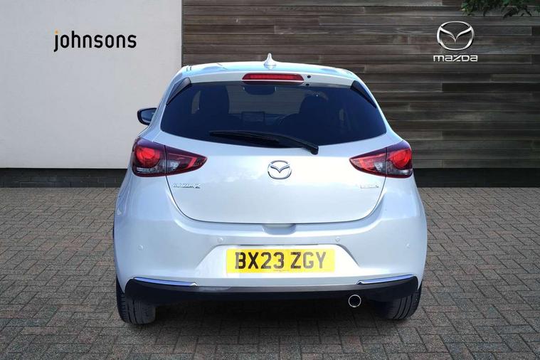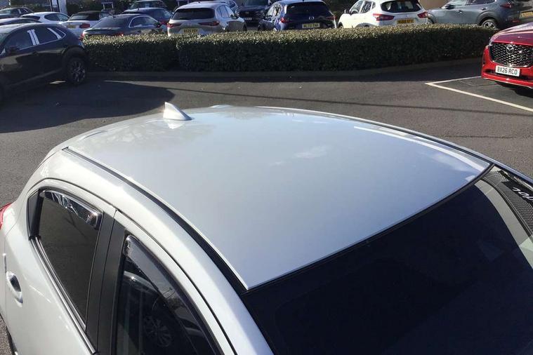 Adjustable speed limiter, Analogue speed display meter, Cruise control, Digital instrument cluster, Digital rev counter, Drive mode selection and paddle shift, E-call, Emergency stop signalling system, Engine start/stop button, Integrated bluetooth, Lane departure warning system, Lane keep assist, Mazda connect with 8" colour touch screen, Navigation system, PAS, Rear parking sensor, Service indicator, Trip computer, Wireless Apple CarPlay and wired Android Auto, i-stop, AM/FM/DAB radio with 6 speakers with USB and AUX inputs, Multimedia Commander including separate volume dial, Steering wheel mounted audio/bluetooth controls, Auto dimming rear view mirror, Auto headlight levelling, Body colour door mirrors, Body coloured front bumper with bright lower bezel, Body coloured rear bumper with bright lower mouldings, Chrome exhaust tailpipes, Chrome finish signature wing on front grille, Chrome front lower bezel, Chrome rear lower bezel, Coming/leaving home lighting function, Dusk sensing headlights, Electric adjustable/heated/folding door mirrors, Electric front/rear windows with one touch auto up/down for driver's window, Gloss black front grille, LED Headlights, LED indicator lights, LED third brake light, Privacy glass, Rain sensing front wipers with adjustable sensitivity and speed, Rear side wing doors, Rear wiper, Shark fin antenna, Signature LED daytime running lights, 3 seat bench in 2nd row, 60/40 split rear seats, Climate control air conditioning, Cloth upholstery, Driver, Front passenger and two rear grab handles with coathooks, Drivers seat manual slide recline and height adjustment, Drivers/front passengers covered vanity mirrors and drivers ticket holder, Folding rear seats, Front centre storage with two cupholders, Front head restraints, Front passenger and driver door pockets, Front passenger seat manual slide, recline and height adjust, Front passenger seatback pockets, Gear shift indicator, Glovebox, Interior courtesy light with integrated spotlight, ISOFIX child seat anchorage points attached on outer rear seats, Leather handbrake, Leather steering wheel and gear knob, Luggage compartment light, Satin silver dials, Single front passenger seat, Three height adjustable rear head restraints, Tilt/telescopic adjustable steering wheel, 2x3 point front seatbelts with pre-tensioners, 3 point seatbelts on all rear seats, Anti-lock braking system (ABS), Autonomous emergency braking, Collision mitigation braking system, Dynamic stability control + Traction control, ESP, Front and rear curtain airbags, Front driver, passenger and rear seat seatbelt warning, Front dual stage driver and single stage front passenger airbags, Front side airbags, Front smart city brake support, G-Vectoring control plus, Hill launch assist, Manual child lock in rear doors, Passenger airbag cut-off switch, Tyre pressure monitoring system, Deadlocking system, Immobiliser, Power door locks, Remote central locking, Smart keyless entry, Thatcham accredited alarm and immobiliser, Dark blue soft touch dashboard, 16" Bright finish alloy wheels, Emergency tyre repair kit,