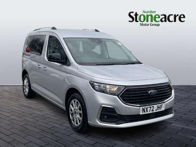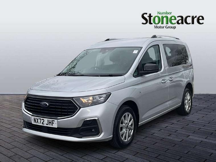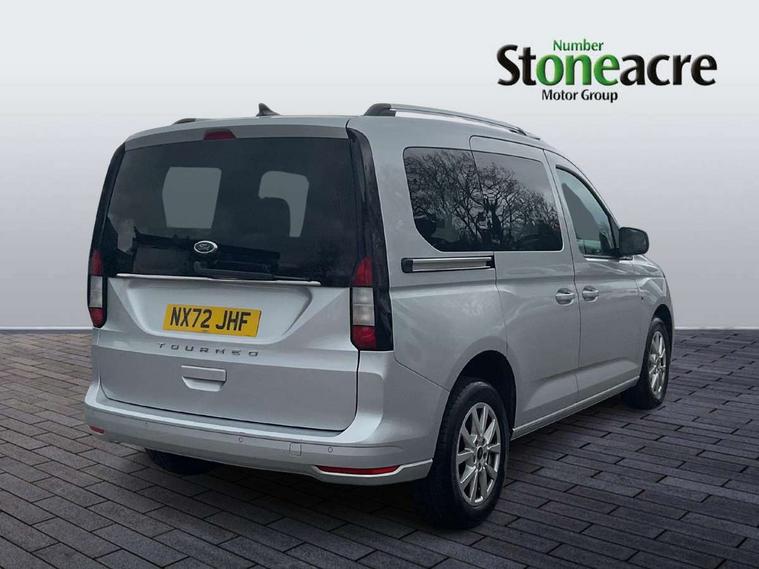 Analogue cluster, Brake wear indicator, Driver impairment monitor, E-call, Embedded modem, Mobile phone interface, PAS, Stop/start system with regenerative braking, Trip computer, 50 litre fuel tank, Diesel particulate filter, Standard duty alternator, Standard duty battery, Media hub 2x USB and rear USB Unit, Steering wheel mounted radio controls, Adaptive cornering lamps includes fog lamp, Auto headlamps On/off, Automatic windshield wiper, Black coloured exterior mirror finish, Black grille with chrome surround, Body coloured exterior door handles, Body coloured exterior tailgate handles, Body coloured plastic front bumper, Body coloured plastic rear bumper, Dark tinted rear privacy glass, Daytime running lights, Dual power fold heated mirrors, Dual sliding side load doors, Electric rear window defroster, Electric windshield defroster, Electrochromic inside mirror, Fixed 3rd row LHS and RHS window, Fixed rear window, Follow me home headlamps, Front bumper with chrome insert, High mounted stop lamp, Intermittent variable windshield wiper, Liftgate rear cargo door, Rain sensor, Rear registration plate light, Rear window wash/wipe, Roof rack silver painted rails, Standard green glass windscreen, Tail lamp - Level 1, Weather protection seals, 2 front row cupholders, 2nd row rear overhead courtesy light, 3 seat bench in 2nd row, 3x hooks on trim panel storage, 4 tie down hooks, A/C Refrigerant - HF01234YF, Air register Chrome, B Pillar assist handle, Base luggage compartment trim, Bubble fabric upholstery, Carpet load floor cover, Carpet partial floor cover, Center console level 4, Driver seat rotary recliner, Front door trim panel - Level 2, Front interior grab handles, Front seat tray table, Front throw in carpet floor mats, Glovebox lid with light, Header courtesy light with maplight, Height adjustable headrests, IP open storage above driver area, LED Load compartment light, Misfuel protection cap, Overhead storage shelfs, Painted instrument panel, Passenger seat rotary recliner, Passenger sunvisor with mirror, Pollen filter without carbon filter, Power point plug 2 off, Reach + rake adjustable steering column, Rear luggage compartment bag hook, Recirculation heater, Regular size washer tank, Second row 60/40 folding seats, Sensico gearshift knob, Sensico steering wheel, Side/rear door trim panel - Level 1, Single driver sunvisor illuminated with mirror, Single front passenger seat, Standard design foot pedal, Storage in front cab doors with bottle holder, Storage in rear doors with bottle holder, Driver assistance package - Tourneo Connect/ Grand Tourneo Connect, High acoustics package - Tourneo Connect/ Grand Tourneo Connect, Ice feature pack 4 - Tourneo Connect/ Grand Tourneo Connect, Restrain device pack 3 - Tourneo Connect/ Grand Tourneo Connect, Seat pack 18 - Tourneo Connect/ Grand Tourneo Connect, 2nd row rear seat belts, 4 wheel disc brakes, Black seat belts, Brakes - (HLA)Hill launch assist/TC, Driver, passenger and 2nd row rear seat belt reminder, Electric parking brake with auto hold function, Electronic emergency brake assist, Emergency brake light flashing, ESC with ABS, Front 2 way head restraints, Front active seat belts and manual adjuster seat belts, Front airbag restraint and passenger airbag restraint, Front side airbags, Isofix hard point attachment, Manual passenger airbag deactivation function, Post collision braking, Rear 2 way head restraints, Rear removeable package tray, Tire pressure sensors, 2 remote flip keys, Child proof rear door locks, Configurable Unlocking 2, Engine immobilizer - Securilock, Keyless entry and start with double locking, Locking wheel lug nuts, Power door dead locks and enabled door automatic relocking, Thatcham category 1 alarm B, 16" Titanium alloy wheels with centre wheel hub caps and standard tread, Front tire and rear tire tread, Less wheel cover, Tyre repair kit,