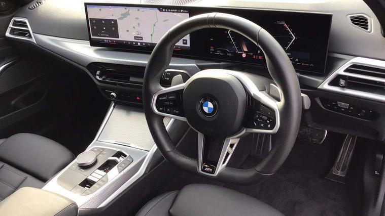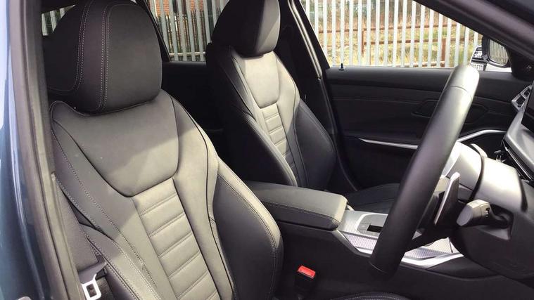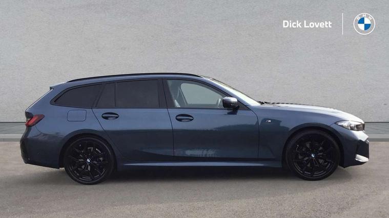 Active guard plus, Attentiveness assist, Automatic Start/stop button, Bluetooth Wi-Fi interface, BMW iDrive, BMW Teleservices, ConnectedDrive Services - last state call, Electric bootlid, Live cockpit plus with Navigation + 12.3" instrument display + 14.9" display, Intelligent voice assist, 2 USB, 4G LTE connect, Oil sensor for level and grade, Personal e-SIM, Shifting point display, Variable sport steering, Double joint spring strut front axle, Electronic differential lock control (EDLC), Fuel tank breather system, Steptronic Sport automatic transmission with steering wheel mounted gearshift paddles launch control and xtreme drive lever control, DAB tuner, 3rd brake light, Auto dimming rear view mirror, Automatic headlight beam throw control with load dependent regulating reaction, dynamic compensation of braking dive and acceleration squat, Bi-LED Low and high beam headlights, BMW emblem, engine compartment lid and tailgate, Body colour roof fin, Door sill strips, Electric windows - front and rear, with open/close fingertip control, anti-trap facility and comfort closing, Fading support, Folding wing mirror with auto dimming, Follow me home headlight function, Front and rear bumper system with replaceable deformation elements, Front apron plastic in body colour, Fuel filler flap - right rear in body colour, Heat protection glazing on front windows and windscreen, Heated washer jets, High gloss chrome kidney frame with high gloss black kidney struts, High gloss shadow line roof rails, LED daytime running lights, LED rear lights, LED turn indicator, Licence plate panel integrated into front bumper and tailgate, M high gloss shadow line exterior trim, Matt black B-pillar finsher, Matt black window recess cover, Model designation on right side of tailgate, One piece front bumper cover including towing eye cover in body colour, Rain sensor with automatic headlight activation, Rear side wing doors, Rear wiper, Reversing lights, Side frame decorative moulding black matt, Trailer stabilisation logic, Visible exhaust tailpipe finisher, Welcome lights in interior and door handle area, 12V power socket in front storage compartment, 2 front cupholder in centre console with clamping elements and matt black inlay, 3 seat bench in 2nd row, 3 spoke M Sport multifunction flat bottom leather steering wheel, 3 zone automatic air conditioning, 40:20:40 split folding rear seat with loading system, Anthracite headlining, Armrest integrated in front and rear door trim + front centre console armrest, BMW ID, Cruise control operation in steering wheel, Driving experience mode switch, Folding rear centre armrest with 2 cupholders, Front and rear headrests, Front and rear velour floor mats, Front reading light, Heated front seats, Height adjustable mechanically and infinitely variable steering column, Illuminated armrest storage compartment, Illuminated glove compartment, Illuminated luggage compartment, Lashing eyelets in luggage compartment, Single front passenger seat, Sunvisors with illuminated vanity mirrors and ticket pocket, Toolkit located in luggage compartment, Connected pack professional - 3 Series Saloon/Touring, Interior and exterior mirror pack - 3 Series Touring/Saloon, M sport exterior styling pack - 3 Series Saloon/Touring, Parking assistant pack - 3 Series, 3x3 point rear seatbelts, BMW emergency call, Child locks on rear doors, Crash sensor activating of airbags, Unlocking doors, hazard warning lights, interior light, safety battery terminal, Drive-off assistant, Driver and front passenger with seat occupancy detection for driver's and passenger side, Driver and passenger side airbags, body protection at side and airbags deploy from seat backrests, Dry braking, Dynamic brake control, Dynamic stability control + (DSC+) - Anti-lock Braking System (ABS) with brake assist and cornering brake control + Automatic Stability Control (ASC), Dynamic Traction Control - DTC, Electric parking brake including automatic hold function and automatic release of the parking brake when driving off, Front airbag deactivation, Front airbags for driver and front passenger, Head airbags in 1st and 2nd row, head protection at side, curtain airbags open from headliner above 1st and 2nd row, Plastic fuel tank, Side impact protection, Tyre pressure sensors, Ventilated front and rear disc brakes, Warning triangle and first aid kit, Alarm system, Centre lock switch, Closing system with central locking, Electronic vehicle immobiliser, Locking wheel bolts, Tyre repair kit,