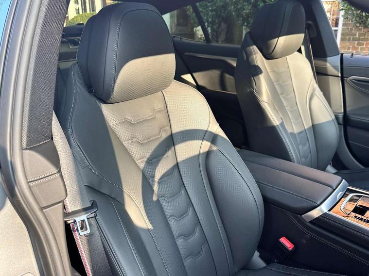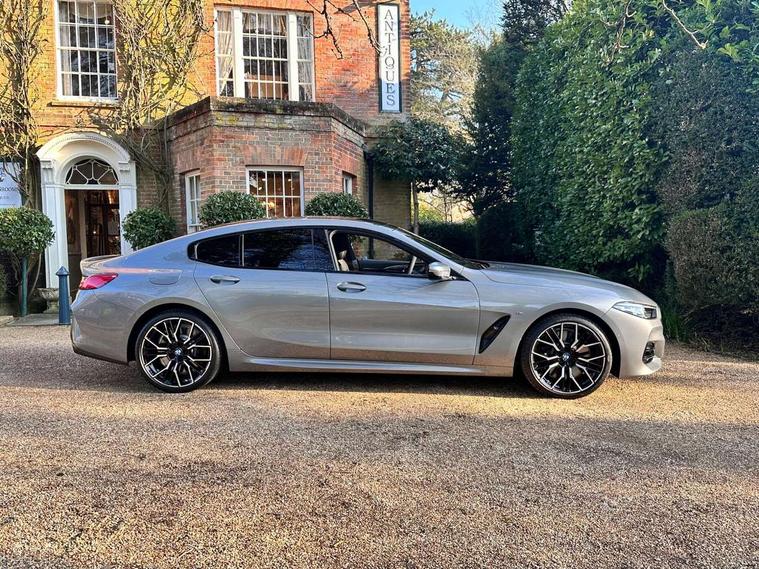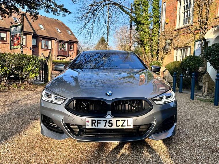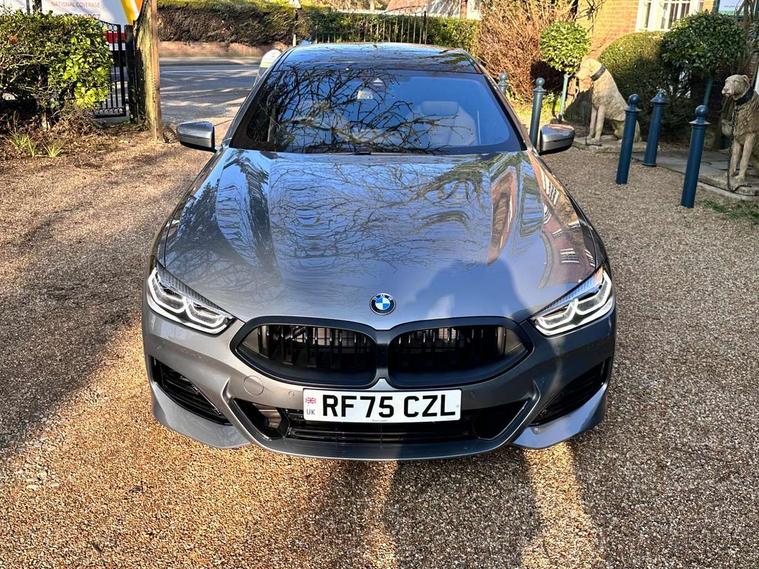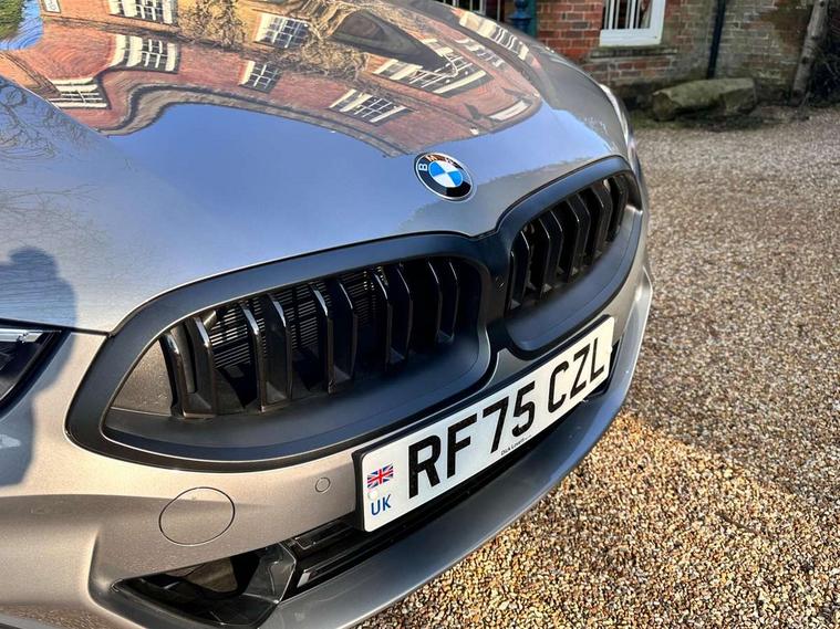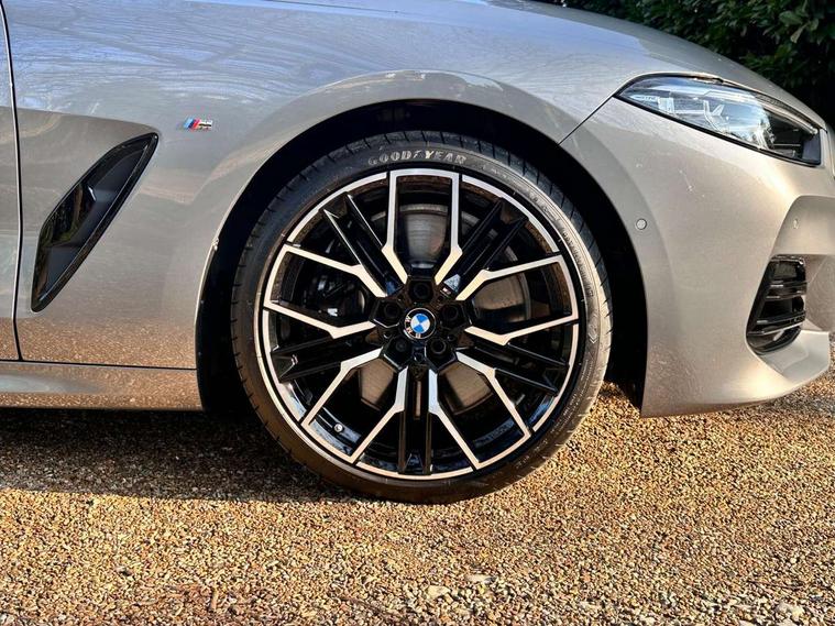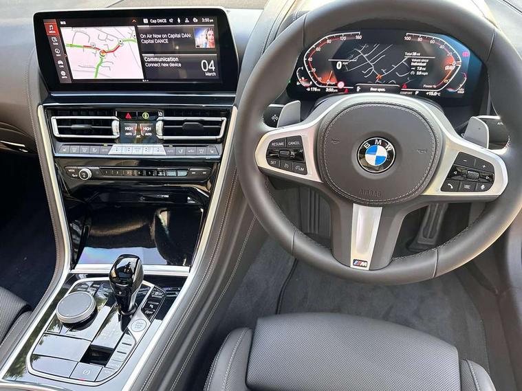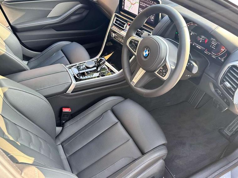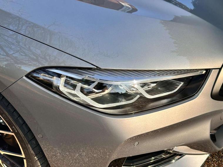 Automatic tailgate operation, remote opening with key, closing by tailgate button or remote control including tailgate in LED technology, Bluetooth hands free facility with USB audio interface, voice control and enhanced bluetooth + Wireless charging, BMW ConnectedDrive online services, BMW legal emergency call, BMW Live cockpit professional with 12.3" instrument display, BMW Teleservices, Brake pad wear indicator, Check control system, Condition based service, Drive experience control with Sport, Comfort, Eco Pro and Adaptive modes, Electric bootlid, Engine start/stop button, Head up Display, iDrive controller with shortcut buttons, Integrated owners handbook, Light on warning, Oil sensor for level and grade, On board computer, Outside temperature display, Service interval indicator, Servotronic system, Wi-Fi hotspot, Adaptive M suspension, Double wishbone front axle, Dynamic Damper Control, Eight speed sport automatic transmission, M Sport differential, Petrol Particulate Filter, Sport exhaust system, DAB Digital radio, Favourite buttons, Automatic windscreen wipers and automatic headlight, Carbon core, Climate comfort windscreen, Daytime driving lights front and rear active, Dynamic brake lights, Exterior mirrors - Floating design mirror, electric adjust/heated/folding, aspherical, Follow me home headlight function, Frameless interior mirror, Front and rear bumper system with replaceable deformation elements, Front electric windows, Front ornamental grille with kidney grille bars, Heat protection, sun protection glazing, Heated rear window, glass, Heated windscreen washer jets, High beam assistant, Illuminated door handles, Illuminated radiator grille iconic glow, LED rear lights, Model logo - right tailgate in chrome, M emblem on side panel in light chrome, badge on bonnet and tailgate, Rain sensor and automatic driving lights control, Rear boot, Rear side wing doors, Side window graphic in black high gloss, Sun protection glass, Thermally insulated windscreen, Third LED technology brake light in rear window, Welcome lights in interior and door handle area, 1 x 12V power socket in front centre console, 2 cup holders in front, 2 rear head restraints, 3 spoke M sport leather multifunction steering wheel with shift paddle, 4 zone control automatic air conditioning, 5 seats, 50/50 split folding rear seat, Ambient light with dynamic interior light, BMW ID, Front and rear seat heating, Front door pockets, Front entry lights doors, Front reading lights, Front sun visors with ticket holder and illuminated mirror, Interior lighting - Interior light front centre above interior mirror, luggage compartment light, automatic interior light system soft on/soft off, Lashing eyelets, Lockable glove compartment with light, Microfilter and active carbon filter, Steering column with adjustable height and length and activation via control on the steering column, Storage compartment under front centre armrest with light, 1 x 12V power socket and USB, Through loading function, Connected professional pack - 8 Series, M sport exterior styling aerodynamics pack - 8 Series, 3x3 point rear seatbelts, ABS/EBD, Active protection, Airbags - Driver and front passenger airbag with seat occupancy detection, knee, side and front passenger seat airbag deactivation, Brake discs, compound structure, Child locks on rear doors, Cornering brake control (CBC), Crash sensor activating central locking release, hazard warning lights, fuel cut off, interior lighting, safety battery terminal clamp and airbags, DSC - Dynamic Stability Control, Dynamic brake control, Dynamic Traction Control - DTC, Electromechanical parking brake with automatic drive away release and auto hold function, Front three point with pyrotechnical belt latch tensioner seat belts, belt force limiter and belt stopper, Head airbags for 1st and 2nd seat row, Hill start assist, Integrated brake system, ISOFIX child seat mounting for the two outer rear seats, Rear three point with pyrotechnical belt latch tensioner seat belts and belt force limiter, Side impact protection, Tyre pressure monitoring system (TPMS), Warning triangle and first aid kit, Alarm system (Thatcham 1) with electronic engine immobiliser, Centre lock switch, Closing system with central locking, Comfort access system, Locking wheel bolts, Vehicle key with exclusive M designation, Instrument and upper door panel in black walknappa leather with contrast stitching,
