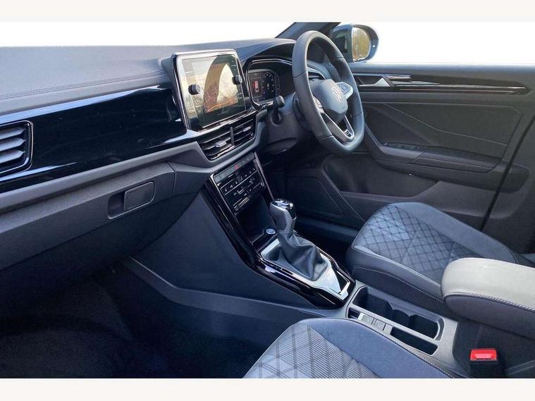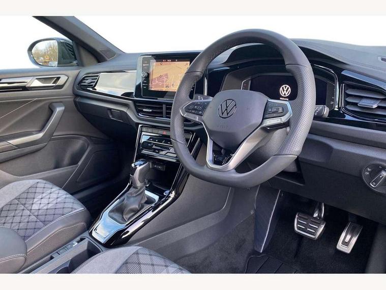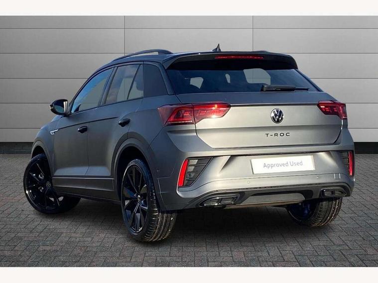 10.25" Digital cockpit pro, Advanced driver attention and drowsiness monitor, Emergency call service, Lane keeping system Lane Assist, Mobile phone interface, Modified key software - reduce switch off time for key status change to Long no motion, Online services, Park assist including front and rear parking sensors, Power assisted speed sensitive steering, Rear view camera, Service interval indicator, Tailgate/trunk lid release from outside, Think blue trainer driver tips and journey analysis, Warning sound and light for front seatbelts unfastened, Wireless app connect, Battery regeneration during braking, Rear shock absorption chassis with increased ride height, Start/stop function with battery regeneration, DAB Digital radio, Diversity antenna for FM reception, Music playback - MP3, WMA and AAC files, SD card slot, Simultaneous pairing of 2 compatible mobile devices, Title and cover art display, We Connect and We Connect Plus functionality, Advanced dynamic light assist for LED matrix headlights, Auto dimming interior rear view mirror, Automatic hazard lights activation under emergency braking, Black roof rails, Dynamic cornering light, Dynamic headlight range control with self adjusting whilst driving, Electrically adjustable and heated door mirrors, Extended roof spoiler, Exterior ambient lighting, Exterior mirrors aspherical on driver side, convex on front passenger side, External USB type C socket and charging sockets, Front windscreen wiper with intermittent wipe and 4 position delay, Heated rear window, Illuminated front grille, IQ LED matrix headlights, LED 3rd brake light, LED rear number plate lights, LED rear tail lights with dynamic turn signal, LED separate daytime running light, Light mode for poor weather, rain, fog or snow, Power windows with comfort operation and circuit breaker, Privacy glass for rear side windows and rear window, R-Line design body coloured bumpers, Rain sensor, Rear exhaust tailpipe, Rear fog light on one side and reversing lights on both sides, Rear side wing doors, Rear wash/wipe with intermittent wipe setting, Remote electrically foldable door mirrors, puddle lights and reverse activated passenger's door mirror, Tilting and sliding panoramic sunroof with rear panoramic sunroof, 12V power socket in centre console, 3 rear head restraints, 3 seat bench in 2nd row, 4 load lashing points in luggage compartment, Air care climatronic air conditoning system with active combination filter and 2-zone temperature control, Chrome plated radiator grille inserts, air vent surrounds and light switch surrounds, Door and side trim panel with leatherette insert, Drawer under drivers seat, Front + rear carpet mats, Front centre armrest, Front comfort sports seats, Front cupholders x 2, Front footwell illumination, Front reading light, Front scuff plates with R Line logo, Front seat back storage pockets, Glove compartment door with light, Instrument lighting, white adjustable panel illumination, Interior ambient lighting and surround lighting, Interior light delay, Isofix child seat preparation, Leather gearshift handle, Load-through provision with cup holder when folded down ('Unsplit rear seat bench, split folding backrest, with centre armrest), Luggage compartment lighting, Non-folding front passenger seat backrest, Single front passenger seat, Stainless steel pedals, Storage compartment in left and right luggage area, Storage compartment in rear doors, Storage compartments in driver and front passenger doors, Sunvisors with illuminated vanity mirrors, Variable boot floor, height adjustable and removable, Black design pack - T-Roc black edition plus, Easy open package with safelock - T-Roc, Sport pack with sports suspension - T-Roc, 3 point height adj front seatbelts + pretensioners, 3 point seatbelts in outer rear with ECE label, ABS, Child locks on rear doors, City emergency braking and pedestrian monitoring, Driver and front passenger airbag with front passenger airbag deactivation, Driver and front passenger safety-optimised head restraints, Drivers seatbelt reminder, Electronic parking brake, Electronic Stability Control (ESC) inc EDL (Electronic Differential Lock) and ASR (Traction Control), Front and rear passengers curtain airbag system including front side airbags, Front disc brakes, Hill start assist, Predictive pedestrian protection, Rear disc brakes, Two tone horn, Tyre pressure loss indicator, Volkswagen roadside assistance, Keyless locking and starting system keyless access with safelock, Gloss deep iron dash trim, 19" Misano black diamond turned alloy wheels with low rolling resistance and anti theft wheel bolts, Tool kit, Trims for alloy wheels, Tyre mobility kit including compressor and sealing foam,