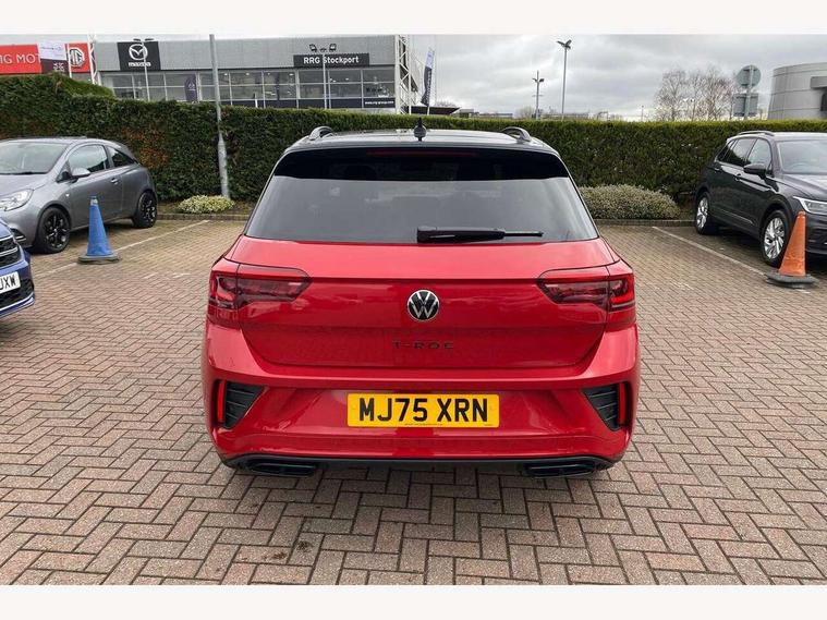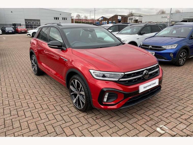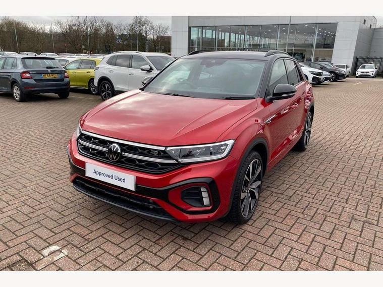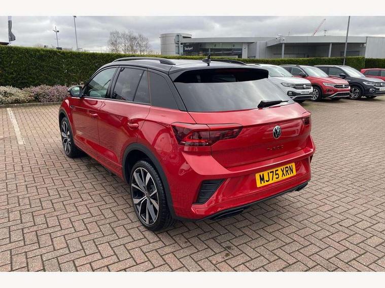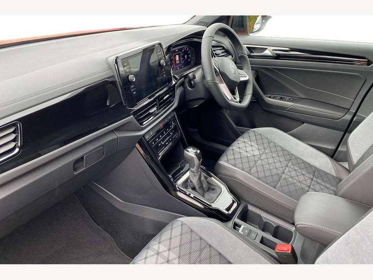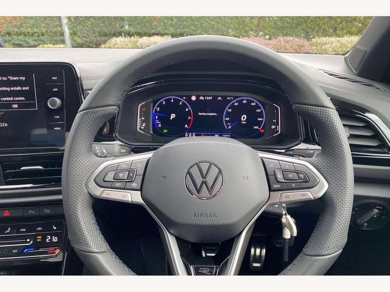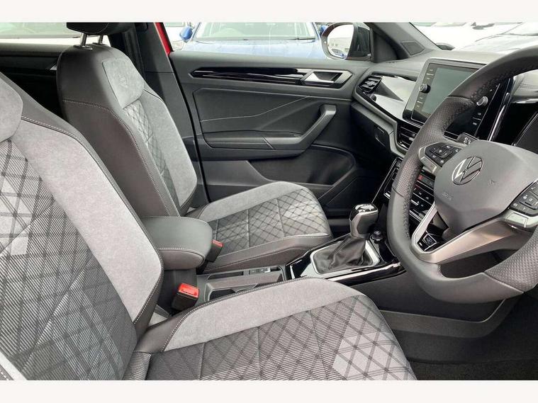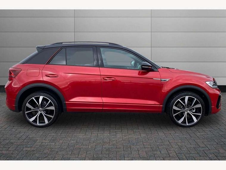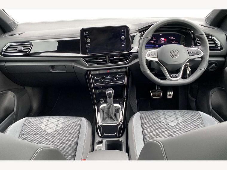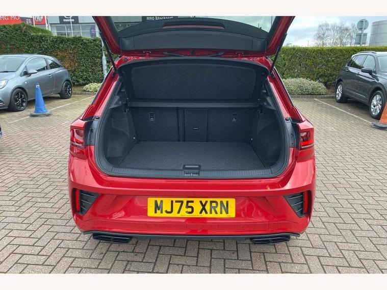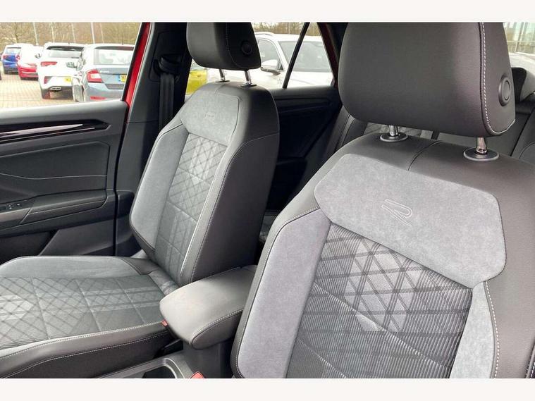 10.25" Digital cockpit pro, Advanced driver attention and drowsiness monitor, Emergency call service, Lane keeping system Lane Assist, Mobile phone interface, Modified key software - reduce switch off time for key status change to Long no motion, Online services, Park assist including front and rear parking sensors, Power assisted speed sensitive steering, Service interval indicator, Tailgate/trunk lid release from outside, Think blue trainer driver tips and journey analysis, Warning sound and light for front seatbelts unfastened, Wireless app connect, Battery regeneration during braking, Rear shock absorption chassis with increased ride height, Start/stop function with battery regeneration, DAB Digital radio, Diversity antenna for FM reception, Front and rear 6 speakers, Music playback - MP3, WMA and AAC files, Premium USB cable in choice of either Apple or Android smartphone compatibility, SD card slot, Simultaneous pairing of 2 compatible mobile devices, Title and cover art display, We Connect and We Connect Plus functionality, Auto dimming interior rear view mirror, Automatic hazard lights activation under emergency braking, Automatic headlight control with LED separate daytime running lights with coming/leaving home function, Dynamic cornering light, Electrically adjustable and heated door mirrors, Extended roof spoiler, Exterior mirrors aspherical on driver side, convex on front passenger side, External USB type C socket and charging sockets, Front windscreen wiper with intermittent wipe and 4 position delay, Heated rear window, Illuminated front grille, IQ LED matrix headlights, LED 3rd brake light, LED rear number plate lights, LED rear tail lights with dynamic turn signal, Light mode for poor weather, rain, fog or snow, Power windows with comfort operation and circuit breaker, R-Line design body coloured bumpers, Rain sensor, Rear exhaust tailpipe, Rear fog light on one side and reversing lights on both sides, Rear side wing doors, Rear wash/wipe with intermittent wipe setting, Remote electrically foldable door mirrors, puddle lights and reverse activated passenger's door mirror, 12V power socket in centre console, 3 rear head restraints, 3 seat bench in 2nd row, 4 load lashing points in luggage compartment, Air care climatronic air conditoning system with active combination filter and 2-zone temperature control, Artvelours cloth upholstery, Black roof lining, Chrome plated radiator grille inserts, air vent surrounds and light switch surrounds, Door and side trim panel with leatherette insert, Drawer under drivers seat, Driver seat height adjust, Driver's seat lumbar support, Front + rear carpet mats, Front centre armrest, Front comfort sports seats, Front cupholders x 2, Front footwell illumination, Front reading light, Front scuff plates with R Line logo, Front seat back storage pockets, Glove compartment door with light, Instrument lighting, white adjustable panel illumination, Interior ambient lighting and surround lighting, Interior light delay, Isofix child seat preparation, Leather gearshift handle, Leather wrapped multifunction steering wheel with paddle shift, Load-through provision with cup holder when folded down ('Unsplit rear seat bench, split folding backrest, with centre armrest), Luggage compartment lighting, Non-folding front passenger seat backrest, Passenger seat height adjuster, Passenger seat lumbar support, Single front passenger seat, Stainless steel pedals, Storage compartment in left and right luggage area, Storage compartment in rear doors, Storage compartments in driver and front passenger doors, Sunvisors with illuminated vanity mirrors, Variable boot floor, height adjustable and removable, Winter pack without heated windscreen washer jets - T-Roc, 3 point height adj front seatbelts + pretensioners, 3 point seatbelts in outer rear with ECE label, ABS, Child locks on rear doors, City emergency braking and pedestrian monitoring, Driver and front passenger airbag with front passenger airbag deactivation, Driver and front passenger safety-optimised head restraints, Drivers seatbelt reminder, Electronic parking brake, Electronic Stability Control (ESC) inc EDL (Electronic Differential Lock) and ASR (Traction Control), Front and rear passengers curtain airbag system including front side airbags, Front disc brakes, Hill start assist, Predictive pedestrian protection, Rear disc brakes, Two tone horn, Tyre pressure loss indicator, Volkswagen roadside assistance, Tool kit, Trims for alloy wheels, Tyre mobility kit including compressor and sealing foam,