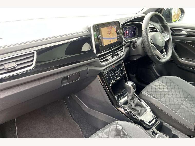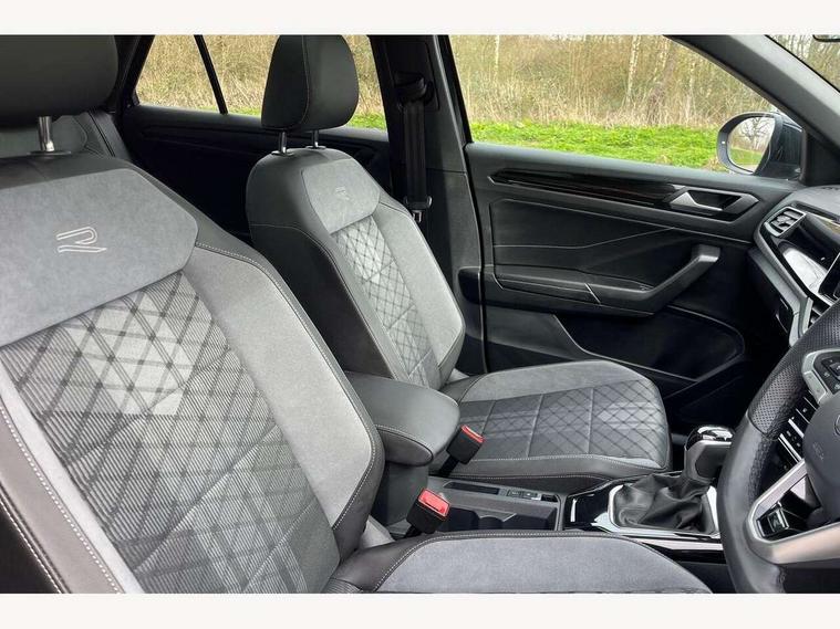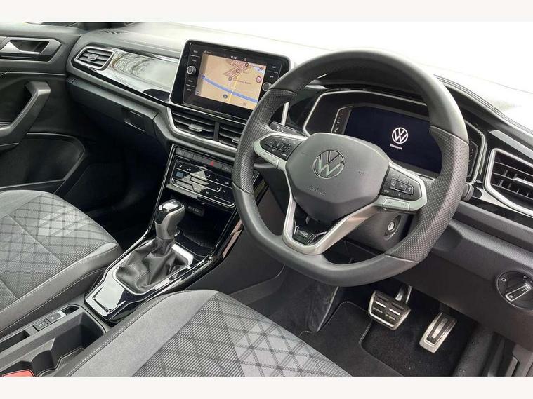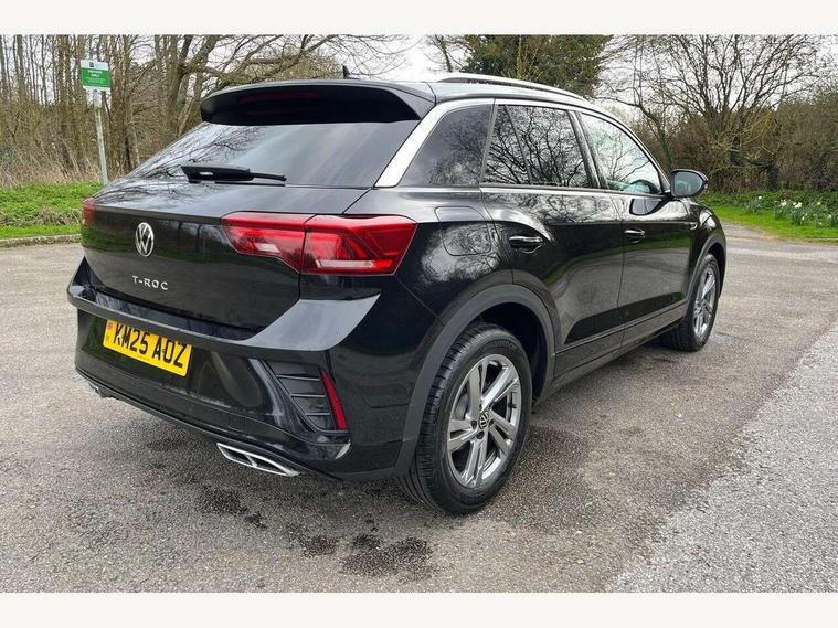10.25" Digital cockpit pro, Advanced driver attention and drowsiness monitor, Emergency call service, Lane keeping system Lane Assist, Mobile phone interface, Modified key software - reduce switch off time for key status change to Long no motion, Online services, Park assist including front and rear parking sensors, Service interval indicator, Tailgate/trunk lid release from outside, Think blue trainer driver tips and journey analysis, Warning sound and light for front seatbelts unfastened, Wireless app connect, Battery regeneration during braking, Start/stop function with battery regeneration, DAB Digital radio, Diversity antenna for FM reception, Front and rear 6 speakers, Music playback - MP3, WMA and AAC files, Premium USB cable in choice of either Apple or Android smartphone compatibility, SD card slot, Simultaneous pairing of 2 compatible mobile devices, Title and cover art display, We Connect and We Connect Plus functionality, Auto dimming interior rear view mirror, Automatic hazard lights activation under emergency braking, Automatic headlight control with LED separate daytime running lights with coming/leaving home function, Body coloured exterior mirror housings and door handles, Electrically adjustable and heated door mirrors, Extended roof spoiler, Exterior mirrors aspherical on driver side, convex on front passenger side, External USB type C socket and charging sockets, Front windscreen wiper with intermittent wipe and 4 position delay, Heated rear window, LED 3rd brake light, LED rear combination lamps, LED rear number plate lights, Power windows with comfort operation and circuit breaker, Privacy glass for rear side windows and rear window, R-Line design body coloured bumpers, Rain sensor, Rear exhaust tailpipe, Rear fog light on one side and reversing lights on both sides, Rear side wing doors, Rear wash/wipe with intermittent wipe setting, Remote electrically foldable door mirrors, puddle lights and reverse activated passenger's door mirror, 12V power socket in centre console, 3 rear head restraints, 3 seat bench in 2nd row, 4 load lashing points in luggage compartment, Air care climatronic air conditoning system with active combination filter and 2-zone temperature control, Black roof lining, Chrome plated decorative trims, Chrome plated radiator grille inserts, air vent surrounds and light switch surrounds, Door and side trim panel with leatherette insert, Front + rear carpet mats, Front centre armrest, Front cupholders x 2, Front footwell illumination, Front reading light, Front scuff plates with R Line logo, Front seat back storage pockets, Glove compartment door with light, Instrument lighting, white adjustable panel illumination, Interior ambient lighting and surround lighting, Interior light delay, Isofix child seat preparation, Leather gearshift handle, Load-through provision with cup holder when folded down ('Unsplit rear seat bench, split folding backrest, with centre armrest), Luggage compartment lighting, Single front passenger seat, Stainless steel pedals, Storage compartment in left and right luggage area, Storage compartment in rear doors, Storage compartments in driver and front passenger doors, Sunvisors with illuminated vanity mirrors, Variable boot floor, height adjustable and removable, Driver assistance pack without proactive passenger protection - T-Roc, 3 point height adj front seatbelts + pretensioners, 3 point seatbelts in outer rear with ECE label, ABS, Child locks on rear doors, City emergency braking and pedestrian monitoring, Driver and front passenger airbag with front passenger airbag deactivation, Driver and front passenger safety-optimised head restraints, Drivers seatbelt reminder, Electronic parking brake, Electronic Stability Control (ESC) inc EDL (Electronic Differential Lock) and ASR (Traction Control), Front and rear passengers curtain airbag system including front side airbags, Hill start assist, Predictive pedestrian protection, Rear disc brakes, Two tone horn, Tyre pressure loss indicator, Volkswagen roadside assistance, Piano black decorative inserts in dashboard and front door trim panels, Trims for alloy wheels,