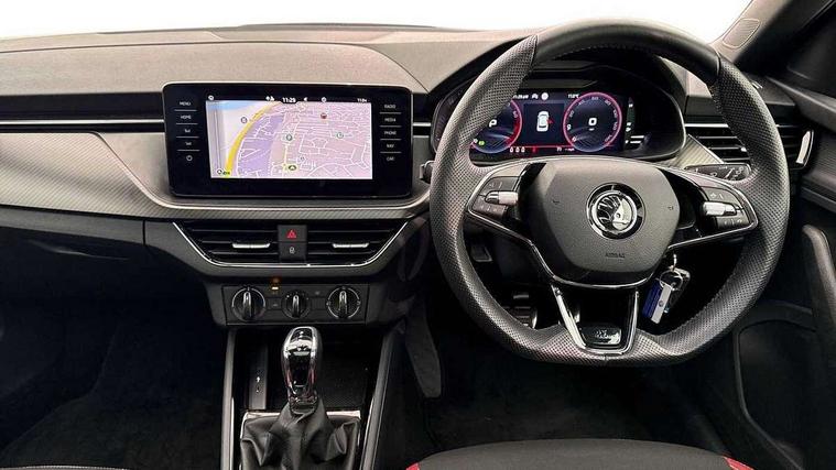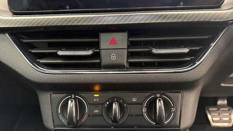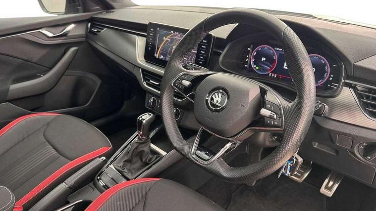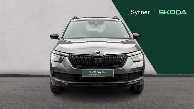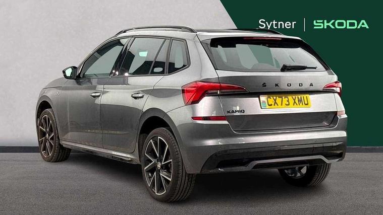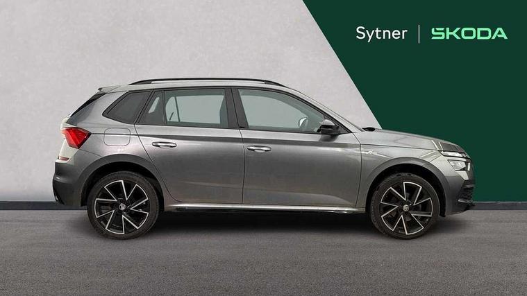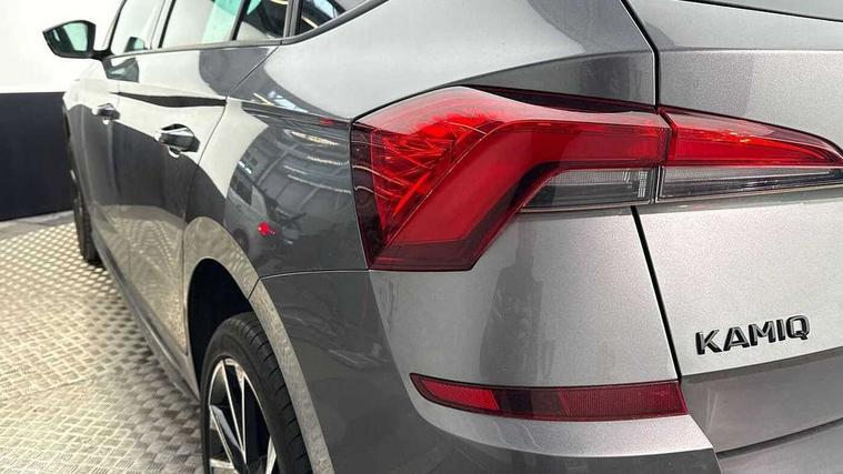 Amundsen satellite navigation with 9.2" glass colour touchscreen display, web radio, voice control and traffic sign recognition, Bluetooth system, E-call, Front assist system, Gesture control, PAS, Service indicator, Speed limiter, Wireless Smartlink for Apple CarPlay (wired for Android Auto), 8 Speakers, Auxiliary input socket, DAB Digital radio, Black door mirrors, Black radiator grille, Black rear diffuser, Body colour bumpers, Body colour door handles, Body colour roof spoiler, Boot lettering in black, Chrome grille surround, Dimming rear view mirror with black surround, Electrically adjustable and heated door mirrors, Fixed panoramic sunroof with black roof rails, Front and rear electric windows, Front sport bumper, Full LED headlights with adaptive front light system, cornering function, fog lights and dynamic indicators, Headlight range control, Heated rear window, High functionality rear led lights with dynamic indicators, KAMIQ Door sills, LED daytime running lights, LED third brake light, Light sensors, Monte carlo plaque, Privacy glass, Rain sensor, Rear fog lights, Rear side wing doors, Rear wiper, 12V Accessory socket in centre console, 3 seat bench in 2nd row, Aluminium pedals, Black ceiling for black/beige interior, Black roof lining, Chrome inner door handles, Cloth upholstery, Front head restraints, Glove compartment with illumination, Ice scraper, Isofix child seat fittings on outer rear seats, ISOFIX on front passenger seat, Leather gear lever, Manual lumbar support for front seats, Rake/reach adjustable steering wheel, Reading lights, Single front passenger seat, Sports seats, Sun visors with illumination on front passenger, Textile floor mats, Third rear headrest, Top tether for front passenger seat, Umbrella in driver's door, 3x3 point rear seatbelts, Airbags - driver and front passenger, ESP, Front passenger airbag deactivation switch, Front side airbags with curtain airbags, Hill hold control, Manual parking brake, Manual rear child locks, One tone horn, Rear disc brakes, Seatbelt reminder for driver an co-driver, Traction control, Tyre pressure monitor, Anti-theft alarm system with interior monitoring, backup horn, towing protection and remote central locking with SAFE system, Anti-theft wheel bolts, Electronic engine immobilizer, Chrome air vent surrounds, 18" Vega alloy wheels in black,