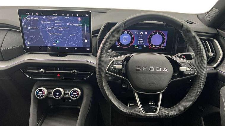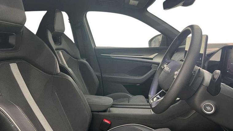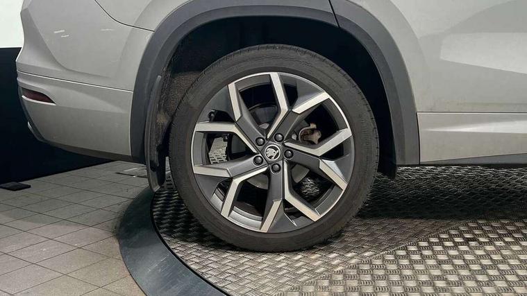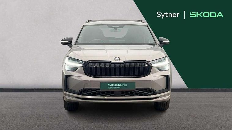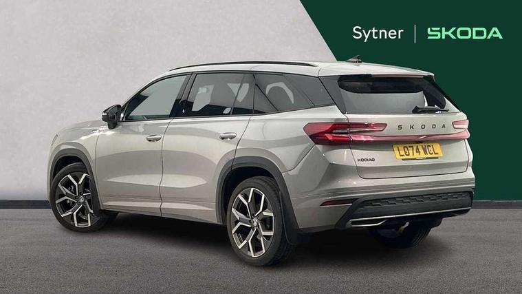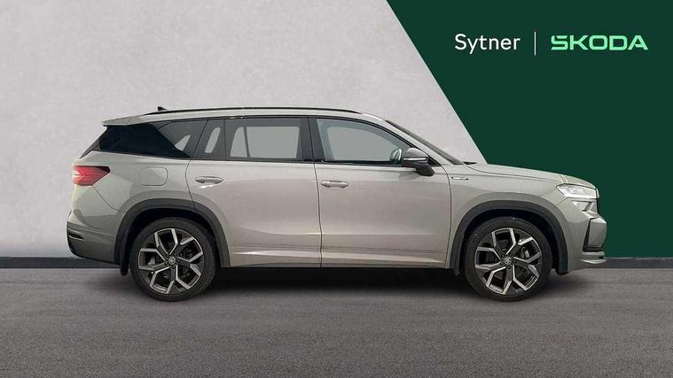 13" satellite navigation touchscreen display, Blind spot detection with door exit warning, Bluetooth system, ChatGPT functionality, Driver alert - Fatigue and drowsiness monitor, Dry display cleaner, Emergency call, Front and rear parking sensors, Front cross traffic assist, Lane assist, PAS, Rear traffic assist, Tailgate unlocking from outside, Traffic sign recognition, USB C Port x 2 in front centre console, Virtual Cockpit - 10.25" digital display, Voice control system, Wireless charging for two smartphones (15W) with cooling function, Wireless SmartLink for Apple CarPlay and Android Auto, Stop/start function, 2x USB-C in the rear, DAB Digital radio, Aero front windscreen wipers with intermittent function, Auto dimming rear view mirror, AWL (all weather lighting) and all weather light with cornering function, Black diffuser and decorative tailpipe with a unique dark chrome finish, Black roof rails, Black sports styling including front grille and window surrounds, Black wheel arch surrounds, Body colour door handles, Cornering light and poor weather light, Electric folding /adjustable/separted heated/folding door mirrors, auto dimming with boarding sports and memory function, Electric front and rear windows, Exterior black decorative trims, Front and rear sports bumpers including lower rear chrome strip, Gloss black door mirrors, Gloss black window frame and D pillar, Heat insulating glass in windshield, Heated rear window, Ice scraper in fuel tank cap, LED daytime running lights, LED third brake light in rear spoiler, Light assistant with automatic headlight control and coming home feature, Logo projection in door mirrors, Privacy glass, Rear roof spoiler, Rear side wing doors, Rear window wiper, Red decorative strip between rear LED lights, Safety reflectors on front and rear doors, Sportline badge on front fenders, Tailgate lettering in Black, Unique dark chrome design logo on alloy wheels, Window control switches with black trim, Windscreen wipers with rain sensor, Without engine designation, 1.5l bottle holder points in all door, 1x centre rear reading light, 2 seat bench in 3rd row, 3 configurable smart dials with 32mm coloured display, 3 seat bench in 2nd row, 4 foldable roof handles with rear coat hooks, Aluminium pedals, Ambient interior lighting - Dashboard, front-door stowage compartments, front and rear door panels and footwell lighting, Automatic gear selector on steering column, Chrome interior door handles, Driver/front passenger reading lights, Fabric headlining, Fixed bench 40:60:40 split folding backrests, Front and rear floor mats, Front centre armrest with jumbo box storage compartment, cup holder and 12V socket, Front sport seats, Height adjustable front headrests, Interior black decorative trims, Isofix child seat fittings in outer middle row rear seats and front passenger with top tether, Manually adjustable steering column, Pollen filter, Rear centre armrest with cupholders, Rear seat boot backrest release, Single front passenger seat, Skoda lettering on steering wheel, Storage pocket including mobile phone pockets on the backs of the front seats, Sunvisors with illuminated vanity mirrors, Three rear height adjustable headrests, Ticket holder on A Pillar, Tri zone climate control, Umbrella in door panel x1 made from sustainable materials, Upper and lower glovebox with card holder and coin compartment, USB C port by rear view mirror for charging only (15W), Acoustic package - Kodiaq, Performance package - Kodiaq, Sportline design selection pack - Kodiaq, Auto door release and activation of warning lights in the event of an accident, Driver and front passenger airbag with knee airbag and front passenger airbag deactivation, Electric child locks, Electronic parking brake, ESC (incl. ABS+EMD+MSR+ASR+EDL+HBA+DSR+RBS+ESBS+MCB+TSA+XDS), Front assist with braking reaction to vehicles, pedestrians and cyclists, Front disc brakes, Fuel cut off safety device, Height adjustable front 3 point seatbelts + pretensioners, Hill hold assist, Junction assist with automatic emergency braking, Rear disc brakes, Safety vest holder in door, Seat belt reminder for all seats, Three point rear seat belts, Two tone horn, Tyre pressure monitor, Alarm with interior monitoring and tilt sensor with safe function, Anti-theft wheel bolts, Immobiliser, Remote central locking with 2 keys, 20" Rila anthacite polished alloy wheel with black matte aero covers,