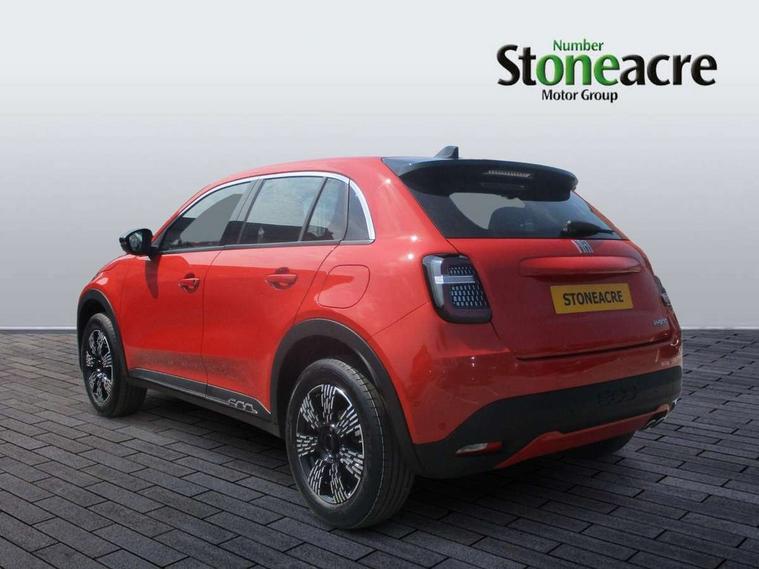 7" TFT digital cluster, Bluetooth connectivity, BSRF connectivity box, Connected services, Cruise control, Drowsy driver detection, Emergency E-call assist, Engine emission level default, GSR II step 1, Intelligent speed assist, Lane keeping assistant (LKA), Odometer, Power assist steering, Rain and dusk sensors, Rear parking sensors, Traffic sign recognition, Wireless apple car play/android Auto, Without drive mode selector, L2-AGM 12V battery, 1st Row USB type-A and USB type-C, 4 speaker audio system, Radio, Uconnect infotainment 10.25" touchscreen with DAB, All power windows express Up/Down, Auto dimming frameless rear view mirror, Automatic headlights, Body coloured door handles, Chrome day light openings, Electric adjustable door mirrors, Exterior chrome accents, Front and rear Chromed 600 logo, Gloss black finish B pillar, Gloss black shark fin antenna, Glossy black door mirrors, Heated windscreen wiper blade area, LED 3rd brake light, LED daytime running lights, LED Fog lamps with cornering function, LED front signature lighting, LED front turn indicators and position lights, LED rear lights, LED rear signature lighting, LED reflector headlamps, Matt black side skirts with 600 chromed logo, Rear bumper embossed 600 logo, Rear roof spoiler, Rear side wing doors, Rear wiper, 2 Spoke synthetic leather steering wheel with audio control, 3 rear headrests, 3 seat bench in 2nd row, 4 way manually adjustable passenger seat, 6 way manually adjustable drivers seat, Auxilliary 12V power socket, Body colour dashboard fascia, Chrome interior door handles, Dark metachrome dashboard ring, English handbook, Front centre armrest, Front headrests, Front passenger grab handle, Front seatback pockets, ISOFIX attachment on front passenger and rear passenger seats, Manual climate control, Metachrome central compartment bezel, Monogram fabric upholstery, Paddle shifts, Partial body cover for shipment, Predisposal for accessory upgrade to default tunnel pad cover (dedicated prnd bezel), Rear seat 40/60 split, Single front passenger seat, Smart 15L storage central tunnel with tunnel pad cover, Sunvisor label ciao Fiat, Sunvisors with vanity mirrors, 3x3 point rear seatbelts, 6 airbags, ABS, Autonomous Emergency Brake (AEB) & Vulnerable Road User (VRU) Protection, Child locks on rear doors, Electronic parking brake with auto hold, ESC (Electronic Stability Control), Front passenger airbag deactivation, Seatbelt reminder and pretensioners for all seats, Anti-theft volumetric alarm, Anti-theft wheel bolts, Keyless Go, 17" Diamond cut alloy wheels, Fix and go puncture repair kit,