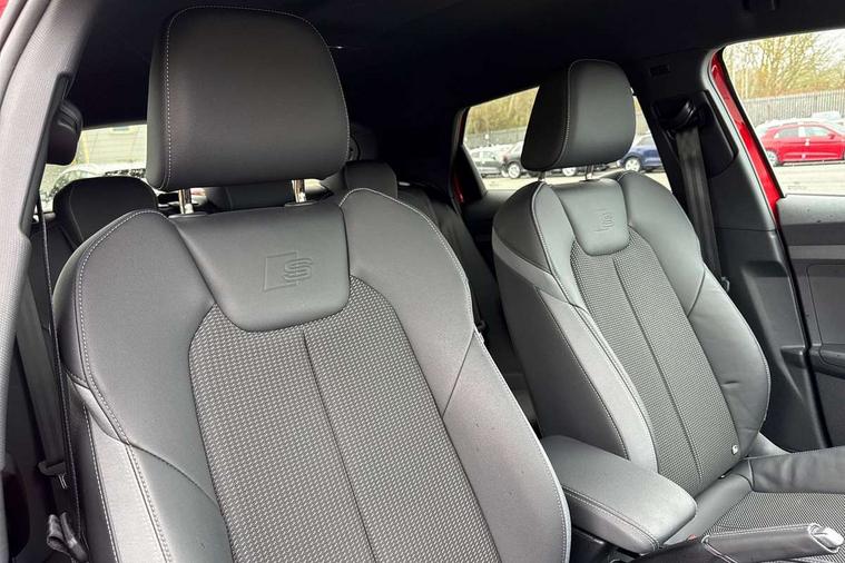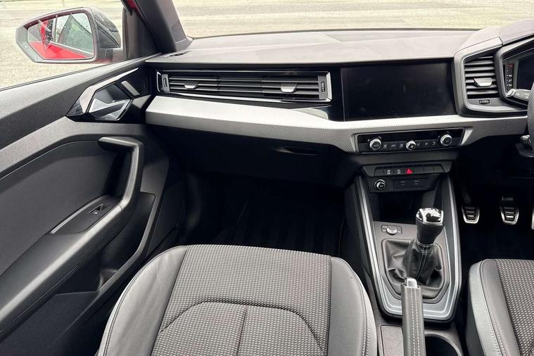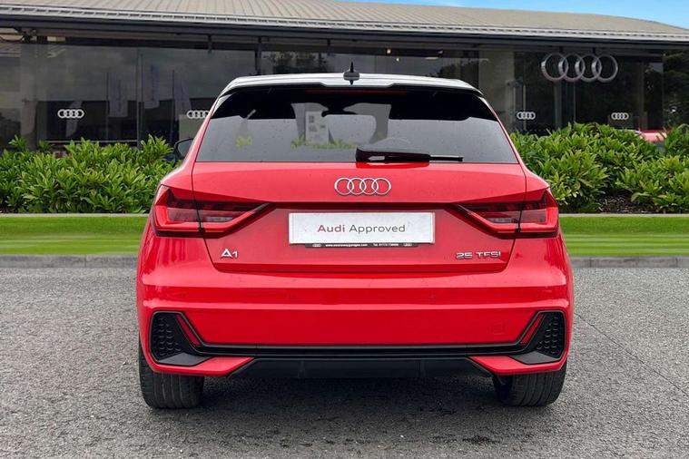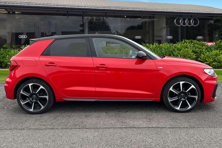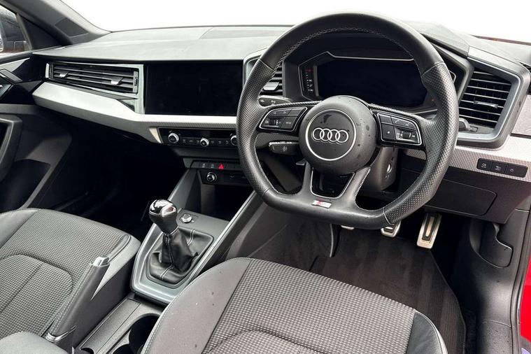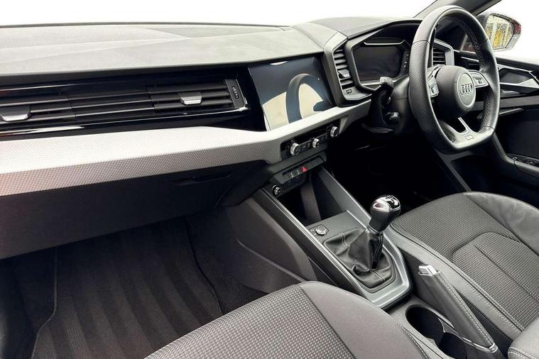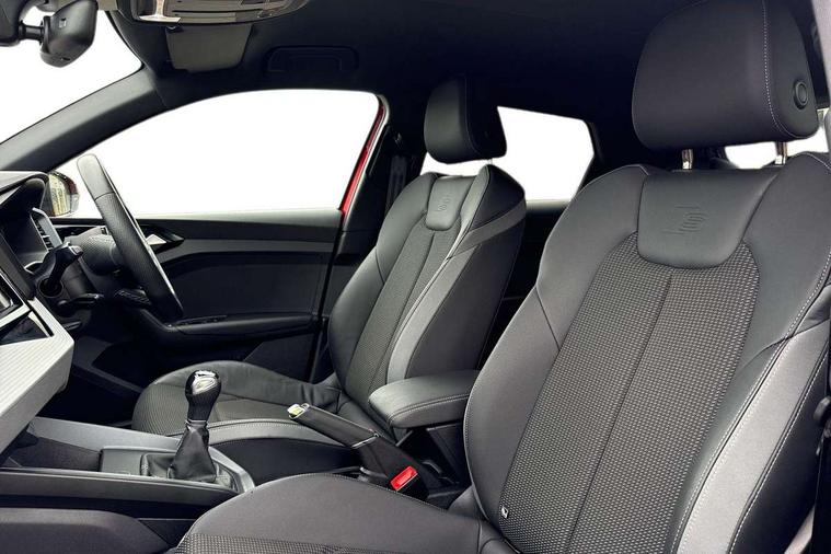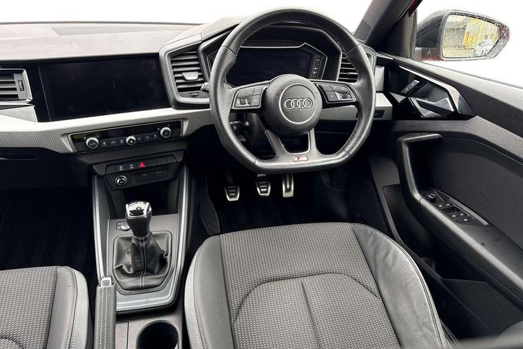 10.25" Digital instrument cluster display classis style instrument dials + speed, odometer, time, outside temperature, telephone menu + fuel level warning, Audi smartphone interface with connect compatible smartphone via USB directly MMI display + Nav, music, third party apps controlled via MMI controller, Automatic start/stop system, Bluetooth interface, Cruise control, Driver's information system, Electromechanical power steering, Emergency e-call, Emergency services call system, Lane departure warning system, Service interval indicator, Speed limiter, Voice control system, Washer fluid level indicator, Sports suspension, 1 x SDXC card reader, 2 x USB type C connection points, DAB Digital radio, MMI radio plus with 8.8" colour MMI display screen and MMI touch, Auto dimming rear view mirror, Black door mirrors, Black side skirts, Body coloured bumpers, Door sill trims with aluminium inlays and logo, Electric front and rear windows, Electrically adjustable, heated, folding door mirrors with integrated LED side indicator, Front side air inlets in grained matt black and C frame in anthracite black, Front wing badges, Heat insulating glass windscreen and side windows, Heated rear windscreen, High level LED brake light, LED headlights with LED rear lights + dynamic rear indicators + headlight adjustment and high beam, turning light + LED daytime running lights, Radiator protective grille frame in matt aluminium silver, Rain and light sensors, Rear diffuser strip in matt titanium black, Rear fog lights, Rear side wing doors, Rear wing door, Rear wiper, Side front spoiler lips in grained matt black, 12V socket in centre console with two cup holders, 3 rear seats with headrests, 3 seat bench in 2nd row, 3 spoke flat bottomed multi-function plus leather steering wheel with S badging, grips in preforated leather and contrast stitching, 40:60 Split folding rear seat or folded fully, Black cloth headlining, Driver and passenger seat with manual height adjust with forward and backwards adjustment, Front and rear black floor mats with contrast stitching in fine silver, Front head restraints, Front passenger seat, Height and reach adjustable steering wheel, ISOFIX child seat mounting for front passenger and outer rear seats including top tether attachment point of outer rear seats, Leather gear knob with aluminium trim, Luggage compartment light with front and rear reading lights, Manually adjustable lumbar support in front seats, Stainless steel pedals, Black styling pack - A1 Sportback Black Edition, LED interior lighting pack - A1, Luggage compartment pack - A1, 3x3 point rear seatbelts, Audi pre-sense front with pedestrain and cyclist recognition, Brake assist function, Driver and front passenger airbag with front side and head airbags, Electronic Stability Control including ABS, EBD, ASR and EDL, Front passenger airbag deactivation switch, Hill hold assist, Manual rear child locks, Seatbelt height adjustment for front seats, Seatbelt monitoring, Tyre pressure warning light, Warning triangle and first aid kit, Anti theft alarm, Anti theft wheel bolts and loose wheel warning, Immobiliser, Remote central locking with 2 foldaway keys, Aluminium trim for control switches, air vents and digital instrument cluster, Silver grey inlays polygon structure in diamond paint finish, Structured grey accent areas including air vents, door handle recesses and centre console in quartz paint finish, 18" 7 spoke rotor design alloy wheels in gloss anthracite black, diamond cut finish,