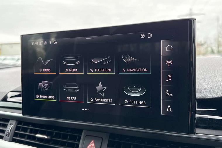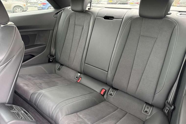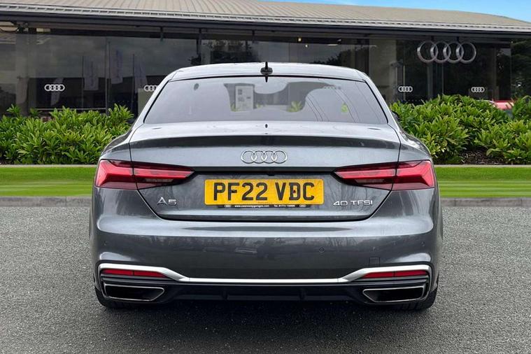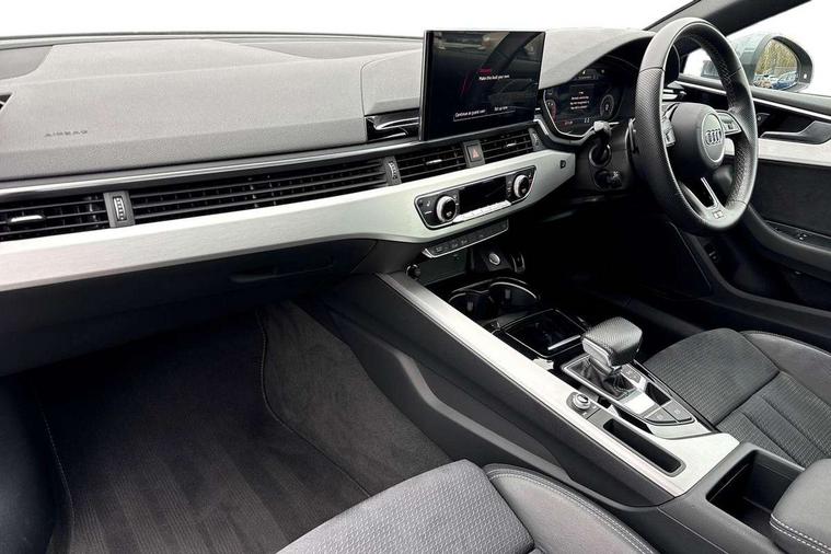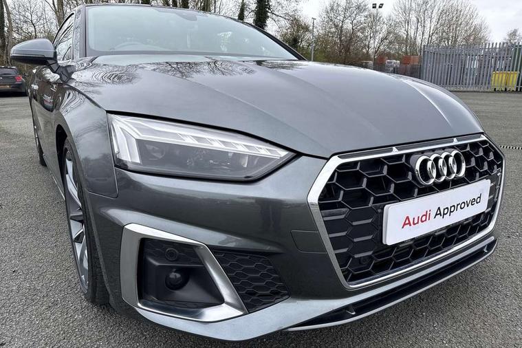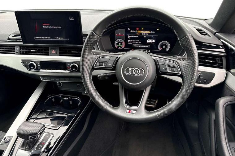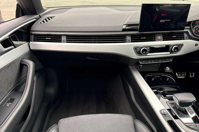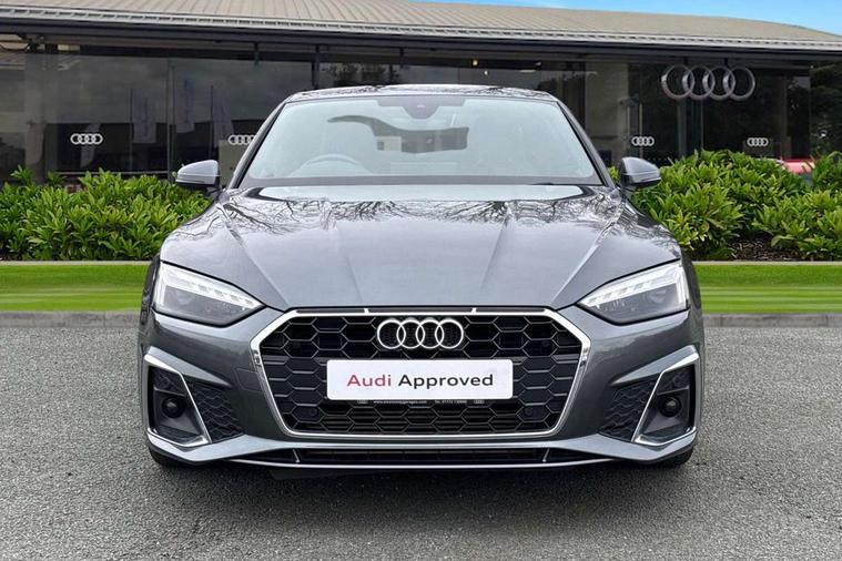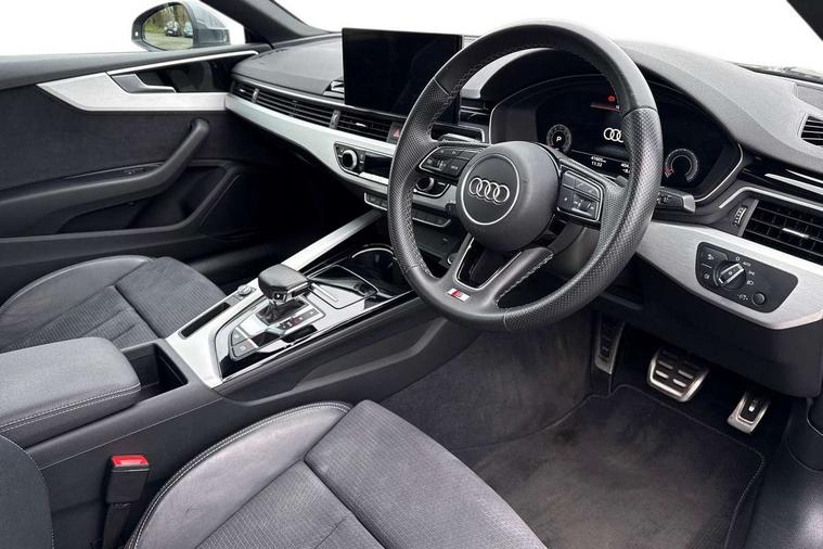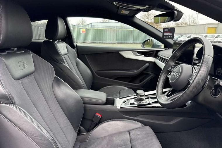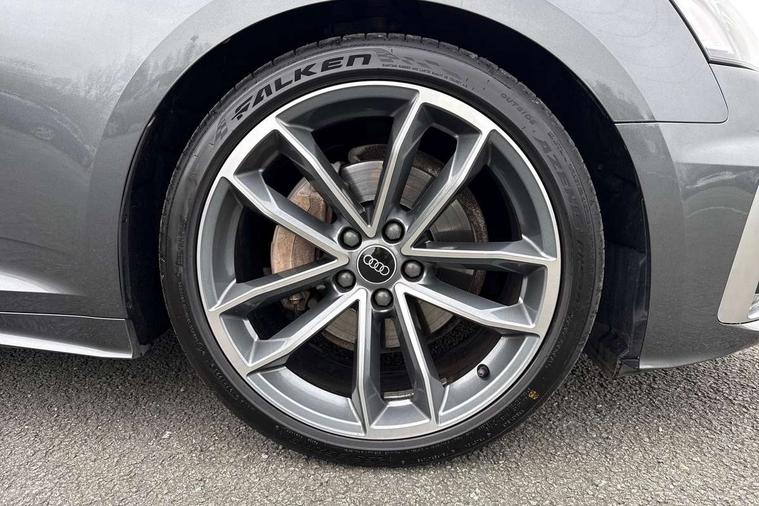 Matt brushed aluminium inlays, LED interior light pack - A5/RS5, Tyre repair kit, Anti theft alarm system, Anti theft wheel bolts, Immobiliser, Keyless Go, Remote central locking, 8 passive loudspeakers, CD player, DAB digital radio reception, Two additional USB ports for rear passenger in rear centre console, Two SDXC card slots, 2 x 3-point rear seat belts, 6 airbags - Driver, front passenger, curtain and side airbags, Electromechanical parking brake, Electronic Stabilisation Control (ESC) including ABS, ASR and EDL, Front passenger airbag deactivation, Height adjustable front seatbelts, Hill hold assist, Multi collision brake assist, Pop-up bonnet for pedestrian protection, Pre sense city, Seatbelt monitoring, Tyre pressure warning, Variable restraint system, Warning triangle and first aid kit, Audi matrix LED headlights with LED rear lights + dynamic front and rear indicators, Auto dimming door mirrors, Auto dimming rear view mirror, Body colour bumpers, Body colour door handles, Body colour front spoiler lip, Body colour side sill trim, Body coloured door mirrors, Electric adjustable heated door mirrors, Electric folding door mirrors, Electric front windows, Front fog lights, Honeycomb structure radiator grille in grained matt black, Kerb-view function for passenger side, LED daytime running lights, LED side indicator lights integrated into door mirrors, LED third brake light, Matt aluminium silver tailpipe trim, Privacy glass, Rain and light sensors, Rear boot, Rear side wing doors, S line badges on front wings, S line front and rear bumpers with side skirts, S Line rear diffuser in matt titanium black with trim strip in matt aluminium silver, Side air inlets in grained matt black with matt aluminium silver inlay, Variable front intermittent wipers, Windscreen with acoustic glazing, 2 seat bench in 2nd row, 4 way electric lumbar support for driver and front passenger, 40/20/40 split folding 2 seater rear seat bench with rear centre armrest, Adjustable steering column, Black cloth headlining, Black perforated leather gearknob, Contrast stitching on seats, steering wheel and gear lever gaiter, Deluxe 3 zone electronic climate control, Front centre armrest, Front head restraints, Front/rear floor mats, Heated front seats, Illuminated door sill trim with S logo, ISOFIX child seat mounting and top tether, Luggage compartment mat, Manual seat adjustment, Rear headrests, Single front passenger seat, Stainless steel pedals, Sunvisors with vanity mirrors, Tool kit, Audi connect safety and service (e-call), Audi connect with Amazon Alexa Integration, Audi drive select (Auto, Comfort, Dynamic, Efficiency and Individual), Audi parking system plus with front and rear sensors, Audi smartphone interface, Audi virtual cockpit - 12.3" full colour digital instrument cluster, vehicle/engine speed, Radio/media information+Driver assistance systems, Automatic start-stop system with coasting functionality and efficiency programme, Bluetooth interface, Electric boot lid release, Electro-mechanical power steering, Email, calendar and text messages displayed via MMI, MMI nav+ with MMI touch - 10.1" high resolution MMI display, touch sensitive, 3D map, route/country info, dynamic route guide, personal route assist, Rear view camera, Service interval indicator, Voice control system, Sports suspension lowered by 23mm,