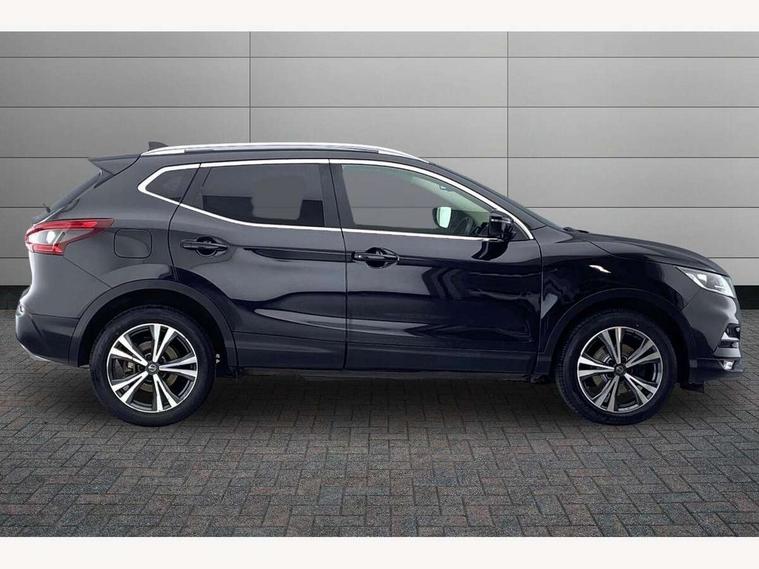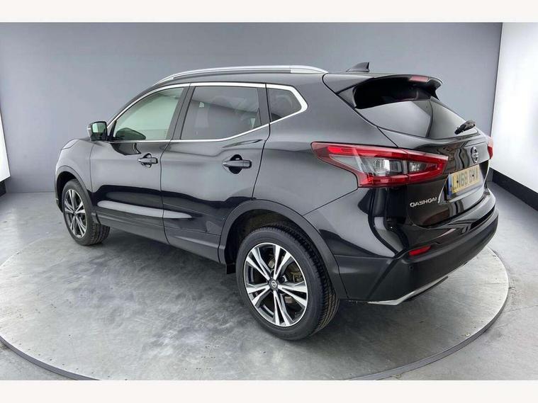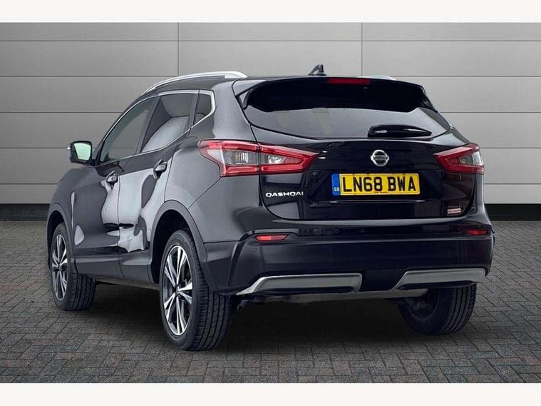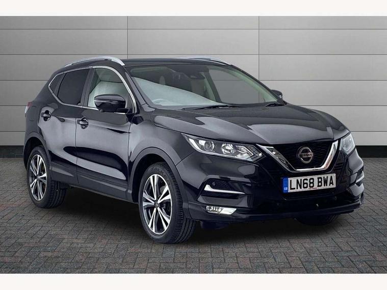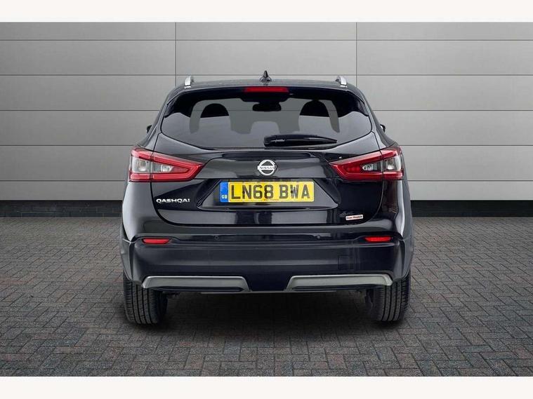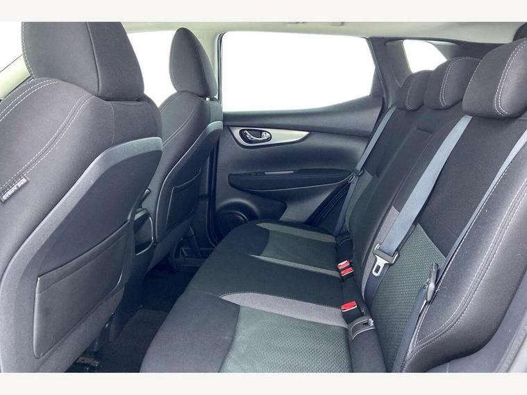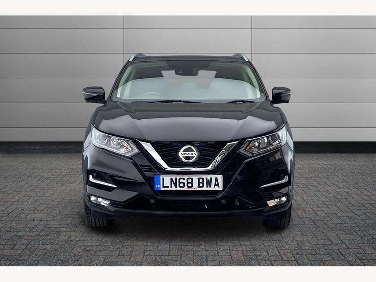 5" TFT driver information centre, Around View Monitor, Bluetooth phone integration system, Cruise control, Electric speed sensitive power steering, Front and rear parking sensors, Lane departure warning system, Nissan connect sat nav system, Outside temperature display, Push button starter, Rear view camera, Service interval indicator, Speed limiter, Traffic sign recognition, Trip computer, 'Shark fin' mobile antenna, 6 speakers, DAB Digital radio, Radio/CD, Smartphone apps, Steering wheel mounted audio controls, USB/aux input socket, Automatic headlamp activation, Body colour bumpers, Body colour door handles, Body colour door mirrors, Chrome window surround, Electric folding and heated door mirrors, Front fog lights, High beam assist, Interior mirror with auto anti dazzle, LED indicators in door mirrors, Matt silver roof rails, One touch electric front/rear windows, Privacy glass, Rain sensor windscreen wipers, Rear roof spoiler, Rear wiper, 2 X front 12v power sockets, 60/40 split folding rear seat, Ambient interior lighting, Centre console with armrest, Chrome interior door handles, Cloth upholstery, Configurable luggage board system, Driver + front passenger lumbar support, Dual zone climate control, Front and rear door pockets with bottle holders, Front headrests, Front seat belt pre-tensioners with load limiters, Height adjustable driver's seat, Height adjustable passenger seat, Illuminated electric window switch, Isofix child seat preparation, Leather gearknob, Leather interior door handles, Leather knee rest, Leather steering wheel, Luggage compartment lighting, Parcel shelf, Pollen filter, Rake/reach adjustable steering wheel, Rear armrest with 2 cupholders, Rear headrests, ABS, brake assist and EBD, Child locks on rear doors, Curtain airbags, Driver/front passenger airbag, Electronic parking brake, ESP + traction control, Forward emergency braking, Front passenger airbag deactivation, Height adjustable front seatbelts, Hill start assist, Seatbelt warning, Side airbags, Three 3 point rear seatbelts, Tyre pressure monitoring system, Alarm, Immobiliser, Intelligent Key, Remote central locking, Piano black interior trim, 18" Bi-colour alloy wheels, Tyre puncture repair kit,
