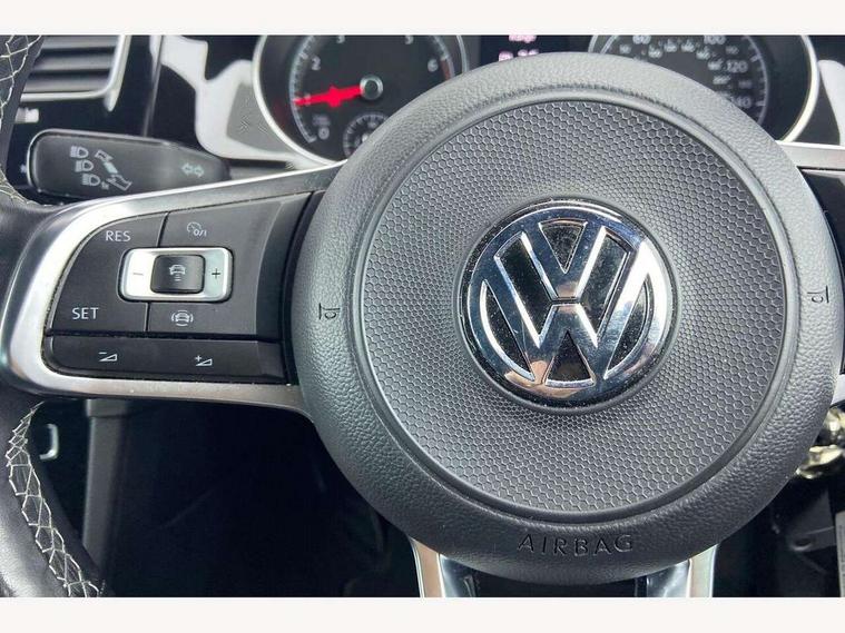App-Connect, 'Lights On' Reminder warning buzzer, 8" colour touch screen, ACC - Adaptive cruise control with front assist, forward collision warning, distance monitoring, city emergency brake and speed limiter, Bluetooth hands free telephone connection, Brake pad wear indicator warning light, Driver alert system, Driver profile selection, Exterior temperature gauge, Front assistant collision mitigation, Instrument cluster in white, Multifunction computer, PAS - speed related, Power assisted speed sensitive electro-mechanical steering, Rev counter, Stop/start system, Trip and service interval display, Ultrasonic front and rear optical and audible parking sensors, Warning buzzer and light for front seatbelts unfastened, Battery regeneration during braking, Lowered sports suspension, XDS electronic differential lock, CD/MP3/WMA, USB and SD card reader, aux-in, Composition media system, DAB Digital radio receiver, Automatic coming/leaving home lighting function and rain sensor, Automatic dimming rear view mirror/rain sensor, Automatic headlights, Black front air intake and radiator grille with chrome insert, Black sports rear diffuser, Body colour bumpers, Body colour door handles, Body colour door mirrors with integrated indicators, Body colour rear roof spoiler, Chrome grille surround, Chrome trapezoidal exhaust, Electric front windows, Electric rear windows, Electrically adjustable and heated door mirrors, Halogen headlights range adjustable via infotainment system with LED daytime running lights, Heated rear windscreen, High level 3rd brake light incorporating LED Technology, LED rear lights, Rain sensor, Rear number plate lights incorporating LED technology, Rear tinted glass 65% light absorbing from B pillar backwards, Rear window aerial, Rear window wash/wipe with intermittent wipe, Reflectors in all doors, Stainless steel door sill protection, Windscreen wipers/ intermittent wipe + 4 position delay, 12V socket in luggage compartment, 3 rear headrests, 60/40 split folding rear seat backrest, Bag hook in luggage compartment, Black headlining, Boot lashing points, Cooled glovebox, Courtesy light delay, Cover for storage compartment in centre, Dust/pollen filter, Front + rear carpet mats, Front centre armrest with storage compartment and two rear air vents, Front reading lights, Front seat back storage pockets, Grab handles front x 2, rear x 2 with integrated coat hooks, Height/reach adjust steering wheel, Illuminated vanity mirrors, Instrument lighting white adjustable panel illumination, Isofix preparation for 2 rear child seats, Leather gear knob and handbrake grip, Load through provision with rear centre armrest and cupholders x2, Luggage compartment cover, Luggage compartment light, Multifunction leather steering wheel with grey stitching leather trimmed gear knob including paddle shift, Overhead storage box, Stainless steel pedals, Storage box in luggage compartment, Storage compartments in doors, Storage compartments in front doors, Storage compartments in rear doors, Sun visors, Three spoke multi-function leather trimmed steering wheel and gearknob, Three spoke steering wheel, Variable boot floor, height adjustable and removable, Ambient lighting pack - Golf, Mirror pack - Golf, 3 rear three point seatbelts, Anti-lock braking system (ABS), Automatic post collision braking system, Child locks on rear doors, Driver/Passenger optimised head restraints, Drivers and Front Passengers airbags with front passengers airbag deactivation switch, Drivers knee airbag, Electronic stability control (ESC) including Electronic differential lock (EDL) and ASR (Traction control) with deactivation via infotainment system, Front and rear curtain airbags, Front seat side impact airbags, HBA (Hydraulic Brake Assist), Pre crash preventive occupant protection, Three point height adjustable front seatbelts with tensioners, Tyre pressure loss indicator, Alarm with interior protection, Electronic engine immobiliser, Remote central locking with 2 remote folding keys, Dark Diamond decorative inserts in dash and door panels, Piano black centre console with aluminium inlay, Steel space saver spare wheel,