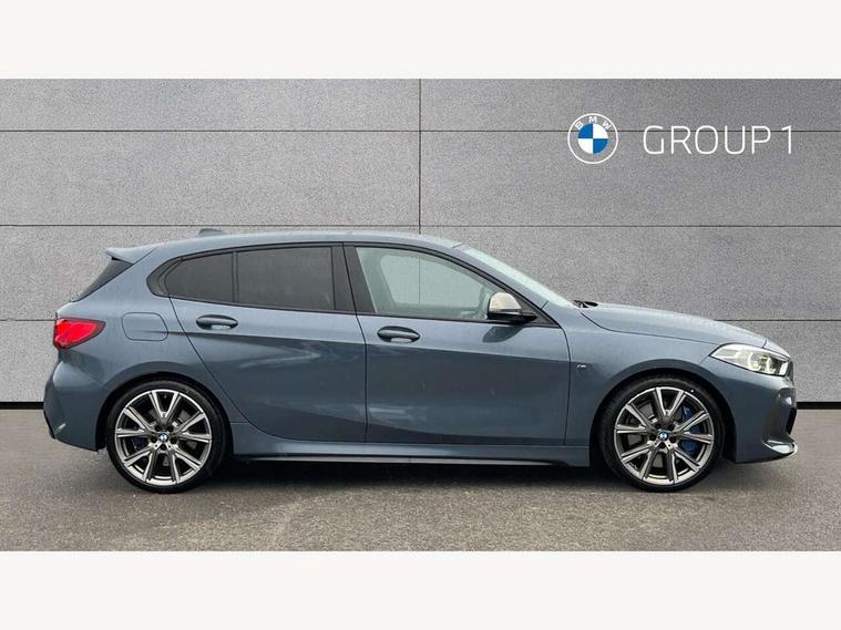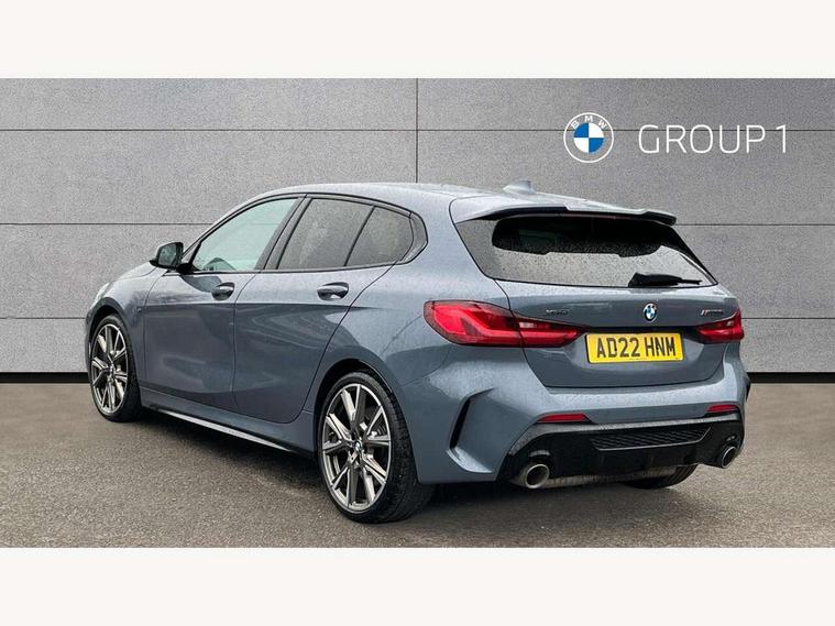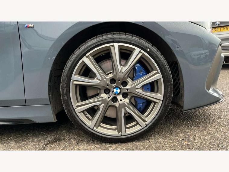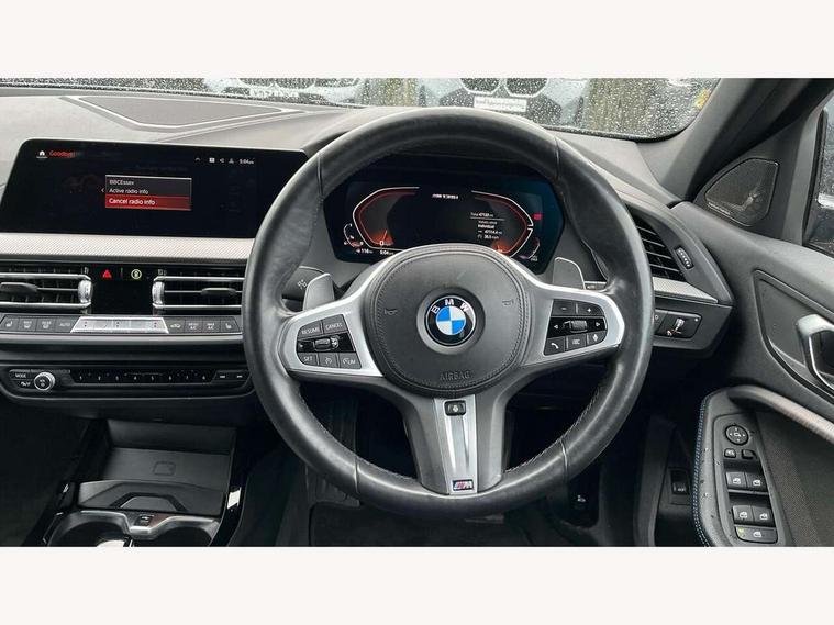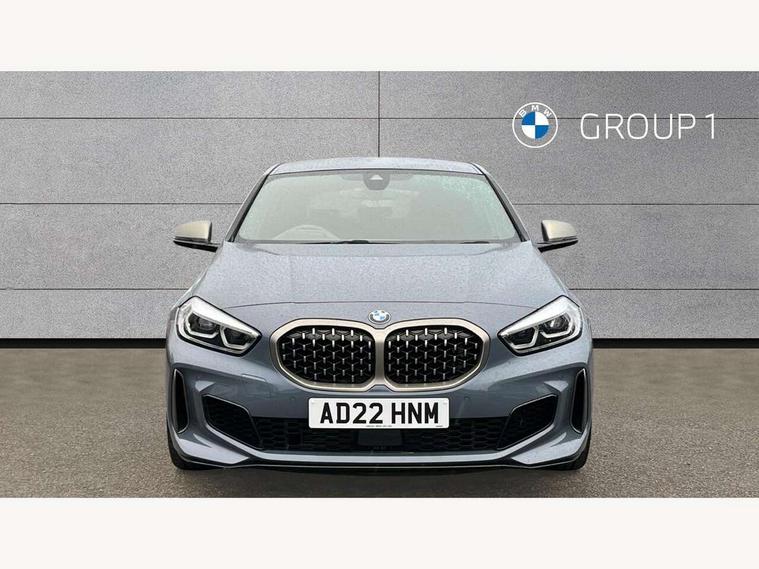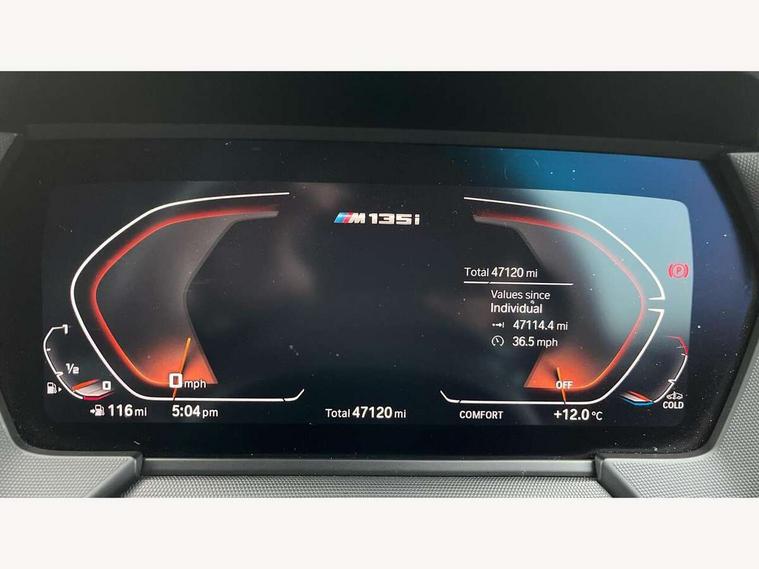 Active guard plus, Attentiveness assist, BMW ConnectedDrive online services, BMW Teleservices, Check Control warning system for monitoring of lights and door/luggage compartment open warning, Cruise control with brake assist, Eco pro mode, Electric power steering, Electro hydraulically controlled multi-plate clutch transfers drive to rear axle and with power take-off device located on the front differential., Energy efficient operating strategy, Front axle single joint with specific axle kinematics to minimise drive influences on steering + provide increased rigidity agile driving behaviour, Gearshift time display in manual mode, Integrated owners handbook, Lane departure warning system, M Sports steering with M135i xDrive specific settings, Oil sensor for level and grade, On board computer, Optimum shift indicator, Personal Profile, Pull away assistant, Rigidly mounted rear subframe - Multi link construction with separate spring / damper configuration and excellent driving characteristics, Speed limit Info including no-overtaking indicator, Speed limiter, Sporty fast gear shifting in sport mode, Aluminium lightweight construction, Anti roll bar front and rear, Balancer shaft, Double VANOS, Drive Performance Control, Eight speed sport automatic transmission with gearshift paddle switches, Electronic differential lock, Electronic selector lever, Engine cover with M performance designation, High precision injection, Larger fuel tank capacity (50 litres), Launch control, M135i specific heavily de-throttled engine intake air guide, M135i specific high-performance cooling package, M135i specific larger turbocharger with integrated divert-air valve, Petrol Particulate Filter, Twin tube gas filled shock absorbers with degressive characteristic curve, VALVETRONIC engine management, Variable, stepless and infinitely adjustable distribution of drive torque between the front and rear axles, xDrive intelligent all wheel drive with M135i specific reinforced components, DAB Digital radio, Auto dimming rear view mirror, Automatic headlight beam throw control, Automatic windscreen wipers and automatic headlight, Body colour door handles, Body colour roof trims, Cerium grey exterior mirror caps, Direction indicator side lights in exterior mirrors, Exhaust tailpipe, Cerium Grey with bevelled finish - twin, round 100mm, left and right split, Fading support, Folding side mirrors with auto dimming/folding wing mirrors with auto dimming, Follow me home headlights, Front and rear bumper system with replaceable deformation elements, Front and rear electric windows with open and close fingertip control, anti trap facility and comfort closing, Front door sill finishers with M135i designation, Green tinted heat protection glazing, Heated, electrically adjustable exterior mirror aspheric on driver side, convex on passenger side, High gloss shadowline window frame, Recess cover mirror frames and B/C pillar embelisher trim, High level third brake light, Integrated front windscreen with washer jets, Kidney grille frame in Cerium Grey with Mesh design, LED daytime running lights, LED eyebrow turn indicators, LED front fog lights, Lightweight engineering, M logo designation side in cerium grey, M Performance exhaust system with valve control and minimised exhaust back pressure, M Performance specific setup, M Sport spoiler, Matt black air guide grilles, Matt black wheel arch trim, Model designation on electric bootlid includes xDrive designation for M135i xDrive, Nearside reverse light in rear light cluster, Preparation for high beam assistant, Rear fog lights, Rear side wing doors, Rear window wiper, Reinforced crank drive, new pistons and adapted con rods, Shark fin antenna, Trailer stabilisation logic, Visible VIN plate, Welcome lighting, 12V power socket in front centre console with blanking plug, 3 rear seat head restraints, 3 seat bench in 2nd row, 3 spoke sports leather steering wheel with black leather and stitching, pearl chrome decorative finish, specific M Badge, Ambient interior lighting, Anthracite headlining, Black boot net with lashing eyes, Cargo function on 2nd seat row, Child seat ISOFIX attachment for two outer rear seats and front passenger seat with anchorage points, Conditioned based service, Driver and front passenger seat heating, Folding rear clothes hook, Four grab handles integrated in roof lining, Front and rear door pockets with bottle holders, Front and rear side armrest integrated into door trim, Front armrest, Front integrated head restraints, Front M sports seats, Glove compartment, Luggage compartment for bag hooks on left and right, foldable luggage compartment liner and four lashing eyelets, Manual adjust steering wheel, Multi-function controls for steering wheel, Single front passenger seat, Storage compartment in centre console, Sun visors with vanity mirrors and insert tab, Two front centre console cupholders, Two zone automatic air conditioning, Velour floor mats, Additional interior lighting pack - 1 Series M135i, BMW live cockpit professional pack- 1 Series, Connected pack professional - 1 Series, Interior lights pack - 1 Series, M Sport exterior styling aerodynamics pack - 1 Series 135i, 2 tone horn, 3 point seatbelts on all seats, front pyrotechnic belt tensioners, stopper and belt force limiters, rear coded belt buckles, Airbags - Front driver/passenger, front and rear curtain head protection, front side, manual deactivation of front passenger airbag, Anti lock braking system (ABS) with brake assist, BMW emergency call, Brake drying, Braking readiness, Child proof locking system in rear door, City braking function, Comfort modes, Cornering brake control, Crash sensor activating central locking release, hazard warning lights, fuel cut off, interior lighting + activation of safety battery terminal clamp, Driver and front passenger seat belt security check, Dynamic stability control + (DSC+), Dynamic Traction Control - DTC, Electrically operated hand brake including automatic ho