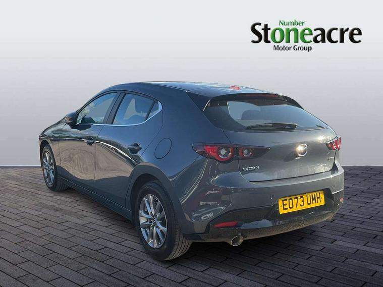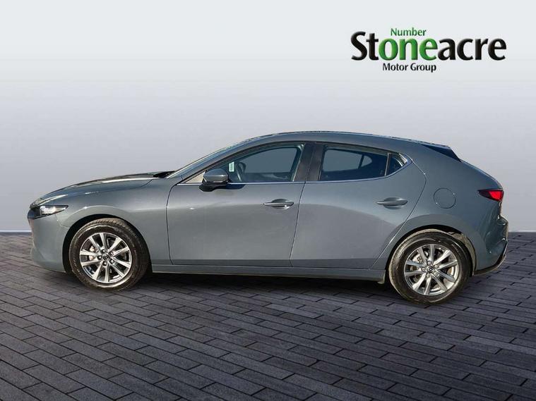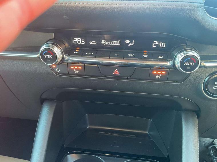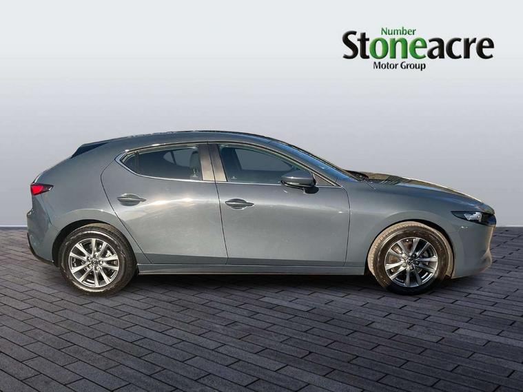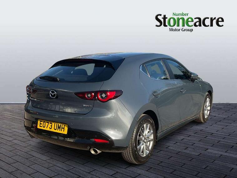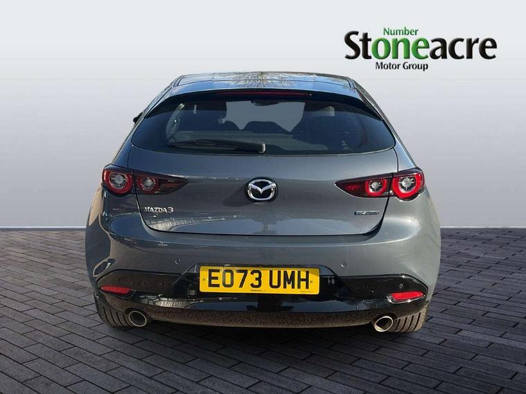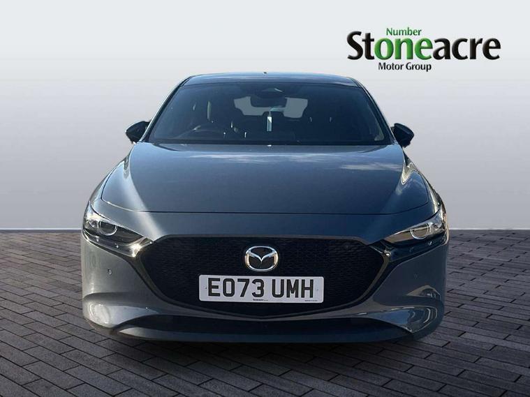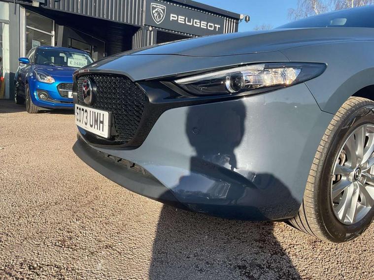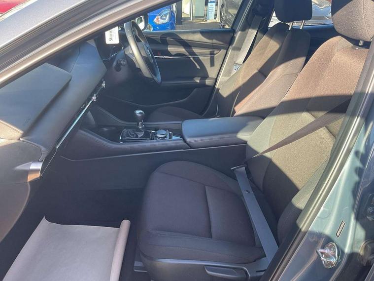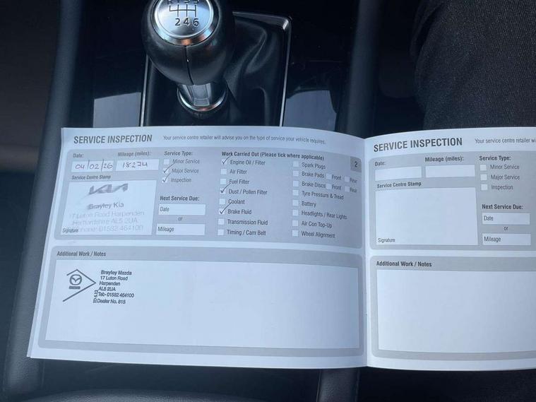 10.25" display with Mazda Connect infotainment, 7" colour TFT display, Audio transfer from bluetooth devices, Blind spot monitoring with rear cross traffic alert, Colour active driving display inc Windscreen projected, Traffic Sign Recognition, turn-by- turn navigation and Mazda Radar Cruise Control information, Digital instrument cluster, Driver attention alert system, E-call with GPS, Emergency stop signalling system, Engine start/stop button, Front and rear parking sensor with audible and visual warning, Head up Display, Integrated bluetooth with steering wheel mounted controls, Intelligent speed assist, Lane keep assist system (LAS) with Lane departure warning system (LDWS), Mazda connected services, Mazda Navigation System with european mapping, Mazda Radar Cruise Control, Mobile App interface, Multimedia Commander, PAS, Reversing camera, Service indicator, Tailgate, Traffic sign recognition (TSR), Trip computer, Wireless Apple CarPlay/Android Auto, Wireless charging, i-stop, 2 USB-C ports in the front, Mazda Multimedia System with AM / FM / DAB radio with 8 speakers, Auto dimming driver's door mirrors, Auto dimming rear view mirror, B-pillar garnish in satin black, Body coloured door mirrors, Coming/leaving home lighting function, Dark metallic finish signature wing, Daytime running lights, Dual chrome tailpipes tip, Dusk sensing headlights, Electric front/rear windows with one touch/auto up/down, Electrically adjustable, heated auto power folding door mirrors, Front body coloured bumper with black lower bezel, Front kodo turn signal, Gloss black finish front grille, Gloss black rear roof spoiler, High beam control, LED front fog lights, LED headlamps with auto levelling, LED indicator lights, LED rear combination lights, LED third brake light, Rain sensing front wipers with adjustable sensitivity and speed, Rear colour coded bumper with gloss black lower moulding, Rear fog lights, Rear side wing doors, Speed adjustable rear wash wiper with intermittent wipe, 12v electrical power outlet, 3 seat bench in 2nd row, 60/40 split fold down rear seats, Cloth upholstery, Dark cloth door panel inserts, Dark roof headlining, ceiling and pillars, Driver seat manual slide, recline, height and seat tilt adjust, Driver, front passenger and two rear door pockets, Driver, Front passenger and two rear grab handles with coathooks, Driver/passenger sunvisors + vanity mirrors (drivers side with ticket holder), Dual zone climate control air conditioning, Folding rear centre armrest with two cup holders, Front and rear courtesy lamps, Front armrest, Front centre storage with two cupholders, Front head restraints, Front passenger seatback pocket, Front passengers seat manual slide, recline and height adjustment, Gear shift indicator, Heated front seats with 3 stage setting, Illuminated glovebox, Interior colouration dashboard and doorcards in black with dark stitching, ISOFIX child seat anchorage points attached on outer rear seats, Leather wrapped gear shift knob, Leather wrapped steering wheel, LED interior light, LED light in luggage compartment, Power outlet in luggage compartment, Roof mounted sunglasses holder, Single front passenger seat, Three height adjustable rear head restraints, Tilt/height adjustable steering wheel, 3 point ELR front seatbelts with pretensioners, 3 rear 3 point seatbelts with ELR, Anti-lock braking system (ABS), Drivers knee airbag, DSC - Dynamic Stability Control, Dual stage driver and single stage passenger airbags, EBD - Electronic brakeforce distribution, Electronic parking brake with auto disengage function and auto hold function, Front and rear curtain airbags, Front passenger airbag cut-off switch, Front side airbags, Front smart city brake support, G-Vectoring control plus, Hill launch assist, Intelligent Traction Control system, Manual child lock in rear doors, Mild Hybrid system with regenerative braking, Seatbelt reminder for driver/front passenger and rear seats, Tyre pressure monitoring system (TPMS), Auto door lock when driving, Remote central locking + deadlocks, Smart keyless entry, Thatcham accredited alarm and immobiliser, 16" Silver alloy wheels, Emergency tyre repair kit,