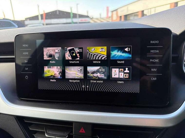 Amundsen satellite navigation with 9.2" glass colour touchscreen display, web radio, voice control and traffic sign recognition, Bluetooth system, E-call, Front assist system, Gesture control, PAS, Service indicator, Speed limiter, Wireless Smartlink for Apple CarPlay (wired for Android Auto), 8 Speakers, Auxiliary input socket, DAB Digital radio, Body colour bumpers, Body colour door mirrors and handles, Chrome grille surround, Dimming rear view mirror with black surround, Electrically adjustable and heated door mirrors, Front and rear electric windows, Headlight range control, Heated rear window, LED rear lights - low functionality, LED third brake light, Light sensors, Privacy glass, Rain sensor, Rear fog lights, Rear side wing doors, Rear wiper, 12V Accessory socket in centre console, 3 seat bench in 2nd row, Chrome inner door handles, Cloth upholstery, Front head restraints, Glove compartment with illumination, Height adjustable driver and front passenger seats - manual, Ice scraper, Isofix child seat fittings on outer rear seats, ISOFIX on front passenger seat, Manual lumbar support for front seats, Rake/reach adjustable steering wheel, Reading lights, Single front passenger seat, Sun visors with illumination on front passenger, Textile floor mats, Third rear headrest, Top tether for front passenger seat, Umbrella in driver's door, 3x3 point rear seatbelts, Airbags - driver and front passenger, ESP, Front passenger airbag deactivation switch, Front side airbags with curtain airbags, Hill hold control, Manual parking brake, Manual rear child locks, One tone horn, Rear disc brakes, Seatbelt reminder for driver an co-driver, Traction control, Tyre pressure monitor, Anti-theft alarm system with interior monitoring, backup horn, towing protection and remote central locking with SAFE system, Anti-theft wheel bolts, Electronic engine immobilizer, Silver haptic decorative insert on the dashboard with hot stamping in glossy black,