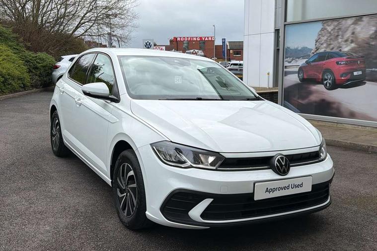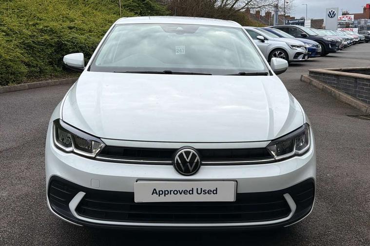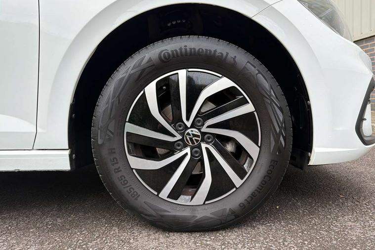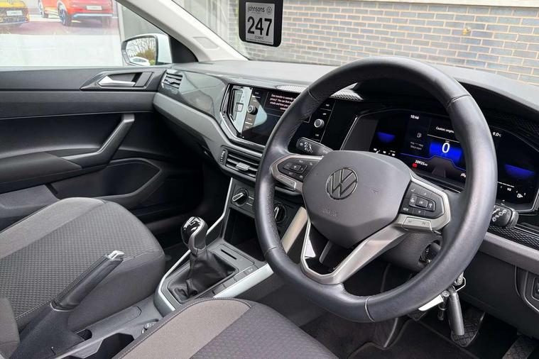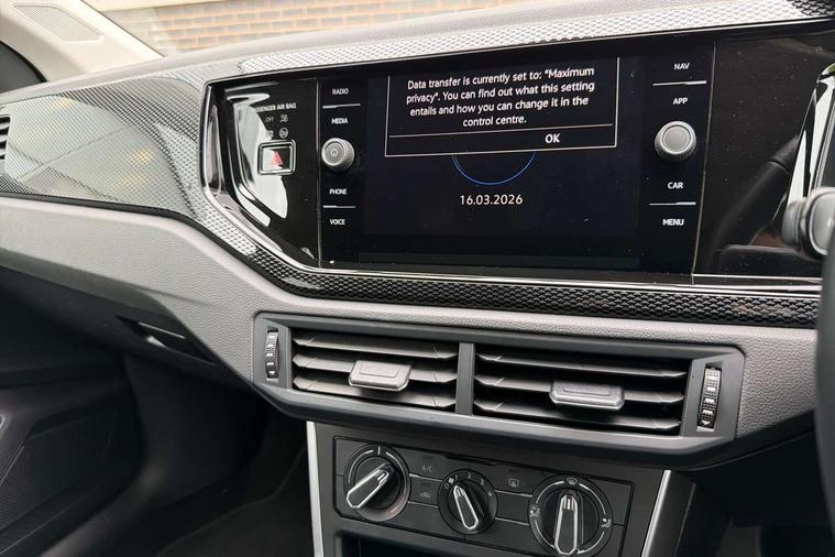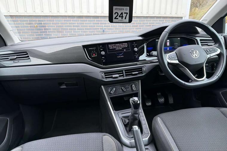 Adaptive cruise control without follow-to-stop and speed limiter, Bluetooth mobile phone interface, Driver alert system, Emergency call service, Front assist system, Power assisted speed sensitive steering, Preparation for We connect and We connect plus, Speedo and rev counter, electronic odometer, trip, service interval display and fuel gauge, Standard rear axle, Travel Assist - Lane keeping system and traffic jam assist, Travel assist including emergency assist, Trip computer, Warning signal and warning light for front and rear seatbelts not fastened, Washer fluid level indicator, Wireless app connect, Front wheel drive, Rear shock absorpion, Start-stop system with battery regeneration (recuperation - energy recovery during braking), DAB Digital radio, Diversity antenna for FM reception, Front and rear 6 speakers, Automatic dimming interior rear view mirror, Body colour bumpers, Body colour door handles, Body colour door mirrors, Electric front windows, Heat insulating darkened glass in side and rear windows, Heat insulating glass windscreen, Power folding adjustable/heated exterior mirrors and front passenger exterior mirror lowering function, Rain sensor, Rear electric windows, Rear fog light, Rear side wing doors, Rear windscreen washer and wiper with interval delay, Third brake light, 12V power socket in centre console, 2 front and 2 rear reading lights, 2 USB-C ports in the front, 2 USB-C charging sockets on the center console in the rear, 3 rear head restraints, 60/40 split folding rear seat and rear seat bench not split, Ceramique headliner, Chrome plated radiator grille inserts, air vent surrounds and light switch surrounds, Door and side trim panel, Driver and front passenger seat height adjustment, Driver/passenger sunvisors with illuminated vanity mirrors, Front centre armrest, Front seat backrest storage pockets, Front standard seats, Handbrake lever handle in leather, Hartley/Thomas cloth upholstery, Isofix child seat preparation easy-fit (for two outer rear seats, and front passenger seat) compatible with I-size, Leather trimmed gear knob, Luggage compartment cover, Luggage compartment floor, Luggage compartment lighting, Multifunction steering wheel, Single front passenger seat, Standard pedal cluster, Light and vision pack - Polo, 3 point height adj front seatbelts + pretensioners, 3x3 point rear seatbelts, ABS, Driver and front passenger airbag with front passenger airbag deactivation, Drivers and front passengers safety optimised head restraints, ESC (Electronic stability control) + EDL (Electronic Differntial lock) and ASR (Traction control), Extended and predictive pedestrian/ cyclist protection, Front curtain and side airbags with center airbag, Front disc brakes, Hill hold control, Manual child lock in rear doors, Rear drum brakes, Single tone horn, Tyre pressure loss indicator, Alarm with interior protection, Anti-theft alarm system with interior monitoring, backup horn, and towing protection, Anti-theft wheel bolts, Electronic engine immobiliser, Lava stone black gloss/matt decorative inserts in dash and front door panels, Low rolling resistance tyres,