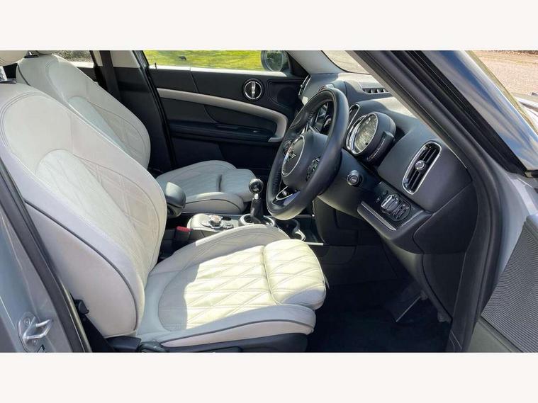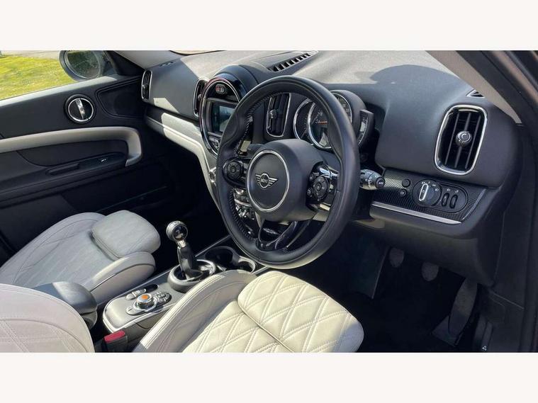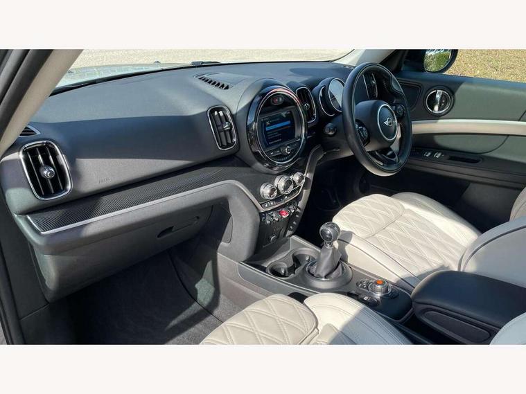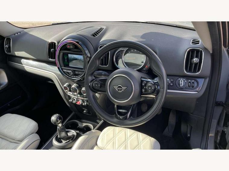 Active Guard incl speed limiting and lane departure functions with auto steering, and front collision warning with brake intervention, Automatic start/stop function with brake energy recuperation, Electro-mechanical speed dependant steering assistance, Instrument cluster, Mini E-call, MINI TeleServices, On board computer, Rear parking distance control, Double Vanos system, Fully variable valve control, High precision injection, FM tuner and DAB digital radio, Body colour fuel filler cap, Chrome line exterior, Day time driving lights, Door sill strips, Dynamic brake lights, Electric windows, Heated rear window, Heated windscreen washer jets, Left exhaust tailpipe with chrome finisher, Model logo, Model logo on Tailgate, Radiator grille, Rain sensor with auto headlights, Rear fog lights, Rear window wiper, Side scuttle panel with integrated indicator, Split rear doors, Sun/heat protection glass, White indicator lenses, 12V Accessory socket in centre console, 360L luggage compartment capacity, 4 lashing eyes in luggage compartment, 40:20:40 split folding rear seats, Chrome interior highlights, Cupholders, English handbook, Front headrests, Glove compartment, Height and length steering column adjustment, Interior lighting with 12 basic colours selectable via toggle switch in roof, Isofix rear child seat preparation, Leather gearshift lever and handbrake gaiters, LED reading lights, vanity mirror lights, front foot well light and spotlight on front seats, Manual air conditioning, Mechanical seat adjustment, driver seat height adjust, forward/back and front seats backrest, MINI Yours fine walk nappa leather steering wheel with contrast stitching in silver and MINI Yours badge, Multifunction steering wheel, Passenger seat height adjuster, Rear headrests, Storage compartments in doors, Sunvisors with vanity mirrors, Excitement pack - Countryman, Navigation pack - Countryman, 2 tone horn, 3 point seatbelts on all seats, 6 Airbags - front, side, head and seat belt tensioners, Anti-lock braking system (ABS), DSC - Dynamic Stability Control, Electronic handbrake, Front and rear disc brakes, Hill start assist, Tyre pressure monitoring system, Alarm system with tilt sensor, monitoring doors, bonnet interior and tailgate, Auto drive away locking, Deadlocking function, Electronic vehicle immobiliser, Locking wheel bolts, Start/stop toggle with keyless go, Chrome line interior, Tool kit,