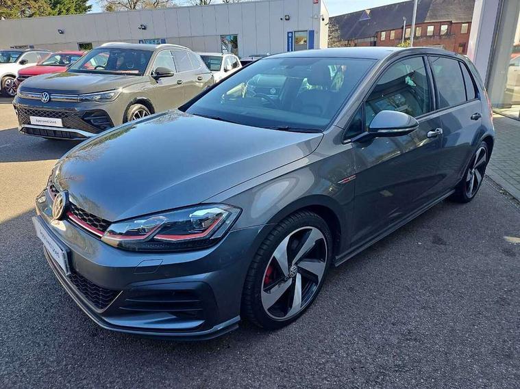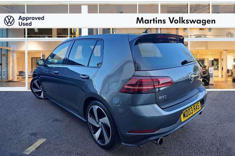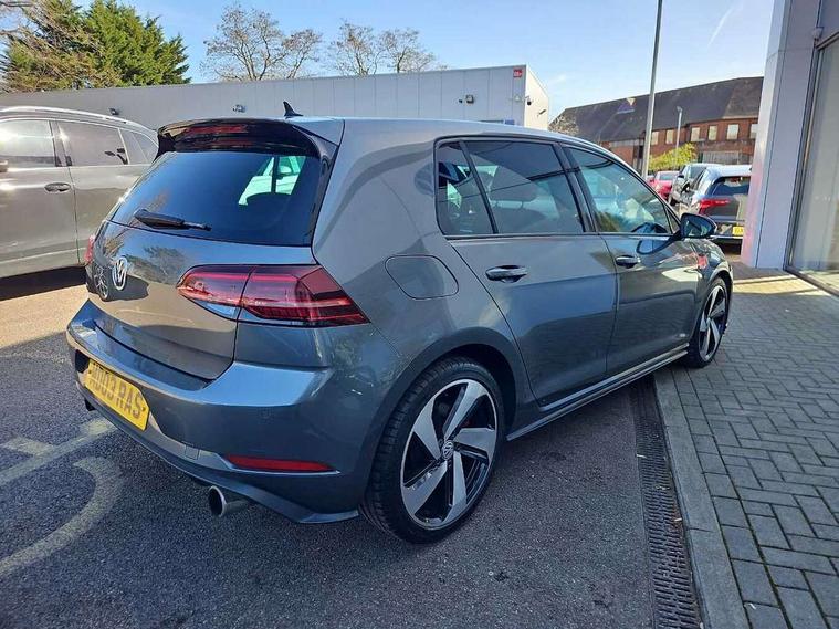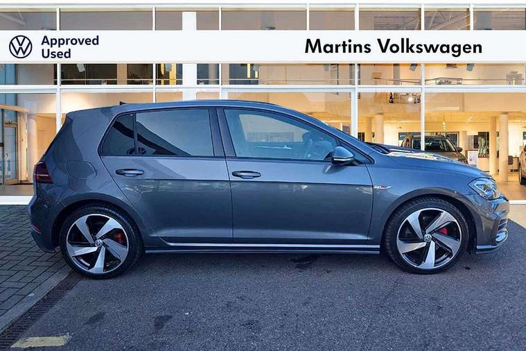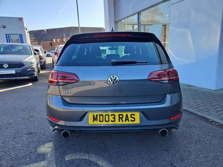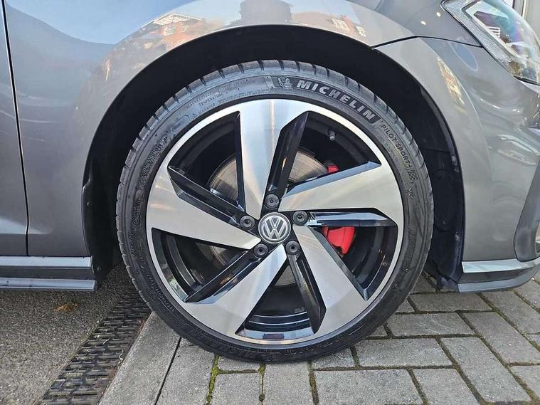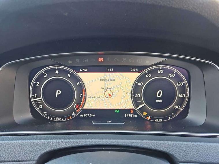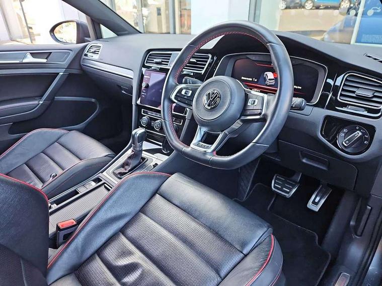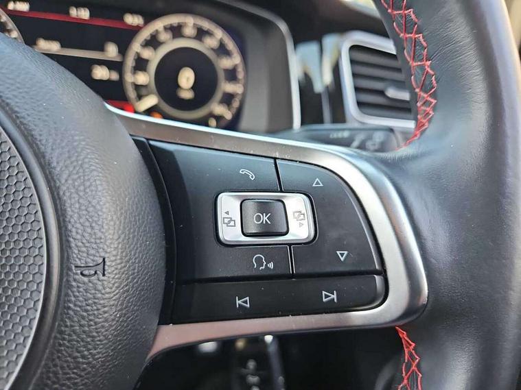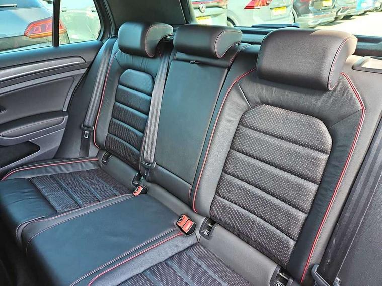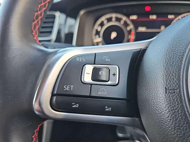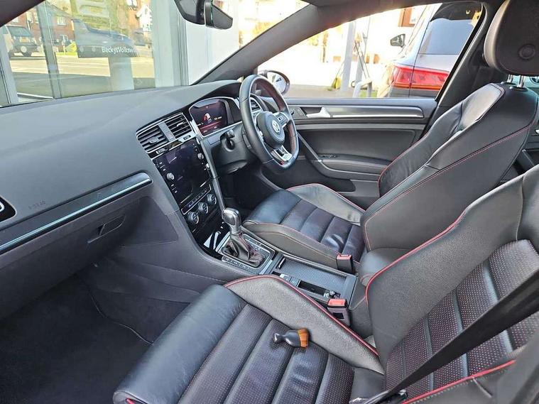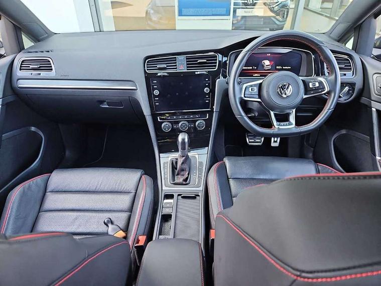 'Lights On' Reminder warning buzzer, 8" touch screen, Adaptive Cruise Control with pedestrian detection and speed limiter, App-Connect, Bluetooth hands free telephone connection, Brake pad wear indicator warning light, Driver alert system, Driver profile selection, Exterior temperature gauge, Front assistant collision mitigation, Instrument cluster in white, Multifunction computer, Progressive power assisted steering, Rev counter, Trip and service interval display, Ultrasonic front and rear optical and audible parking sensors, Warning buzzer and light for front seatbelts unfastened, Anti-tramp function, Lowered sports suspension, XDS plus electronic differential lock, CD/MP3/WMA, USB and SD card reader, aux-in, Composition media system, DAB Digital radio, 3D-LED-SBBR with sweeping indicator, Auto dimming rear view mirror, Automatic coming/leaving home lighting function, Automatic headlights, Black rear diffuser, Body colour door handles, Body colour door mirrors, Body colour rear roof spoiler, Body colour sports bumpers, Electric front windows, Electric rear windows, Electrically adjustable and heated door mirrors, Heated rear windscreen, Honeycomb radiator grille - black, LED daytime running lights, LED front fog lights, LED rear lights, Rain sensor, Rear windscreen washer and wiper with interval delay, Twin exhaust tailpipe, 12V socket in luggage compartment, 3 rear headrests, 3 spoke steering wheel, 60/40 split folding rear seat, Air conditioning - 2 zone electronic climate control, Bag hook in luggage compartment, Black headlining, Boot lashing points, Cooled glovebox, Courtesy light delay, Cover for storage compartment in centre, Dust/pollen filter, Front + rear carpet mats, Front centre armrest with storage box and rear air vents, Front passenger seat height adjust, Front seat back storage pockets, Gearshift paddles, Grab handles, Height adjustable driver's seat, Height/reach adjust steering wheel, Illuminated door sills, Illuminated vanity mirrors, Isofix preparation for 2 rear child seats, Load through provision with rear centre armrest and cupholders x2, Luggage compartment cover, Luggage compartment lighting, Multi-function leather steering wheel with red stitching, Overhead storage box, Stainless steel pedals, Storage box in luggage compartment, Storage compartments in doors, Sun visors, Variable boot floor, height adjustable and removable, Ambient lighting pack - Golf, Mirror pack - Golf, 3 point height adj front seatbelts + pretensioners, 3 rear 3 point seatbelts, ABS, Automatic post collision braking, Child locks on rear doors, Driver/Front Passenger airbags, Driver/Passenger whiplash optimised head restraints, Drivers knee airbag, Electronic parking brake with auto hold, ESP with EDL + ASR, Front and rear curtain airbags, Front passenger airbag deactivation, Front side airbags, Pre crash system, Red brake calipers, Tyre pressure monitor, Alarm with interior protection, Electronic engine immobiliser, Remote central locking with 2 remote folding keys, Chrome-plated light switch surround, Honeycomb black decorative inserts, Piano black centre console, Space saver spare wheel,