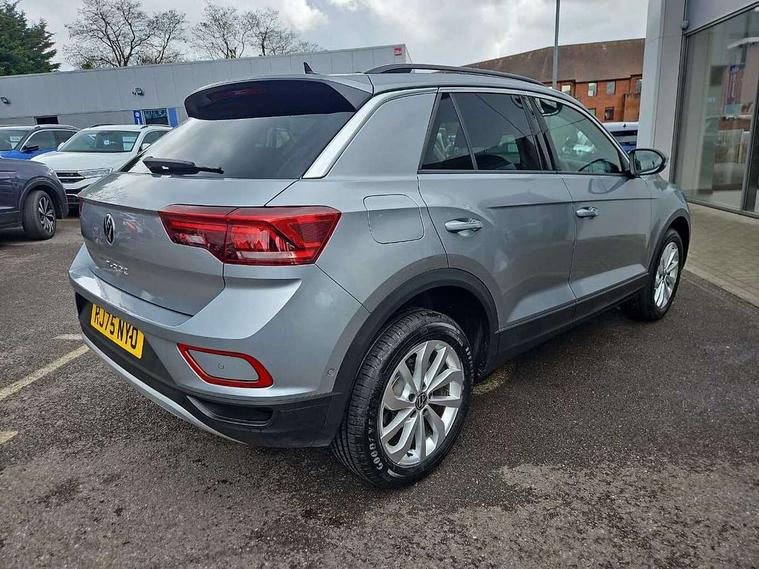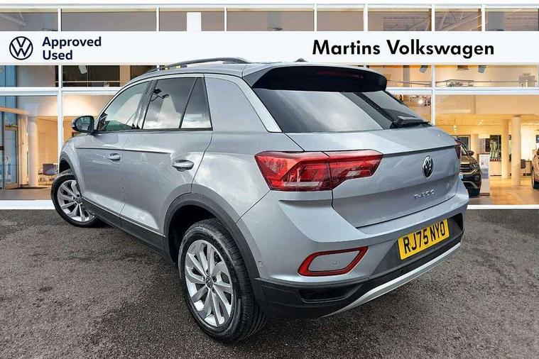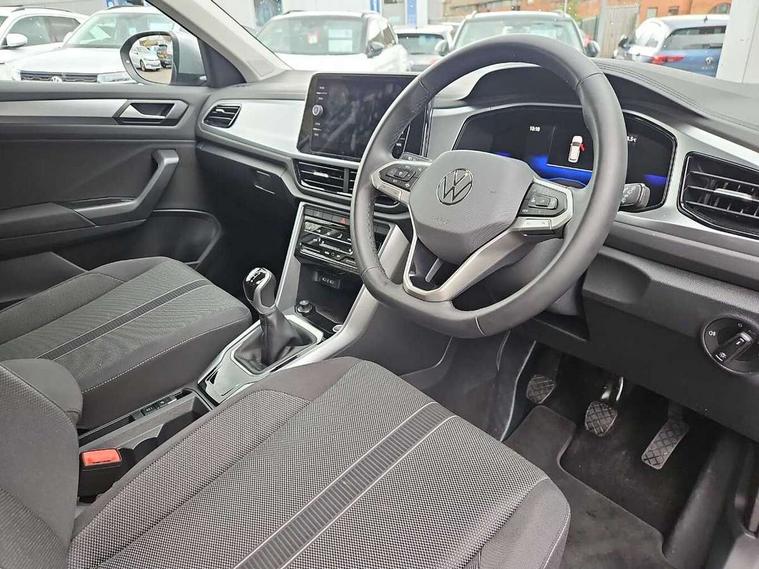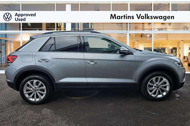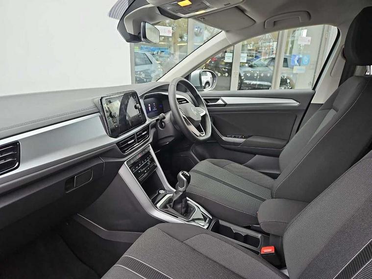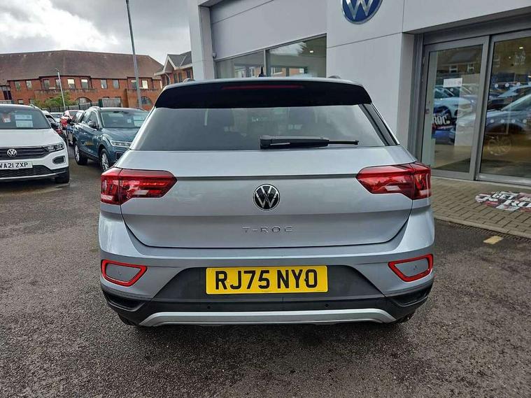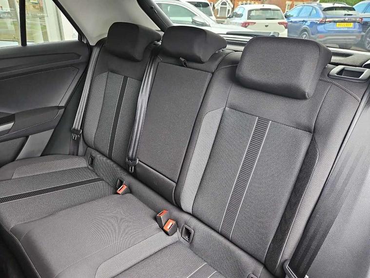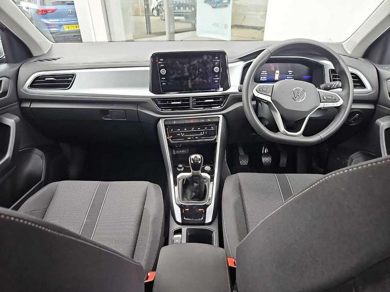Advanced driver attention and drowsiness monitor, Dynamic road sign display, Emergency call service, Lane keeping system Lane Assist, Mobile phone interface, Modified key software - reduce switch off time for key status change to Long no motion, Online services, Park assist including front and rear parking sensors, Power assisted speed sensitive steering, Rear view camera, Service interval indicator, Tailgate/trunk lid release from outside, Think blue trainer driver tips and journey analysis, Warning sound and light for front seatbelts unfastened, Wireless app connect, Battery regeneration during braking, Front shock absorption, Rear shock absorption chassis with increased ride height, Start/stop function with battery regeneration, DAB Digital radio, Diversity antenna for FM reception, Music playback - MP3, WMA and AAC files, SD card slot, Simultaneous pairing of 2 compatible mobile devices, Title and cover art display, We Connect and We Connect Plus functionality, Auto dimming interior rear view mirror, Automatic hazard lights activation under emergency braking, Automatic headlight control with LED separate daytime running lights with coming/leaving home function, Black roof rails, Body coloured bumpers and radiator grille with chrome trim and front fog lamps with chrome bezel, Body coloured exterior mirror housings and door handles, Electrically adjustable and heated door mirrors, Extended roof spoiler, Exterior mirrors aspherical on driver side, convex on front passenger side, External USB type C socket and charging sockets, Front windscreen wiper with intermittent wipe and 4 position delay, Heated rear window, LED 3rd brake light, LED rear combination lamps, LED rear number plate lights, Power windows with comfort operation and circuit breaker, Privacy glass for rear side windows and rear window, Rain sensor, Rear exhaust tailpipe, Rear fog light on one side and reversing lights on both sides, Rear side wing doors, Rear wash/wipe with intermittent wipe setting, Remote electrically foldable door mirrors, puddle lights and reverse activated passenger's door mirror, 12V power socket in centre console, 3 rear head restraints, 3 seat bench in 2nd row, 4 load lashing points in luggage compartment, Air care climatronic air conditoning system with active combination filter and 2-zone temperature control, Black stitching for floor mats, Ceramique roof liner, Cloth upholstery, Door and side trim panel in cloth, Drawer under drivers seat, Driver/front passenger seat height adjustment, Front centre armrest, Front comfort sports seats, Front cupholders x 2, Front reading light, Front seat back storage pockets, Glove compartment door with light, Instrument lighting, white adjustable panel illumination, Interior ambient lighting and surround lighting, Interior light delay, Isofix child seat preparation, Leather gearshift handle, Load-through provision with cup holder when folded down ('Unsplit rear seat bench, split folding backrest, with centre armrest), Luggage compartment lighting, Lumbar support for driver's and front passengers seat, Non-folding front passenger seat backrest, Single front passenger seat, Storage compartment in left and right luggage area, Storage compartment in rear doors, Storage compartments in driver and front passenger doors, Sunvisors with illuminated vanity mirrors, Variable boot floor, height adjustable and removable, Driver assistance pack without proactive passenger protection - T-Roc Life/Match, 3 point height adj front seatbelts + pretensioners, 3 point seatbelts in outer rear with ECE label, ABS, Child locks on rear doors, City emergency braking and pedestrian monitoring, Driver and front passenger airbag with front passenger airbag deactivation, Driver and front passenger safety-optimised head restraints, Drivers seatbelt reminder, Electronic parking brake, Electronic Stability Control (ESC) inc EDL (Electronic Differential Lock) and ASR (Traction Control), Front and rear passengers curtain airbag system including front side airbags, Front disc brakes, Hill start assist, Predictive pedestrian protection, Rear disc brakes, Two tone horn, Tyre pressure loss indicator, Volkswagen roadside assistance, Alarm with interior protection, Keyless locking and starting system keyless access with safelock, Pewter matt decorative inserts for intrument panel, centre console and door panels at the front, Trims for alloy wheels,