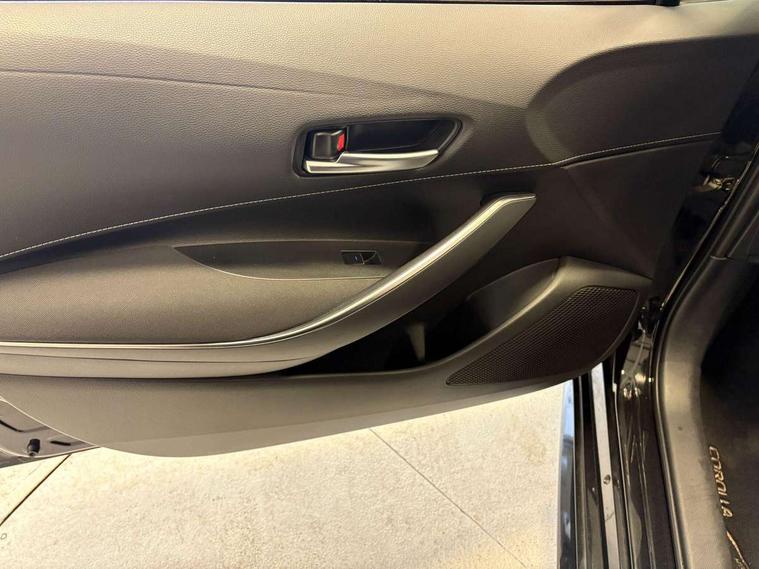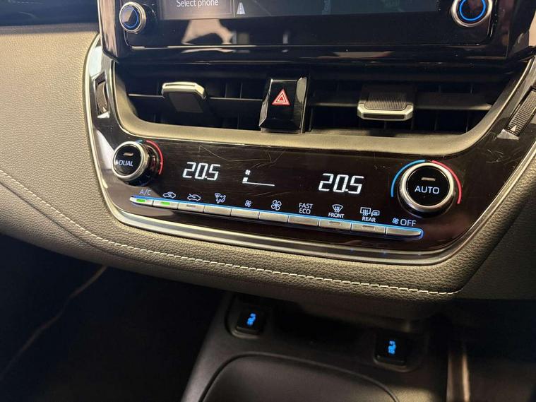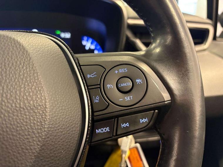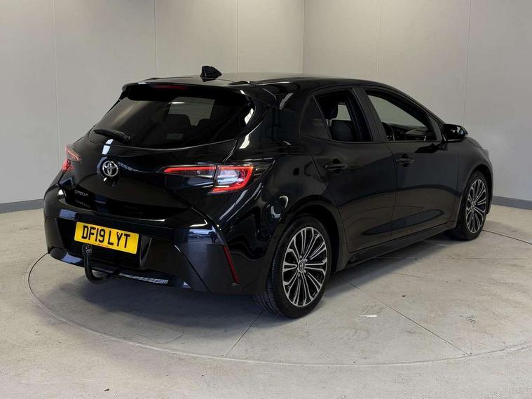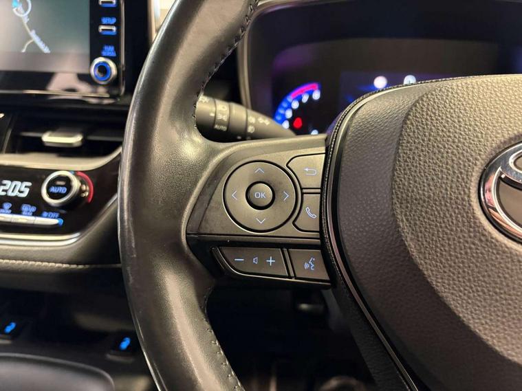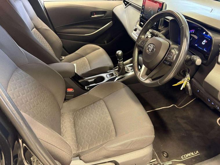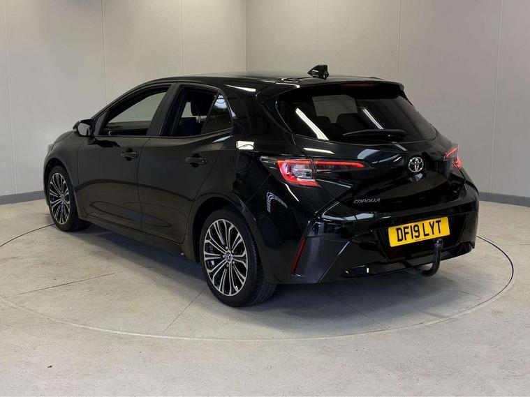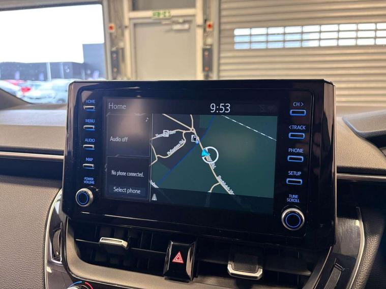Adaptive cruise control, Bluetooth telephone connectivity, E-call, Electrically assisted power steering, Front parking sensor, Intelligent park assist, Rear parking sensor, Reversing camera, Voice activation, Vehicle Stability Control (VSC), 2 ring combimeters with 7" colour TFT screen, 6 speakers, 8" multimedia and back monitor, AM/FM radio, DAB Digital radio, Toyota touch 2 with go navigation system, USB/AUX connectivity, Anti-jam protection on power windows, Auto dimming inside rear view mirror, Auto high beam, Auto up and down function on all power windows, Automatic folding mirrors, Automatic headlights, Automatic rear view mirror, Automatic wipers, Body coloured bumpers, LED daytime running lights, LED fog lights, LED Headlights, LED rear combi lights with LED lightguide, Power front windows, Power rear windows, Privacy glass, Rain sensor, Rear window wiper, Shark fin antenna, 3 rear headrests, Clean air filter, Dual zone automatic air conditioning, Fabric upholstery, Front head restraints, Heated seats, ISOFIX seat fixing (2 fixings on rear outer seats), Leather steering wheel and gear knob, Pollen filter, Power lumbar support, Tilt/telescopic steering column, Whiplash Injury Lessening (WIL) feature (active headrest) for seats, Parking pack - Corolla, Toyota safety sense 2 - Corolla, 3x3 point rear seatbelts, Anti lock braking system + Electronic brake force distribution, Brake assist function, Electronic parking brake, Front passenger airbag on/off switch, Front seatbelt reminder, HAC - Hill start assist control, Rear seat belt reminder, Seatbelt pretensioners and force limiters, Supplemental restraint system (SRS) airbags - 7 airbags including driver, front passenger, curtain, side and knee airbags, Traction control, Tyre pressure warning system, Alarm/immobiliser, Space saver spare wheel,