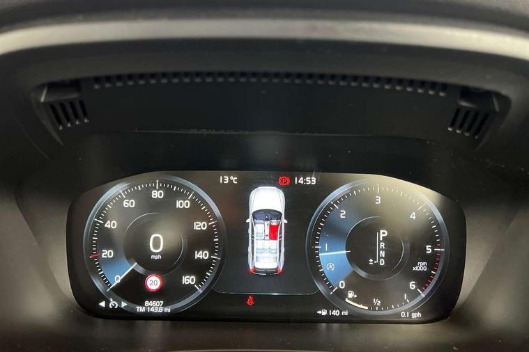 Iron ore inlays, Tailored instrument panel with contrast stitching, Anti-theft alarm including immobiliser/volume sensor + level sensor, Fuel flap with deadlocking system, Key integrated remote control central locking, Keyless Start, Locking wheel nuts, Private locking, DAB Digital radio, Steering wheel mounted remote controls, 5 three point seatbelts, ABS/EBD, Child proof door locks, City safety, Drivers knee airbag, DSTC-Dynamic Stability and Traction Control, Dual stage driver/passenger airbags, EBA, Electronic parking brake with auto hold, Fasten seatbelt reminder, First aid kit, HBA (Hydraulic Brake Assist), Hill descent control, Hill start assist, Inflatable curtain, Passenger airbag deactivate switch, Road sign information display, Roll over protection, RSC - Roll stability control, Run off Road Protection, Seatbelt pre-tensioners, SIPS airbags, Tyre pressure monitor, Warning triangle, Adaptive brake lights, Aluminium tread plates, Auto dimming interior + exterior mirrors, Body colour bumpers, Body colour door mirrors, Electric front+rear windows, Electrically adjustable and heated door mirrors, Front skid plate, Headlamp levelling, Home safe and approach lighting, Illuminated side steps, LED Headlights + Active high beam incorporating daytime running lights, Piano black front grille with chrome surround, R Design tread plates, Rain sensor windscreen wipers, Rear wiper, Roof antenna, Roof spoiler, Silver roof rails, Tinted windscreen, Twin exhaust tailpipes with chrome finishers, Visible VIN plate, 12V power point in luggage area, 12V socket in front + rear tunnel console, 3 spoke leather steering wheel with chrome trim, 4 aluminium high level anchor points, 60/40 split folding rear seat, A-pillar parking ticket holder, B Pillar ventilation, Bright metal luggage threshold, Centre armrest storage illumination, Floor mats, Front centre armrest with storage compartment and cupholders, Front footwell illumination, Front/rear reading lights, Glovebox illumination, Head restraints for all seats, Heated front seats, Height adjustable drivers seat with lumbar support, Height/reach adjustable steering column, Illuminated driver/passenger vanity mirrors, Illuminated luggage compartment, Isofix attachments on rear seats, Leather upholstery, Load cover, Lockable load floor, Passenger seat adjustable for lumbar support, Pollen filter, Rear armrest / integral cup holders / storage tray, Rear seat concealed storage, Theatre dimming interior lights, Underfloor stowage compartment, WHIPS - Whiplash Protection System, 12.3" Active TFT crystal driver's instrument display, 9" Touch screen, Adjustable steering wheel force, Bluetooth hands free telephone kit, Drive mode selector, Intelligent driver information system (IDIS), Lane keep assist with driver alert control, Oncoming Lane Mitigation, Power tailgate, Road Edge Detection, Service interval indicator, Speed limiter, Speed sensitive steering, Voice control system, Volvo on call, Diesel particulate filter,