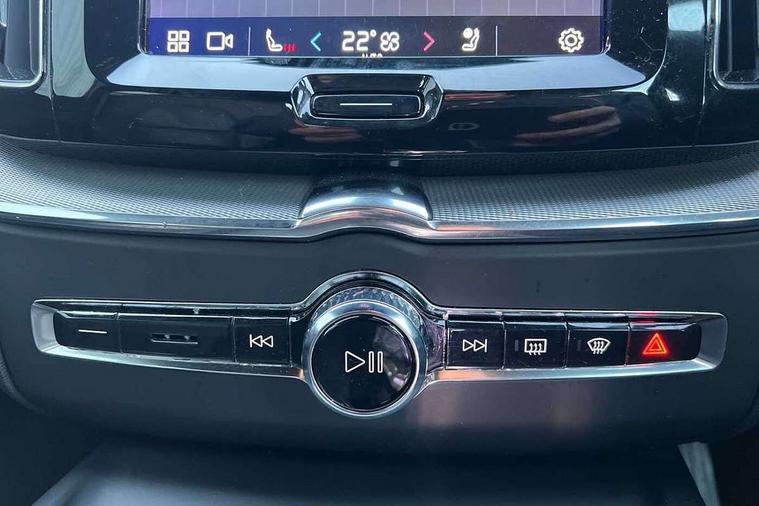 12.3" Progressive Driver Display, 360 degree surround view parking camera with side proximity sensors, 9" centre console touch screen, Adjustable steering wheel force, Bluetooth handsfree system, Driver alert control with lane keeping aid, Driver assistance (pilot assist and adaptive cruise control), Driver awareness - Blind spot information system with steer assist, cross traffic alert with autobrake and rear collision warning and mitigation, Emergency services call system, Front and rear park assist, Google Automotive Services, Oncoming Lane Mitigation, PAS, Service interval indicator, Speed limiter, Speed sensitive steering, Trip computer, Volvo on call with App, Wireless/Inductive Mobile Phone Charging, 8 speed automatic transmission with start/stop + manual change functions, Diesel particulate filter, Dynamic chassis, DAB Digital radio, Premium Sound by Harman Kardon, dirac unison, dolby pro logic II surround sound, 13 speakers/600W output and fresh air subwoofer, Steering wheel remote infotainment controls, Adaptive brake lights with high level LED brake lights, Auto dimming interior + exterior mirrors, Automatic headlight levelling system, Automatic LED Headlights + Active high beam incorporating daytime running lights, Electric adjustable/heated/auto power folding door mirrors, Electric front+rear windows, Front aluminium tread plates, Heated front windscreen, High gloss black door mirrors and window surround, High gloss black front and rear bumper decoratives, High gloss black mesh front grille with high gloss black surround, Home safe and approach lighting, Integrated roof rails in high gloss black, LED front fog lights, Puddle lights, Rain sensor with automatic windscreen wiper activation, Rear side wing doors, Rear wiper, Roof antenna, Roof spoiler, Tinted windscreen, Visible VIN plate, 12V socket in front tunnel console and luggage compartment, 3 seat bench in 2nd row, 4 Zone electronic climate control, A-pillar parking ticket holder, Air purifier particulate matter (PM) 2.5 filter, B Pillar ventilation, Bright metal luggage threshold, Centre console cupholders and storage, Charcoal floor mats, Front and rear courtesy lights, Front and rear door pocket illumination, Front cupholder illumination, Front footwell illumination, Front reading lights, Front seat cushion extensions, Glovebox compartment with illumination, Head restraints for all seats, Heated front seats, Heated steering wheel, Height/reach adjustable steering column, Illuminated luggage compartment, Illuminated vanity mirrors + ticket holder, ISOFIX attachment on outer rear seats, Load cover, Load protection net, Multi directional lumbar support, Power driver seat with memory + exterior mirrors memory, Power height adjustable passenger seat, Rear armrest with cupholder, Rear footwell and front and rear side step illumination, Rear seat concealed storage, Single front passenger seat, Tailgate illumination and ambient door lighting, Underfloor stowage compartment, Versatile split folding rear seat - 60/40, 5 three point seatbelts, City safety with steering support with Pedestrian + cyclist + large animal detection + front collision warning with full auto brake, Drivers knee airbag, Dual stage driver/passenger airbags, Electronic parking brake with auto hold, First aid kit, Front seats SIPS airbags, Hill descent control - Off-road drive mode, Hill start assist, IC (Inflatable Curtains) - Full Length, Passenger airbag cut-off device, Power child locks on rear doors, Road sign information display, Run off Road Mitigation, Run off Road Protection, Seatbelt reminder and pretensioners, SIPS (Side Impact Protection System), Slippery road and hazard light alert, Stability and Traction Control with Spin control, Engine Drag Control and Corner Traction Control, Tyre pressure monitoring system, Vehicle deceleration control with Anti-lock Brake System, Electronic Brake Distribution and Emergency Brake Assist, Warning triangle, WHIPS whiplash protection system - front, Anti-theft alarm including immobiliser/volume sensor + level sensor, Care key with user defined top speed, Key integrated remote control central locking + fuel flap with deadlocking system and auto open/close power windows, Keyless Drive (includes Keyless Entry and Keyless Start) with Handsfree Tailgate Opening/Closing, Locking wheel nuts, Private locking for tailgate,