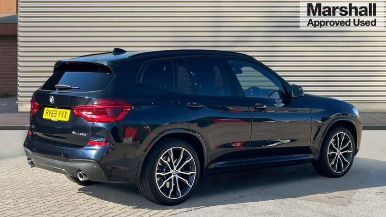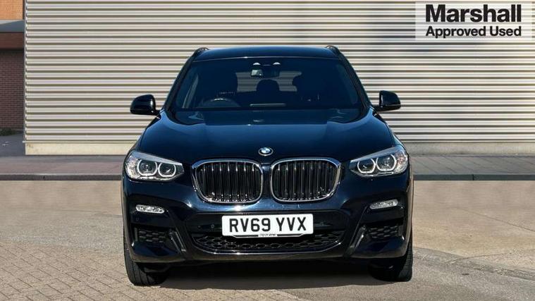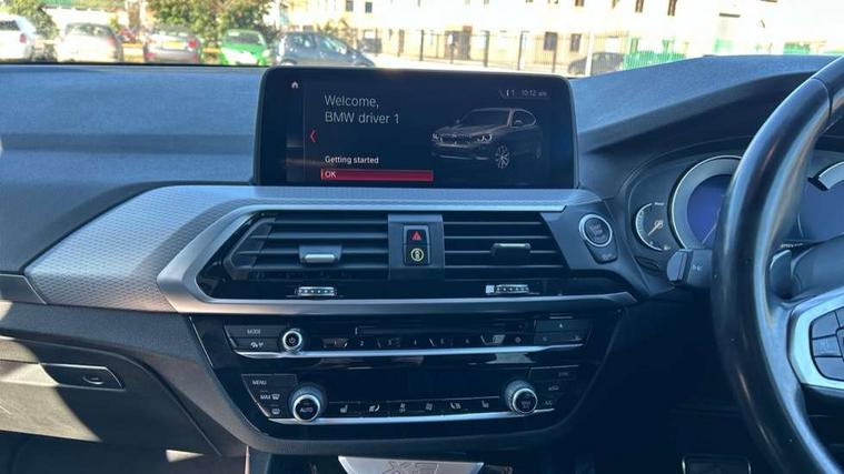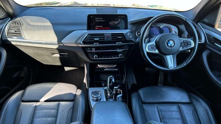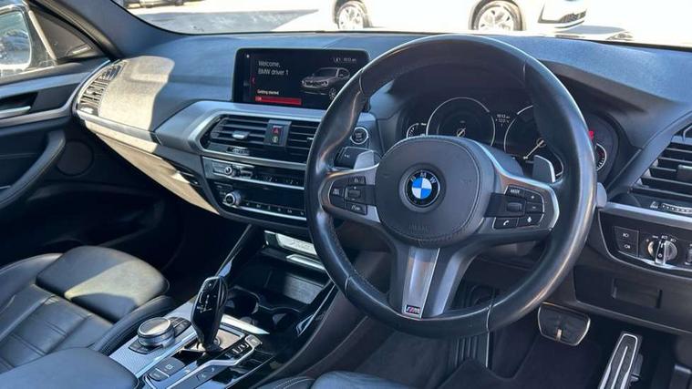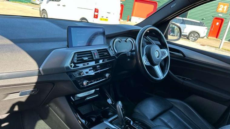 Active Guard incl speed limiting and lane departure functions with auto steering, and front collision warning with brake intervention, Attentiveness assist, Automatic tailgate operation, BMW Live Cockpit Professional sat nav system including 10.25" high resolution display and Intelligent Voice Assistant, BMW Online services, BMW Teleservices, Brake pad wear indicator in front and rear, Check Control warning system for monitoring of lights and door/luggage compartment open warning, Control display - 6.5" colour display screen, Electric Power Steering (EPS) with Servotronic, Front/rear Parking distance control, iDrive Controller with 8 favourite buttons, Lights on warning by audio warning signal when ignition is switched off, Navigation system - BMW Professional multimedia with Hard disc drive (HDD) and 10.25" touch display, Oil sensor for level and grade, warning by check control system, On board computer - average speed+fuel consumption, service interval, clock/date, odometer/trip meter, outside temperature display and ice warning, Optimum shift indicator, Personal Profile - automatic lock when driving away selectable, Real time traffic information, Semi digital instrument cluster, Stop/start system, Automatic transmission with gearshift paddles, Diesel particulate filter, Incorrect fuelling protection, Larger capacity fuel tank, Multi-link rear suspension, Performance Control, Auxiliary socket for external MP3 player, BMW professional radio/CD/MP3, DAB Digital radio, Acoustic glazing, Black finish on B pillars, Body colour door handles, Body colour electric adjust heated aspherical door mirrors, Body colour roof mouldings, Body coloured bumpers, Chrome kidney grille with high gloss black vertical slats, Direction indicator, side repeaters, integrated in exterior mirrors, Dual chrome exhaust, Dynamic brake lights, Exterior mirrors - electrically folding with anti-dazzle, Fingertip control / anti-trap function on electric window, Follow me home headlights, Front and rear bumper system with replaceable deformation elements, Front and rear electric windows, Green tinted heat insulating glass, Heated windscreen washer jets, Height adjustable headlamps, High gloss black door sill finishers, High gloss black shadow line roof rails, High gloss shadowline exterior trim in decorative moulding side frame/recess cover/guide rail/B, C pillars/mirror frame and triangle with mirror base, High level 3rd brake light incorporating LED Technology, Interior rear view electrochromatic mirror with automatic anti dazzle function, LED front fog lights, LED tail lights, Lightweight engineering, M aerodynamic bodystyling, Model designation, Rain sensor including auto headlights activation, Rear wiper, Shark fin antenna, Visible VIN plate, Welcome lighting, Windscreen wipers with adjustable interval, 12V socket in centre console and luggage area, 3 rear headrests, 3 zone automatic air conditioning, 4 lashing points to secure luggage, Ambient lighting, Anthracite headlining, Anthracite Velour floor mats, Driver/passenger sunvisors with ticket holders + illuminated vanity mirrors, Foldable boot floor with storage compartment, Four grab handles integrated in roof lining, Front and rear bottle holders integrated into door trim storage compartments, Front and rear side armrests integrated into door trim, Front centre armrest with storage compartment, Front footwell lights, Front sports seats, Front/rear courtesy lights with soft on/off dimming, Front/rear reading lights, Height adjustable front/rear head restraints, Isofix rear child seat preparation, Leather gear knob, Luggage area underfloor compartment, Luggage compartment lighting, M Sport multifunction leather steering wheel, Parcel shelf removeable and storable under boot floor, Reach and rake adjustable steering column, Rear centre armrest with 2 cupholders, Rear seat centre armrest with two cupholders, Removable / retractable luggage cover, Slope adjustable rear seats, Storage compartment in rear centre console and front/rear door trims, Through loading system with 40/20/40 split folding rear seat, Toolkit located in luggage compartment, Two front cupholders with removable oddments tray/lid, Vernasca leather upholstery, Connected pack professional - X3, ABS/EBD, ADB - Automatic Differential Brake, Automatic Stability Control (ASC), Battery safety cut-off, BMW emergency call, Brake assist, Brake assist function, Brake drying, Brake energy regeneration, Braking pre-tensioning, Child locks on rear doors, Cornering brake control (CBC), Crash Sensor - activation of central locking release, hazard warning light and interior lighting, Deactivation of fuel pump in the event of a crash, Driver and front passenger front and side airbags with passenger deactivation and ITS front and rear head airbags, DSC+, Dynamic brake control, Dynamic Traction Control - DTC, Electromechanical parking brake, Front seat belts warning, Hill descent control, Hill start assist, Seatbelt security check for front seats, Side impact protection, Three point seatbelts to all seats with front and outer rear pyrotechnic belt tensioners and seat belt force limiters, Two tone horn, Tyre pressure monitoring system, Ventilated front and rear disc brakes, Warning triangle and first aid kit, Central locking switch for all doors, fuel filler cap and luggage compartment, Electronic engine immobiliser, Locking wheel nuts, Remote control including two integrated key - one button for open/close all lockable content, windows and separate button for open luggage compartment, Remote control Thatcham category 1 alarm, Start/stop button with Comfort Go keyless engine start and auto Start/stop deactivation button, Low rolling resistance tyres,