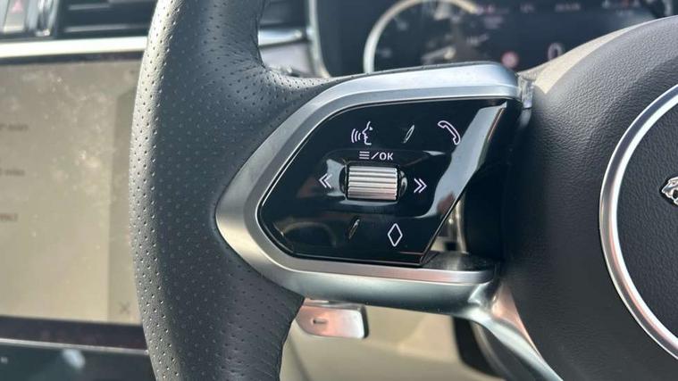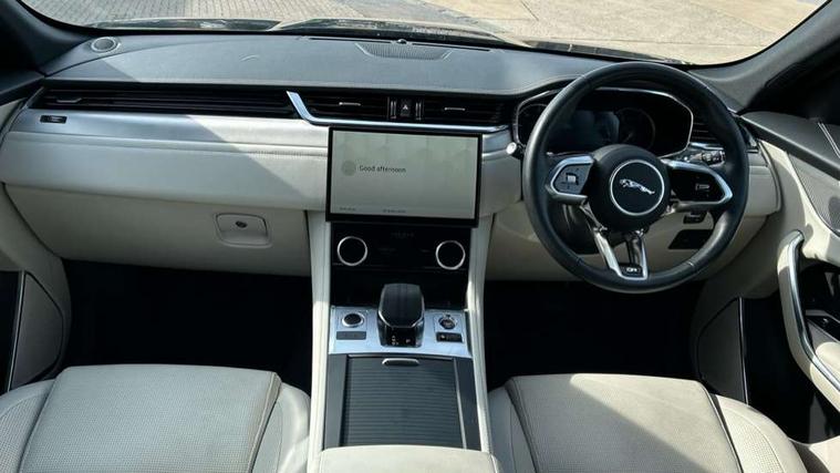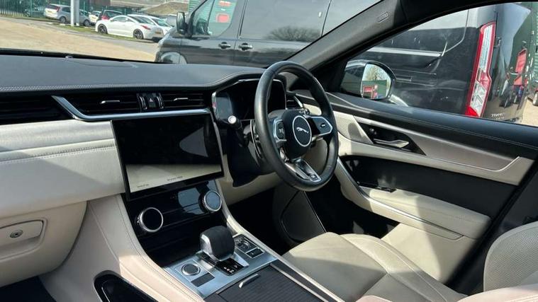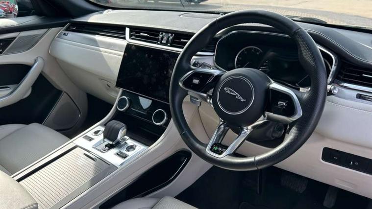 11.4" touchscreen, Android Auto, Apple car play, Bluetooth connectivity, Driver alert system, Driver condition monitor, eCall emergency call system, Eco driving style assistant, Electric power assisted steering, InControl remote, Jaguar Toggle shift selector, Lane departure warning system, Lane keep assist, Outside temperature gauge, Personalisation profile management, Pivi pro connected navigation system with app interface and media storage, Pro services and wifi hotspot, Push button starter, Service interval indicator, Speed proportional steering, Start up sequence with movement in dials and lighting, Traffic sign recognition with adaptive speed limiter, Trip computer, Voice control system, 8 speed automatic transmission, All terrain progress control, All Wheel Drive (AWD), Open differential with torque vectoring by braking, AM/FM radio, Bluetooth streaming, DAB Radio (Digital Audio Broadcasting), Dynamic volume control, InControl apps, InControl protect, iPod integration, 3 flash lane change indicators, Approach Illumination, Auto dimming rear view mirror, Automatic headlights, Body colour door mirrors, Electric windows with one touch open/close and anti trap, F-Pace and R Dynamic badge, Green tinted glass, Heated front windscreen + heated washer jets, Heated rear window with timer, Jaguar script and leaper, LED High level third brake light, LED tail lights, Non acoustic front windscreen, R Dynamic badge on side door, Rain sensor windscreen wipers, Rear fog lights, Rear metal tread plates, Rear side wing doors, Rear wiper, Trailer stability assist, Variable front intermittent wipers, 12V power point front, 3 rear headrests, 3 seat bench in 2nd row, Air distribution speed, Centre armrest console, Centre console with side storage, Deletion loadspace storage rails, Door sill tread plates, Fold flat front seats, Front centre armrest with storage compartment, Front door storage space, Glovebox finisher with jaguar script, Heated steering wheel, Hooks in loadspace, Illuminated glovebox, Interior front door handles with separate locking switches, ISOFIX on outer rear seats, Jaguar sense, Luggage tie downs in loadspace, Mist sensing, Multifunction steering wheel, Overhead lighting console, Overhead stowage for sunglasses, Passive front head restraints, Premium carpet mats, R-Dynamic branded leather steering wheel, Rear air vents, Rear armrest with twin cupholders, Rear centre headrest, Rear door storage space, Reversible boot floor, Satin chrome gearshift paddles, Shopping bag hook, Single front passenger seat, Sunvisors with illuminated vanity mirrors, Twin front cupholders with cover, Online Pack with data plan - F-Pace, 355mm front brakes and 325mm rear brakes, 3x3 point rear seatbelts, ABS, All surface progress control (ASPC), Brake pad warning light, DSC - Dynamic Stability Control, Electric parking brake (EPB), Emergency brake assist, Front airbags with passenger seat occupant detector, Front and rear seatbelt reminder, Front side airbags, Full length side window curtain airbag, Hill launch assist, Power operated child locks, Torque vectoring brake, Traction control, Tyre pressure monitoring system, Immobiliser, Keyless start, Locking wheel nuts, Perimeter alarm, Remote central locking, Valet mode,