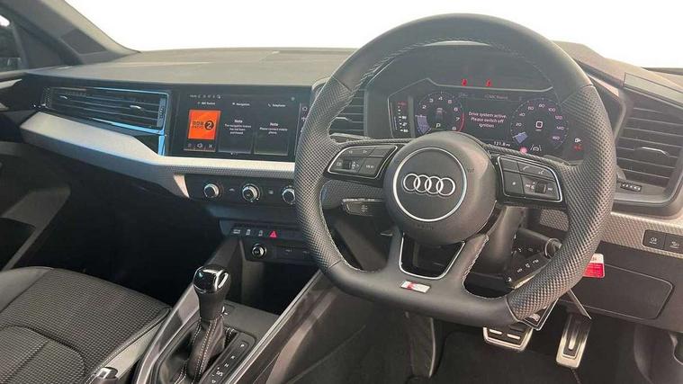 10.25" Digital instrument cluster display classis style instrument dials + speed, odometer, time, outside temperature, telephone menu + fuel level warning, Advanced driver attention and drowsiness monitor, Audi connect emergency call and service, Audi drive select, Audi remote connect and control, Audi smartphone interface, Bluetooth interface, Camera based traffic sign recognition, Cruise control, Driver's information system, Electromechanical power steering, Lane departure warning system, Rear parking sensor, Service interval indicator, Speed limiter, Start stop system with recuperation, Voice control system, Washer fluid level indicator, Sports suspension, 2 x USB type C connection points, 6 loudspeakers, DAB Digital radio, MMI radio plus with 10.1" colour MMI display screen and MMI touch, Auto dimming rear view mirror, Black side skirts, Body coloured bumpers, Door sill trims with aluminium inlays and logo, Electric front and rear windows, Electrically adjustable, heated, folding door mirrors with integrated LED side indicator, Front side air inlets in grained matt black and C frame in anthracite black, Front wing badges, Headlight cleaning system, Heat insulating glass windscreen and side windows, Heated rear windscreen, High level LED brake light, LED daytime running lights, LED headlights with range control LED rear lights + dynamic rear indicators, Light and rain sensors, Privacy glass, Radiator grille and rear diffuser in matt anthracite black, Radiator protective grille frame in matt aluminium silver, Rear fog lights, Rear side wing doors, Rear wiper, Side front spoiler lips in grained matt black, 12V socket in centre console with two cup holders, 3 rear seats with headrests, 3 seat bench in 2nd row, 3 spoke flat bottomed multi-function plus leather steering wheel with S badging, grips in preforated leather, contrast stitching and paddle shift, 40:60 Split folding rear seat or fully collapsed, Black cloth headlining, Front and rear velour black floor mats with contrast stitching in fine silver, Front head restraints, Front passenger seat, Height and reach adjustable steering wheel, Interior lighting includes roof module, front and rear reading lights and right luggage compartment lighting, ISOFIX child seat mounting for front passenger and outer rear seats including top tether attachment point of outer rear seats, Leather gear knob with aluminium trim, Leather handbrake grip, Manual air conditioning, Manual height adjustable for driver and front passenger seat, Manually adjustable lumbar support in front seats, Stainless steel pedals, Ambient lighting package - A1, Black styling pack - A1 Sportback Black Edition, Luggage compartment pack - A1, 3x3 point rear seatbelts, Audi pre-sense front with pedestrain and cyclist recognition, Brake assist function, Driver and front passenger airbag with front side and head airbags, Electronic Stability Control including ABS, EBD, ASR and EDL, Front passenger airbag deactivation switch, Hill hold assist, Manual rear child locks, Seatbelt height adjustment for front seats, Seatbelt monitoring, Tyre pressure loss indicator, Warning triangle and first aid kit, Anti theft alarm, Anti theft wheel bolts, Immobiliser, Remote control key with safelock, Aluminium trim for control switches, air vents and digital instrument cluster, Black dashboard, Silver grey inlays polygon structure in diamond paint finish, Structured grey accent surfaces insert of air vents, interior door handle recesses and centre console in quartz paint finish,