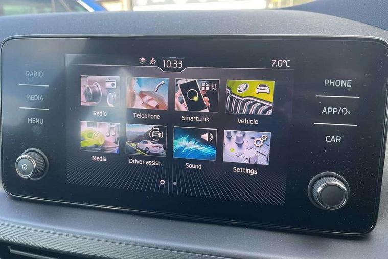 Bluetooth system, E-call, Front assist system, PAS, Service indicator, Speed limiter, Wireless Smartlink for Apple CarPlay (wired for Android Auto), 8 Speakers, Auxiliary input socket, DAB Digital radio, Body colour bumpers, Body colour door mirrors and handles, Chrome grille surround, Dimming rear view mirror with black surround, Electrically adjustable and heated door mirrors, Front and rear electric windows, Headlight range control, Heated rear window, LED rear lights - low functionality, LED third brake light, Light sensors, Rain sensor, Rear fog lights, Rear side wing doors, Rear wiper, 12V Accessory socket in centre console, 3 seat bench in 2nd row, Chrome inner door handles, Cloth upholstery, Front head restraints, Glove compartment with illumination, Ice scraper, Isofix child seat fittings on outer rear seats, ISOFIX on front passenger seat, Manual lumbar support for front seats, Rake/reach adjustable steering wheel, Reading lights, Single front passenger seat, Sun visors with illumination on front passenger, Textile floor mats, Third rear headrest, Top tether for front passenger seat, Umbrella in driver's door, 3x3 point rear seatbelts, Airbags - driver and front passenger, ESP, Front passenger airbag deactivation switch, Front side airbags with curtain airbags, Hill hold control, Manual parking brake, Manual rear child locks, One tone horn, Rear disc brakes, Seatbelt reminder for driver an co-driver, Traction control, Tyre pressure monitor, Anti-theft alarm system with interior monitoring, backup horn, towing protection and remote central locking with SAFE system, Anti-theft wheel bolts, Electronic engine immobilizer,