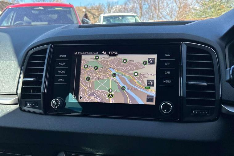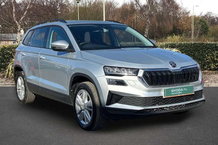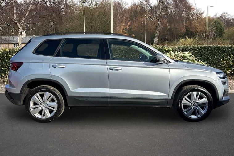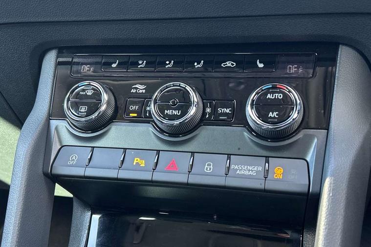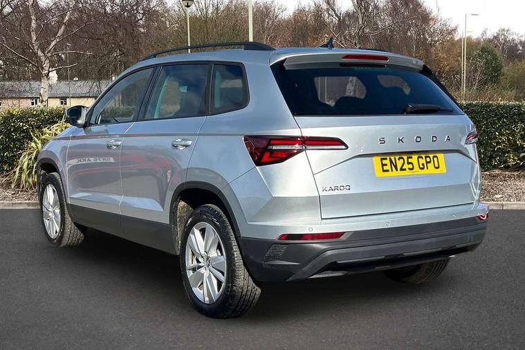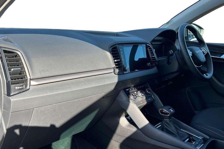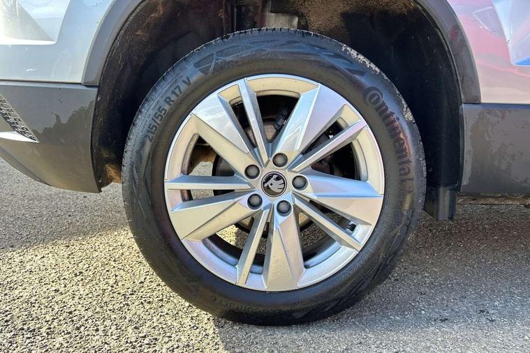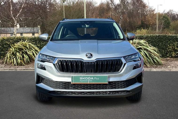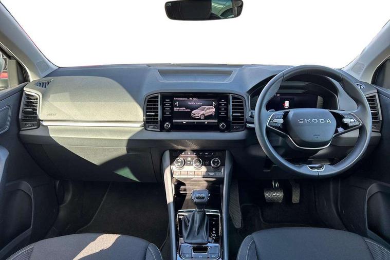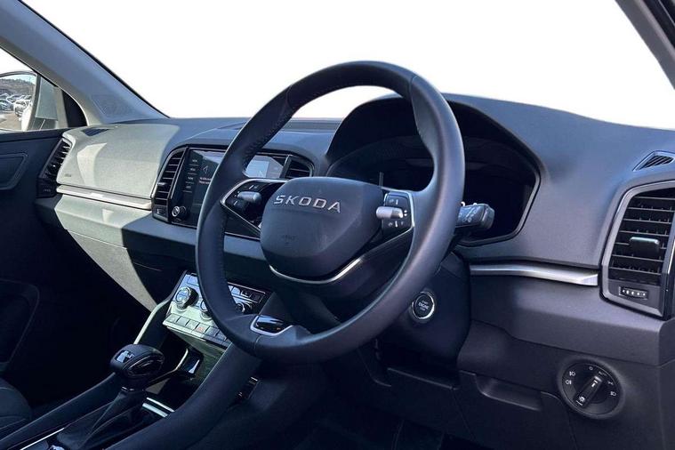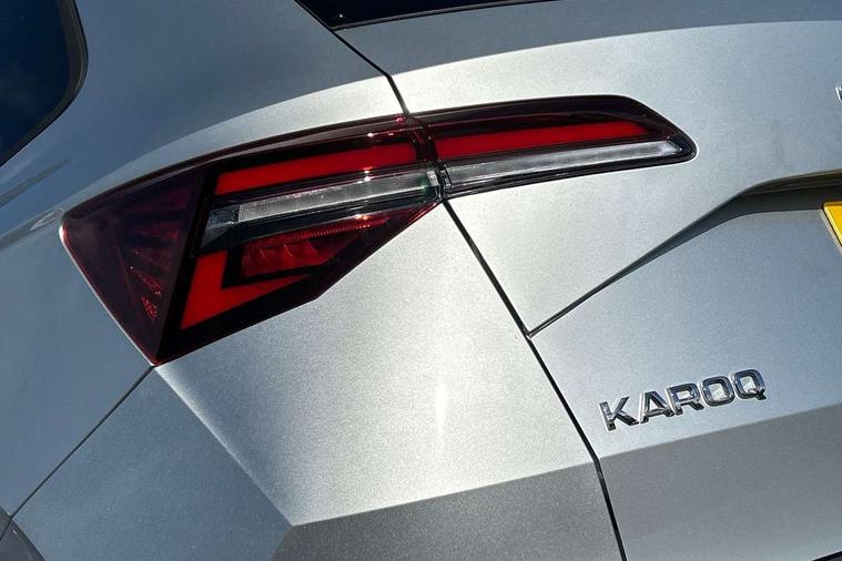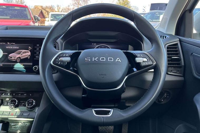Advanced driver attention and drowsiness monitor, Amundsen navigation system with 8" touchscreen display and integrated WLAN and web radio, Electro-mechanical PAS, Emergency services call system, Lane assist, Outside temperature gauge, Sensor for driver assistance systems, Service interval indicator, SmartLink wireless for Apple and wired for Android, Start/stop system with regenerative braking, Traffic sign recognition, USB C Port x 2 in front centre console, Virtual Cockpit - 10.25" digital display, Wireless smartphone charging, 8 Speakers, DAB radio with Bluetooth, USB connection, Acoustic glass, Aero front windscreen wipers with intermittent function, Auto dimming rear view mirror with light and rain sensors, Black electric window control buttons, Body colour door mirrors and handles, Electric front and rear windows with child proof lock, Electrically adjustable heated folding and auto dimming door mirrors, Front fog lights, Headlight range control, Heated rear windscreen, LED daytime running lights, LED Headlights, LED rear lights with high functionality welcome effect and dynamic indicators, Light assistant (coming/leaving home/tunnel light), Plastic scuff plates in door apertures, Privacy glass, Rear side wing doors, Rear window wiper with washer system and intermittent control, Safety reflectors on front doors, Third brake light, Unique dark chrome design logo on alloy wheels, 1.5 litre bottle holders in driver and front passenger door panels, 12V socket in boot, 12v socket in front centre armrest with storage compartment and rear air vents, 2 spoke leather heated multifunction steering wheel with DSG paddles, 2 x Tablet holder, 3 rear height adjustable headrests, 3 seat bench in 2nd row, 4 foldable roof handles with rear coat hooks, Black floor carpet, Cargo elements in boot, Chrome inner door handles, Driver/front passenger reading lights, Foldable hooks in the boot, Folding tables on the front seat backrests, Front head restraints, Height adjustable driver and passenger seat, Height adjustable front three point seats belts with tensioners, Height/reach adjust steering wheel, Ice scraper, Illuminated glovebox, Illuminated luggage compartment, Interior noise suppression, Isofix child seat preparation for front passenger seat, Isofix child seat preparation outer rear, Loft fabric upholstery, Manual lumbar support for front seats, Pearl grey interior ceiling, Pen holder, Pollen filter, Rear boot cover, Rear package tray, Rear reading lights, Rubbish bin door, Safety vest holder, Single front passenger seat, Skoda lettering on steering wheel, Storage box in upper central dashboard closed, Sunvisors with illuminated vanity mirrors, Textile floor mats, Ticket holder, Umbrella under passenger seat, Under passenger seat storage compartment, Non Smokers pack, Parking pack - Karoq, Winter pack with heated front seats - Karoq, Automatic door unlocking in case of crash, Automatic fuel cut off in case of crash, Driver airbag, Electronic parking brake with auto hold function, Emergency rear braking signal, ESC (incl. ABS+MSR+ASR+EDS+HBA+DSR+RBS+MKB), Front assist, Front side airbags, Head airbags, Hill hold control, Knee airbags, Passenger airbag with switch-off function, Pedestrian monitor, Power operated child safety locks, Seatbelt reminder signalisation and pretensioner for all seats, Three point seatbelts rear, Two tone horn, Tyre pressure monitor, Alarm with interior monitoring, back up horn and tilt sensor with safe function, Electronic engine immobiliser, Keyless entry and start/stop, Remote central locking with 2 remote folding keys, Anodized cross door decor, Black centre console, Chrome framed air vents, Satin black dashboard, Satin black door trim, Anti-theft wheel bolts protection, Breakdown and tool kit,