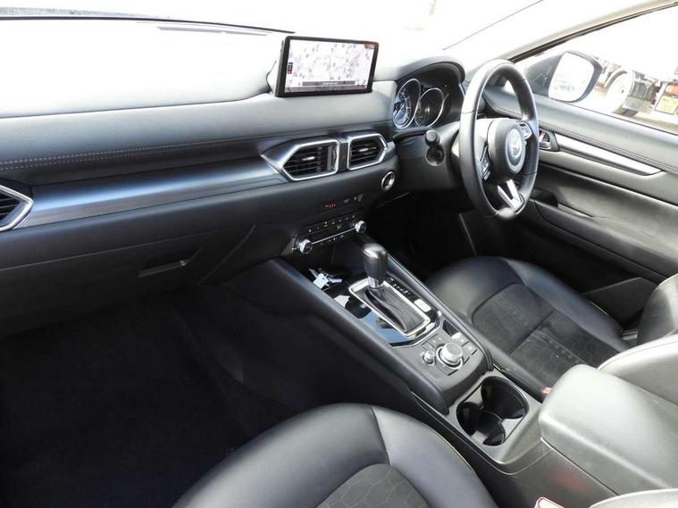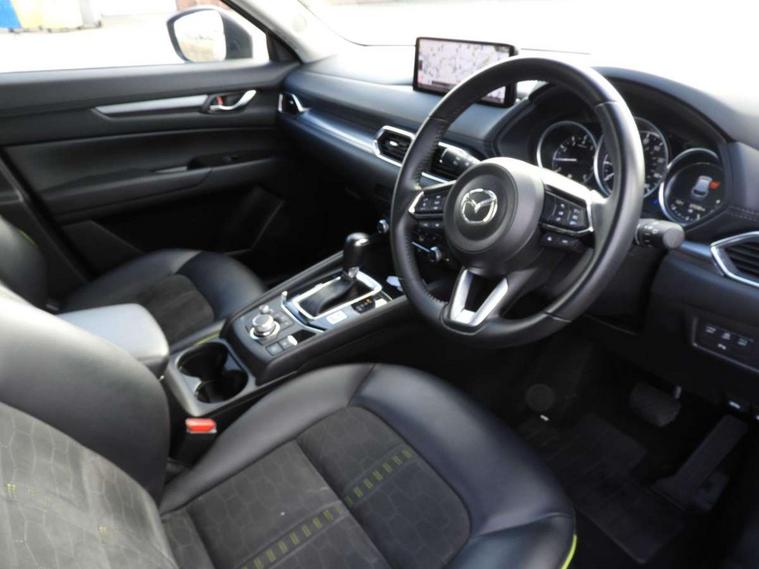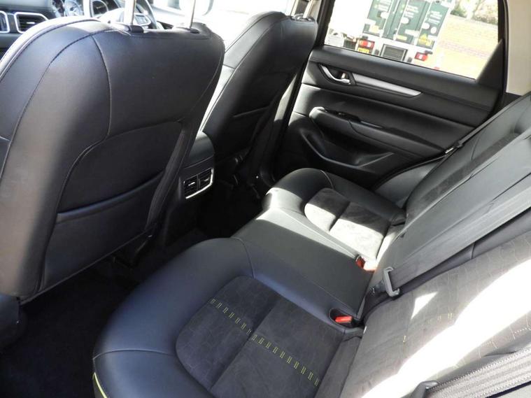 10.25" display with Mazda Connect infotainment, Advanced blind spot monitoring, Apple car play/Android Auto, Bluetooth connectivity with voice control, Collision prevention assist, Connected services, Cruising Traffic Support, Drive mode selector, Electric power steering, Emergency stop signalling system, Engine start/stop button, Forward collision warning, Front and rear parking sensors, High meter TFT display, Integrated navigation system, Intelligent speed assist, Lane departure warning system, Lane keep assist, Radar cruise control with Stop and Go, Service indicator, Trip computer, i-stop, 2 USB sockets in rear, 2x USB sockets in front, 6 speakers, AM/FM radio, Bluetooth audio streaming, DAB Digital radio, Multimedia Commander including separate volume dial, Steering wheel mounted audio controls, Adaptive front lighting system, Auto dimming rear view mirror, Automatic headlights, Black mirror caps, Body colour roof spoiler, Body coloured front and rear black lower bumper mouldings, Bright finish signature wing, Coming/leaving home lighting function, Door mirror integrated indicators, Dual chrome tailpipes, Dusk sensitive headlamps, Electric front/rear windows with one touch auto up/down, Front and rear silver under garnish and side skirt, Front and rear silver under guard and side garnish, Front grille in material black finish, High beam assist, Intermittent rear wash/wipe, LED auto levelling, LED daytime running lights, LED front fog lights, LED Headlights, LED third brake light, Lime green air vent louvre inlay dashboard panel, Lime green front grille accent color, Louver bezel inner lime green accent, Power folding and heated door mirrors, Privacy glass (rear side windows only), Rain sensing front wipers, Rear side wing doors, Satin black B and C pillars, Satin black side mouldings, Scuff plates, Shark fin antenna, Signature LED rear combination lights, Vinyl with lime green door trim panel, 12v electrical power outlet, 3 seat bench in 2nd row, 3 stage heated front seats, 40:20:40 Karakuri fold-flat seat system, 6 way power adjustable driver seat, Driver seat lumbar adjustment, Driver seat power slide, recline and height adjustment, Driver, Front passenger and two rear grab handles with coat hooks, Driver/passenger front seatback pockets, Driver/passenger sunvisors + illuminated vanity mirrors (drivers with ticket holder), Dual zone climate control, Folding centre armrest with 2 cup holders, Front and rear door pockets, Front centre storage with two cupholders, Front passenger seat manual slide, recline and height adjust, Height adjustable passenger seat, Humidity sensor, Illuminated glovebox, Interior dome light with integral spotlight, ISOFIX child seat anchorage points attached on outer rear seats, Karakuri tonneau cover, Leather wrapped steering wheel and gear knob, Leatherette door trim, Leatherette/suede upholstery, Light roof lining, Luggage compartment LED lighting, Luggage compartment power outlet, Rear air vents, Rear headrests, Rear seat recline, Reversible waterproof cargo board, Roof mounted sunglasses holder, Single front passenger seat, Three height adjustable head restraints, Tilt/height adjustable steering wheel, White interior LED illumination lighting, 3 point front seatbelts with pre-tensioners, 3 rear 3 point seatbelts, ABS, Advanced Smart City Brake Support - SCBS, Child locks on rear doors, Driver and front passenger side airbags, DSTC-Dynamic Stability and Traction Control, Dual front airbags, Electronic brake force distribution, Electronic parking brake with auto hold, ESP, Front and rear curtain airbags, Front passenger airbag deactivation, G-Vectoring control, Hill hold assist, Seatbelt reminder front and rear, Single stage passenger airbags, Smart brake support with forward obstruction warning, Tyre pressure monitoring system, Automatic door locking when moving off, Deadlock, Immobiliser, Power door locks, Remote central locking, Thatcham Cat.1 alarm, 19" diamond cut black alloy wheels, Tyre repair kit,