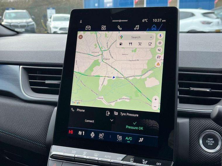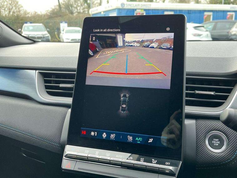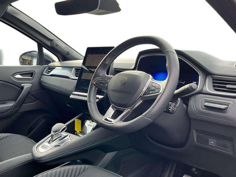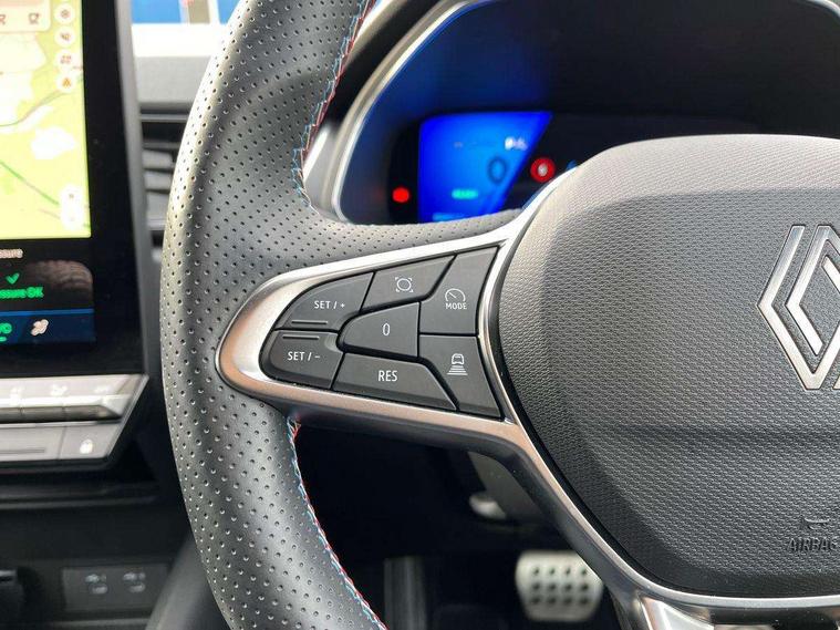 10.25" digital driver display, 10.4" OpenR link touchscreen with with built in Google Automotive Services and navigation, Adaptive cruise control with speed limiter, Blind spot warning and rear detection, Driver attention alert system, Eco mode driving function, Front, rear and side parking sensors, Front/rear detection with emergency lane keep assist incl. solid line, oncoming traffic and road edge detection, Gear change indicator, Lane centering assist, Multi Sense - 3 driving modes and up to 48 ambient lighting colours, My safety shield - ability to personalise ADAS features at press of a button, PAS, Power hands-free tailgate opening, Rear cross traffic/pedestrian alert with rear braking assitance, Rear view camera, Renault automatic emergency assist, Traffic sign recognition with overspeed prevention, Trip computer, Wifi smartphone integration compatible with Apple CarPlay and Android Auto, Wireless phone charger, 2 front and 2 rear USB-C ports, Arkamys speakers - x6 inc. 2 boomer, 2 tweeter and 2 bicone, Brushed blue decorative upper strip, DAB radio with Bluetooth, Automatic headlights, Automatic high / low beam, Automatic windscreen wipers with rain sensor, Dark tinted rear windows and tailgate, Electric adjustable/heated/auto folding door mirrors, Esprit alpine exterior styling, Frameless auto dimming rear view mirror, Front and rear electric windows with driver window one touch facility and anti pitch function, Front matte grey and rear skid plates, Full LED front and rear lights, Gloss black window surround, Heated rear window, LED daytime running lights, LED rear fog lights, LED third brake light, Lower textile strip on dashboard with red, white and blue flag, Radiator grille with 3D graphics in black upper part with grey graphics and body tone lower part, Rear side wing doors, Rear wiper, Shark fin antenna, 2 front roof LED lights and central rear rooflight with 3 reading LED lights, 3 seat bench in 2nd row, Aluminium sports pedals, Automatic air conditioning with one touch quick demist function and air quality regulator, Driver and front passenger seat with electric height adjustment, Esprit alpine interior styling, Flying console with central storage, sliding armrest and 2 rear air vents, Front and rear head restraints, Heated front seats, Heated synthetic leather steering wheel, Height and depth adjustable steering wheel, ISOFIX child seat fixing points on rear outermost seats, Modular boot floor, Rear seats - 1/3:2/3 foldable sliding bench, Recycled fabric upholstery, Single front passenger seat, Sunvisor with mirror and light, 3x3 point rear seatbelts, Abs with emergency brake assist, Active emergency braking system - Urban and pedestrian/cyclist, Distance warning alert, Driver and front passenger and 3 rear passengers seatbelt reminder, Driver and front passenger, side, head and curtain airbags, Driver height adjustable seat belt, Electronic parking brake with auto hold function, Front passenger airbag deactivation, Hill start assist, Occupant safe exit, Rear window and door child locking function, Tyre pressure warning light, Central door locking, Hands free keycard with Keyless access and start, 19" Esprit alpine elixir alloys wheels,