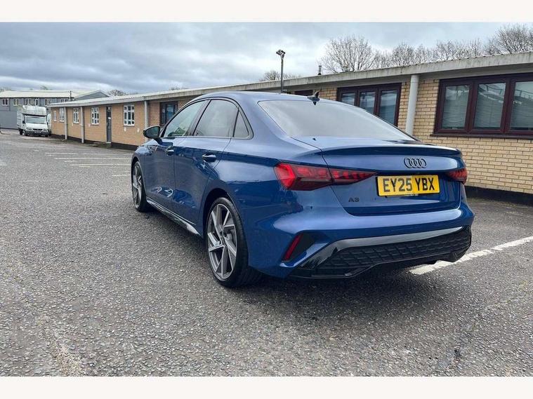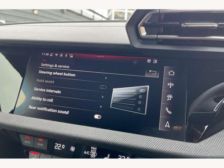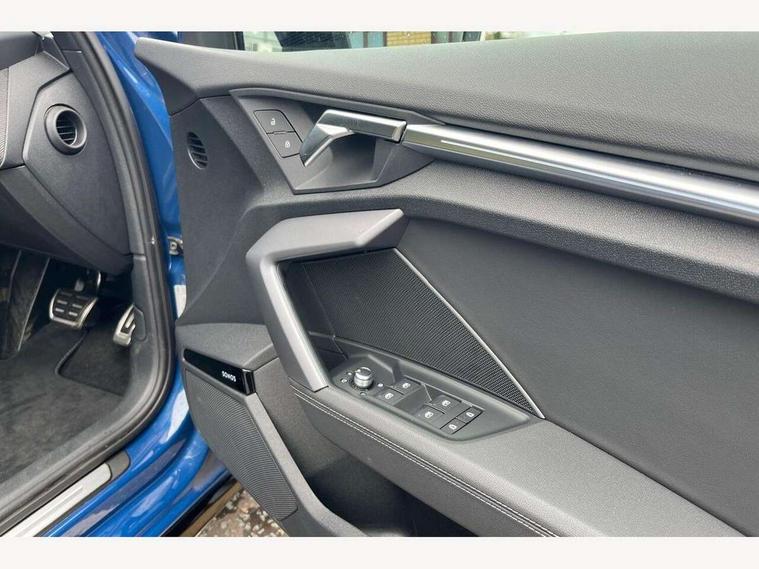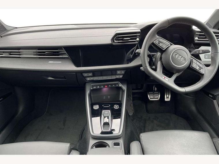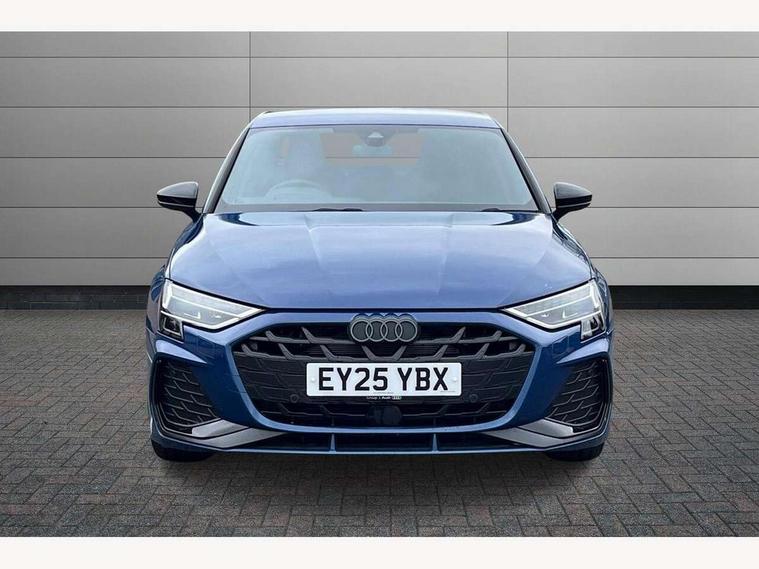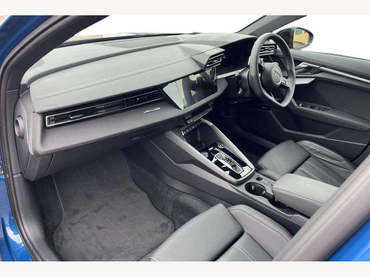 Adjustable speed limiter, Audi drive select, Audi smartphone interface with app store includes wireless Apple carplay, Android auto and Amazon alexa integration, Audi virtual cockpit plus - 12.3" full HD resolution dynamic digital instrument cluster, Automatic start/stop system with recuperation, Bluetooth interface, Camera based traffic sign recognition, Collision avoidance assistant, Cruise control, Distraction and Fatigue warning, e-Call (emergency call), Electromechanical power speed sensitive steering, Lane departure warning system, MMI Navigation Plus with high resolution 10.1" colour touch screen display, Park Assist with parking system Plus, Service indicator, Trip computer, Voice control system with natural language interaction, Sports suspension, Audi Phonebox light with wireless charging, Audi sound system - 10 loudspeakers including centre loudspeaker and subwoofer, DAB Digital radio, USB ports with charging function in the rear, Acoustic glass windscreen, Anthracite grey Audi rings (front and rear), Audi beam uses LEDs to project the Audi logo onto the ground as you exit your A3, Auto dimming frameless rear view mirror, Black accents front and rear bumpers, Black accents in the area of the Audi single frame grille, Black accents window trims strips, Electrically adjustable/heated/folding/auto dimming door mirrors with integrated LED indications + kerb view function for passenger side, Exterior model badging, Front electric windows, Heat insulating glass windscreen, Illuminated door sills with aluminium inserts at the front with S logo, LED 3rd brake light, LED daytime running lights, LED headlights with LED rear lights and dynamic rear indicators, Light and rain sensors, Privacy glass - dark tinted rear window, rear door and side windows, Rear boot, Rear electric windows, Rear side wing doors, 12V socket and storage compartment in front centre console, 3 seat bench in 2nd row, 3 spoke flat bottomed leather multifunction sport steering wheel with gear shift paddles, 3-zone deluxe automatic air conditioning, 4 way electrically adjustable lumbar support for driver and front passenger, 40/20/40 split folding rear seat bench, Black cloth headlining, Front and rear centre armrest in artificial leather, Front and rear centre armrest in artificial leather with contrasting stitching on armrests and instrument panel, Front and rear headrests, Front/rear floor mats, Heated front seats, Height and reach adjustable steering wheel, Manual boot compartment lid, Manually adjustable front seats, Rear cup holders, S badging on the steering wheel, Seat side bolsters, Single front passenger seat, Stainless steel pedals and front footrest in black, Twin leather upholstery with front sports seats S embossed logo, Aluminium interior elements pack - A3, Multi-coloured LED interior lighting package - A3 Black Edition, 3x3 point rear seat belts, Driver and front passenger airbag with passenger airbag deactivation, Electronic Stabilisation Control (ESC) including ABS, ASR and EDL, First aid kit with warning triangle and 2 safety vests, Front side airbags with head airbags and interaction airbag, Hill hold assist, Pre-sense front with pedestrian and cyclist detection, Seatbelt monitoring, Tyre pressure loss indicator, Anti theft alarm, Anti-theft wheel bolts, Electronically operated child locks, Immobiliser, Remote central locking with safelock, Inlays in black Impressum woven textile,
