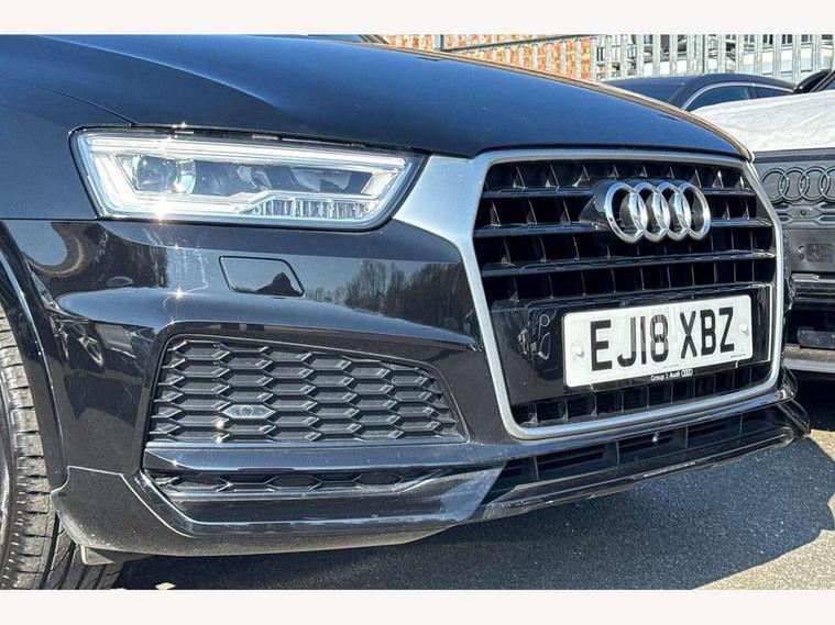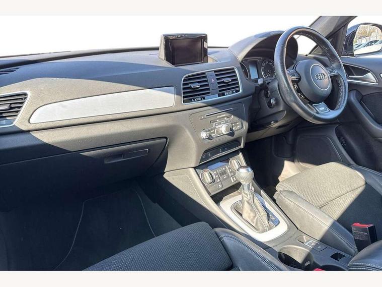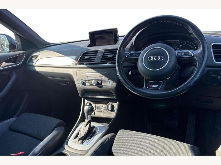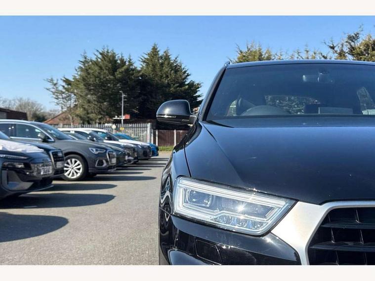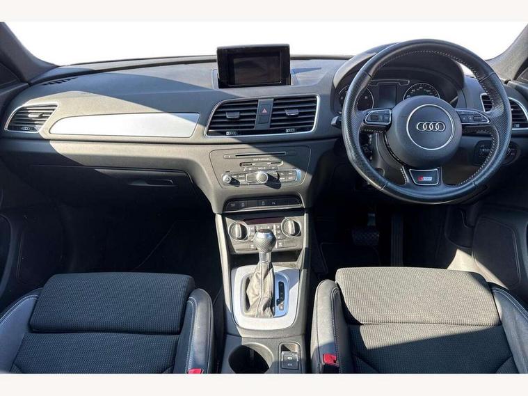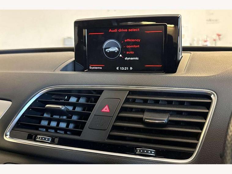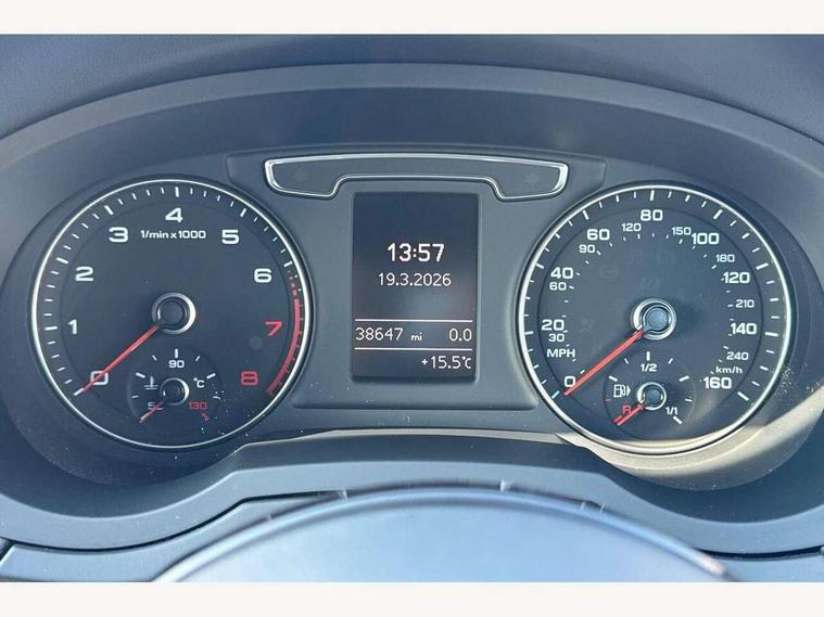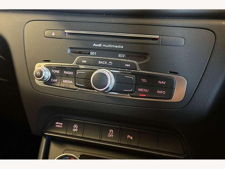 6.5" colour display screen, Audi drive select, Cruise control, Electro-mechanical PAS, Low washer fluid indicator, MMI - Multi Media Interface control system, On board computer, Remote electric boot opening/closing, Service interval indicator, Voice control system, Dynamic suspension, Audi music interface, DAB digital radio module, Acoustic windscreen, Aluminium window surround, Auto dimming rear view mirror, Body colour door mirrors, Body coloured bumpers, Chrome exhaust tailpipe, Coming home function, Door mirror integrated indicators, Front and rear electric windows, Front fog lights, Front lip spoiler, Heated windscreen washer jets, LED daytime running lights, LED headlights with headlight washers, LED rear lights, Light and rain sensor for auto activation of lights and windscreen wipers, Loading sill protector in stainless steel, Rear diffuser with platinum insert, Rear wiper, S Line body styling, Sunband for windscreen, 12V socket in rear centre console, 3 spoke multi-function Q design steering wheel with paddle shift, Aluminium door sill trims, Black cloth headlining, Door sill trim strips, Dual zone climate control, Electric front lumbar adjustment, Front and rear headrests, Front and rear velour floor mats, Front centre armrest with storage compartment and angle adjustment, Front sports seats, Height/reach adjust steering wheel, ISOFIX on front passenger and rear outer seats, Jack and tool kit, Perforated leather gearknob, Retractable luggage cover, Split fold rear seat, Storage compartment and 12V socket, Under floor storage in luggage area, 3x3 point rear seatbelts, ABS+Electronic Brake force Distribution, Curtain airbags, Driver and passenger airbags, Driver and passenger side airbags, EDL + ASR, Electrically operated child locks on rear doors, Electromechanical parking brake, ESP, First aid kit, Front passenger airbag deactivation, Head airbags, Seatbelt warning light, Tyre pressure monitoring system, Warning triangle, Locking wheel bolts, Remote central locking, Thatcham category 1 alarm + immobiliser, Matt brushed aluminium fascia and door trim inlays,