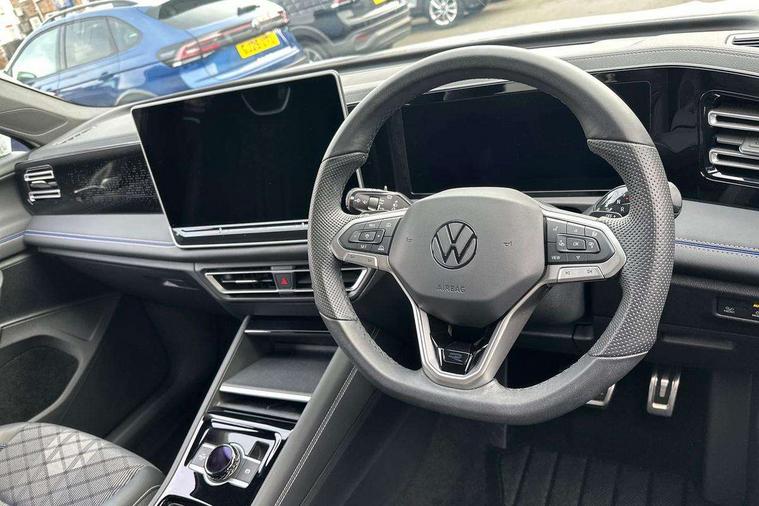 Adaptive cruise control ACC including speed limiter, Advanced driver attention and drowsiness monitor, App-Connect incl. App-Connect Wireless for Apple CarPlay and Android Auto, Area view camera [PAV], Bluetooth phone integration system, Comfort drive travel assist, Digital Cockpit Pro - 10.25" high resolution dash display screen with customisable menus and information, Dynamic road sign display, E-Sim card for online connectivity, eCall emergency call service, eCall emergency call system, Extended safety system (proactive passenger protection system), Full electric tailgate operation, Head up Display, Inductive smartphone charging without external antenna connection, Lane change system, Side assist, Rear traffic alert and Exit warning system, Lane keeping system Lane Assist, Multifunction front facing camera, Navigation system, Oncoming vehicle braking when turning including swerve support, Park assistance plus with front and rear parking sensors, Power assisted steering with speed sensitive, Rear view camera, Rev counter, Service interval indicator, Speed limit display, Start/stop system with regenerative braking, Trip computer, Voice control and enhancer, Warning signal and warning light for front and rear seatbelts not fastened, Wireless App-Connect, Front wheel drive, 15" Infotainment display, 8 speakers, DAB radio, Diversity antenna for FM reception, Ambient lighting with logo projection, Auto dimming interior rear view mirror, Automatic headlight control system, Body colour door handles, Body coloured door mirrors with integrated indicators, Chrome moldings on the side windows, Coming/leaving home lighting function, Dynamic headlight range control with dynamic cornering light, Exterior mirrors power folding, auto-dimming on drivers side with surround lighting and memory feature, Front and rear electric windows, Heat insulating darkened glass in side and rear windows, Heated windscreen washer jets, High Beam Assist, automatic sensing for switching between dipped and main beam, High level 3rd brake light, High-resolution matrix beam plus digital projection, Highway light, Illuminated door handle recesses, Illuminated lightline between headlamps and illuminated door handle recesses, IQ.Light - HD matrix headlamps with poor weather light, entry and exit lighting, Laminated safety glass windshield, heat and sound insulating, LED rear lights with welcome farewell lights with illuminated Volkswagen Logo, LED separate daytime running light, Rear fog light on one side, reversing light on both sides, Rear side wing doors, Rear wiper, Remote electrically foldable door mirrors, puddle lights and reverse activated passenger's door mirror, 12V outlet in center console rear and in luggage compartment, 12V socket in centre console, 2 USB-C ports in the front, 2 USB-C charging sockets on the centre console in rear, charging capacity up to 45 W, 3 bench rear seats in 2nd row, 3 rear headrests, 30 colours options interior ambient lighting, Air Care Climatronic 3 zone automatic climate control with enhanced air filter and controls in the rear, Black roof lining, Brushed stainless steel pedals, Carpet mats, front and rear, Centre console with illuminated storage compartment with sliding cover and two drinks holders, Door and side trim panel with leatherette insert, Door sill protectors, Drivers seat with manual adjustment of seat travel and height and backrest angle with thigh support longitudinally sliding, Front centre armrest, Front integrated head restraints, Front massage seats, Front sports comfort seats, Heated front seats, Heated steering wheel, Height adjustable front seats, ISOFIX anchors for child seats on outer rear seats and front passenger seat. Compatible with i-Size, Leather wrapped multifunction steering wheel with paddle shift, Mechanical rear seat release, Power adjustable lumbar support in front, Rear bench seat asymetrically split folding, longitudinally movable and folding with load-through hatch and center armrest, Single front passenger seat, Sun visors with illuminated vanity mirrors, Variable luggage compartment floor, 3 point seat belt for centre rear seats, 3 Point seat belts in front with pretensioners, 3 point seatbelts in outer rear with ECE label, Autonomous emergency braking front assist with pedestrian and cyclist monitoring, Driver/Front Passenger airbags, Electronic parking brake with auto hold, Front disc brakes, Front passenger airbag deactivation, Impact bar in doors, Manual rear child locks, Rear disc brakes, Two tone horn, Tyre pressure loss indicator, Warning triangle, Anti theft alarm system with interior monitoring, backup horn and towing protection, Anti theft wheel bolts, Central locking system keyless entry, Chrome elements on the mirror switch and power window switches, door pulls interior door handle in matte chrome, Decorative inserts, Tool kit for tyre mobility set,
