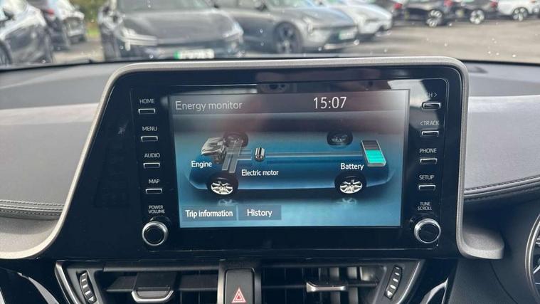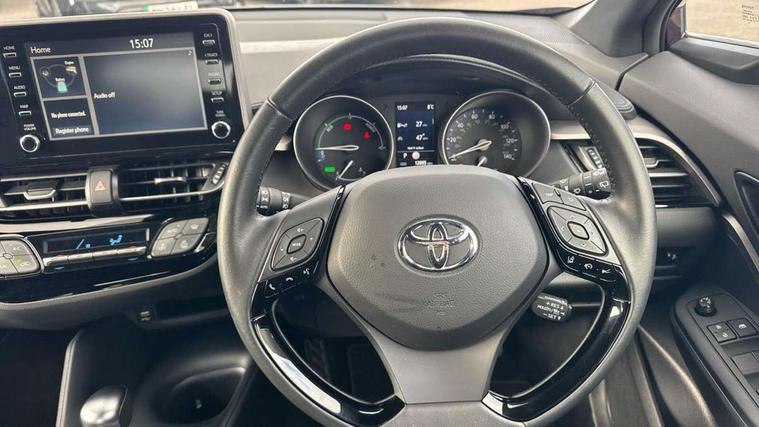 4.2" coloured TFT screen for multi-information display, Adaptive cruise control, Apple car play and Android auto, Bluetooth connectivity, E-call, Electric power steering, Hybrid system indicator, Lane departure alert with steering control, Lane trace assist, Push button start, Push button tailgate release, Remote boot door release in cabin, Remote boot door release in key, Reversing camera, Road sign assist - RSA, Smart voice assist, Trip computer, Voice recognition, Vehicle Stability Control (VSC), 6 speakers, AM/FM radio, DAB Radio (Digital Audio Broadcasting), Toyota touch 2 multimedia system with 8" display, USB connector, Wi-fi connectivity, Anti-jam protection on power windows, Auto high beam, Auto up and down function on all power windows, Automatic headlights, Automatic headlights cut-off, Black and body coloured rear bumper, Black lower front grille, Black upper front grille, Body colour door handles, Body colour door mirrors, Body colour front spoiler lip, Body coloured front bumper, Boot door release with push button, Electric heated door mirrors, Follow me home headlights, Front and rear power windows, Front fog lights, Headlight cut off reminder, Honeycomb lower front grille, LED daytime running lights, LED High mounted stop light, LED rear brake lights, LED rear combination lights, Manual headlight levelling, Manually retractable door mirrors, Noise reduction layer on front windows and windscreen, Power adjustable door mirrors, Rear side wing doors, Rear spoiler, Rear tailgate, Rear window defogger, Rear window wiper, Reflective LED headlights, Shark fin antenna, UV-filter on driver and passenger windows, UV-filter on rear windows, Variable front intermittent wipers, 12v power outlet - front, 3 rear headrests, 3 seat bench in 2nd row, 3 spoke leather steering wheel, 60/40 split folding 2nd row rear seats, Adjustable rear headrests, Adjustable speed limiter switch on steering wheel, Assist grips front and centre pillar, Audio and telephone switches on steering wheel, Black front door assist grips, Boot light, Chrome interior door handles, Cloth upholstery, Driver and front passenger personal light, Driver and front passenger Whiplash Injury Lessening seats, Dual zone automatic air conditioning, Floor mats, Front cupholders, Front head restraints, Front sports seats, Glovebox with internal light, Hard tonneau cover, Hooks for luggage holding net, Humidifying Nanoe air purifier, Illuminated entry system, Isofix attachments on outer rear seats, Leather gearshift, Light on driver sun visor, Light on passenger sun visor, Manual telescopic steering wheel, Manual tilt steering wheel, Manually adjustable lumbar support on driver seat, Manually height adjustable driver seat, Manually height adjustable front passenger seat, Manually reclining driver seat, Manually reclining front passenger seat, Manually sliding driver seat, Manually sliding front passenger seat, Microphone on front personal light, Mirror on driver sun visor, Mirror on passenger sun visor, Multimedia switches on steering wheel, Pollen filter, Shopping bag hooks, Single front passenger seat, Slow opening on lower glovebox, Voice recognition switch on steering wheel, 16 Disk front wheel brake, 3x3 point rear seatbelts, ABS+EBD+Brake assist, Electronic parking brake, Front and rear seatbelt reminder, Front passenger airbag on/off switch, Hill start assist control (HAC), Pre collision system with pedestrian detection, Pre-tensioners and force limiters, Rear door child safety locks, SRS Airbags - Driver + Front passenger, front side, front and rear curtain and driver's knee airbags, Toyota safety sense, Tyre pressure monitoring system, Tyre pressure warning system, Acoustic vehicle alert system (AVAS), Glass-breaking alarm sensors, Immobiliser, Intrusion alarm, Intrusion sensor, Motion sensor alarm, Power door locks, Power passenger window lock, Remote central locking, Black lower dashboard, Black upper dashboard, Grey deco line on upper dashboard, Matte black centre console, Tyre repair kit,