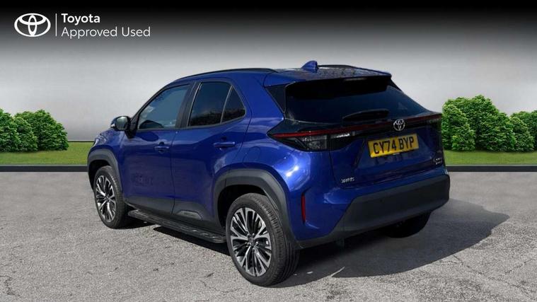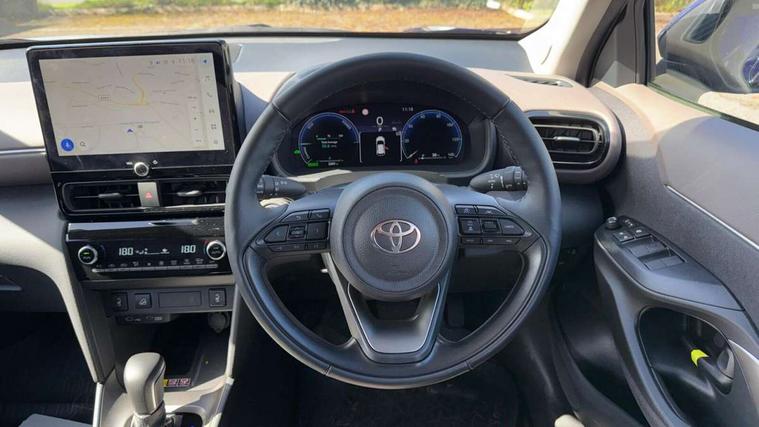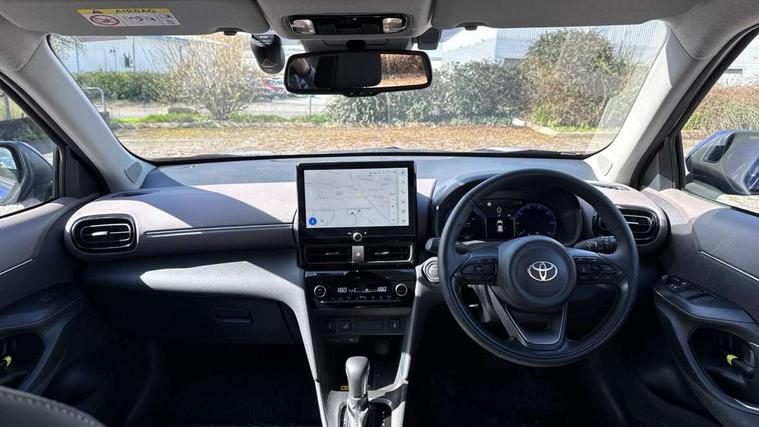 10.5" Multimedia display screen, 10.5" Toyota smart connect+ with navi multimedia system with wireless Smartphone integration incl Apple CarPlay, 360 degree panoramic view monitor, 7" Multi information display screen, Adaptive cruise control, multi info switches on steering wheel, Adjustable speed limiter, Advanced parking assist, Blind spot monitoring, Bluetooth connectivity, Color multi-information display, Digital speedometer, Digital tachometer, Drive mode selector, Driver attention alert system, Dynamic guide lines on reversing camera, eCall emergency system, Electric power steering, Emergency driving stop system, Full range intelligent adaptive cruise control, Hybrid system indicator, Intelligent front and rear parking sensors with clearance sonar and automatic braking, Intersection turn assist, Key reminder warning, Lane change assist, Lane trace assist, My T Connected services, Power tailgate, Pre-collision system enhanced with emergency steering assist, Rear cross traffic alert, Remote boot door release in cabin, Road sign assist - RSA, Safe exit assist, Telephone switch on steering wheel, Wireless Mobile Phone Charger, Rear limited slip differential (LSD) lock, Steering assisted vehicle stability control, 6 speakers, DAB Digital radio, Front USB Type-C connector, Front USB-C device charger, 3rd brake light, Acoustic windscreen glass, Anti-jam protection on power windows, Auto dimming rear view mirror, Auto high beam [AHB] with on/off switch, Auto intermittent windscreen wipers, Automatic headlights, Automatic headlights cut-off, AWD i-Badge, Black door moulding, Black lower front grille, Black protection moulding on side doors, Black roof rails, Black wheel arch mouldings, Body colour door handles, Body colour front bumper, Body colour rear bumper, Electric adjustable heated door mirrors, Follow me home headlights, Front and rear electric windows with auto up/down function, Gloss black upper front grille, Headlight cut off reminder, Indicators integrated on door mirrors, Intermittent rear wiper, Kick activated power back door, LED daytime running lights guide, LED front fog lights, LED front light guide, LED Indicators, LED projector headlights, LED rear lights with sequential indicators, Manual headlight levelling, Meshed shape upper front grille, Noise reduction layer on windscreen, Pre wiring for towing hook, Privacy glass, Rain sensor, Rear side wing doors, Rear spoiler, Rear window defogger, Shark fin antenna, 12v power outlet - front, 12V power point in boot, 2x Rear coat hooks, 3 seat bench in 2nd row, 3 spoke leather steering wheel, 40/60 split deckboard, 40:20:40 split folding rear bench seat, Adjustable rear headrests, Adjustable speed limiter switch on steering wheel, Boot light, Central armrest, Driver and front passenger personal lights, Driver and front passenger Whiplash injury Lesseing seats, Driver and passenger seatback pockets, Dual zone automatic air conditioning, Fabric door trim, Front console box, Front cup holders, Front door pockets, Front head restraints, Front sport seats, Front/rear assist grips, Gear shift indicator, Gloss black surround on gear shift console, Grey roof lining, Heated driver and passenger seats, Heated steering wheel, Height adjustable driver's seat, Height adjustable front passenger seat, Hooks for luggage holding belts, ISOFIX child restraint system, Lane departure alert switch on steering control, Leather gearshift, LED centre room light, Light on driver and passenger sun visor, Manual telescopic and tilting steering wheel, Mirror on driver and passenger sun visor, Nanoe-X air purifier, Partial synthetic leather upholstery, Pollen air filter, Power adjustable lumbar support on driver seat, Rear cup holders, Rear door pockets, Rear head restraints, Remote air-conditioning system, Single compartment glovebox, Single front passenger seat, Soft tonneau cover, Storage box under boot floor, Voice recognition switch on steering wheel, White ambient lighting in centre console, White ambient lighting in footwell, White ambient lighting on front doors, Yaris cross floor mats, Tech pack - Yaris Cross, 3x3 point rear seat belts, ABS+EBD+Brake assist, Downhill Assist Control (DAC), Driver and passenger central airbags, Driver and passenger front airbags, Driver and passenger side airbags, Electronic parking brake, Emergency brake light system (EBS), Front seat belt reminder, Hill start assist control (HAC), Passenger airbag on/off switch, Pre-collision system with pedestrian and cyclist detection, Rear door child safety locks, Rear passenger side airbags, Rear seat belt reminder, Traction control, Tyre pressure warning system, Immobiliser, Intrusion alarm, Keyless smart entry with push button start, Power door locks, Power passenger window lock, Remote door lock, Gloss black side air vent surrounds, Tyre repair kit,
