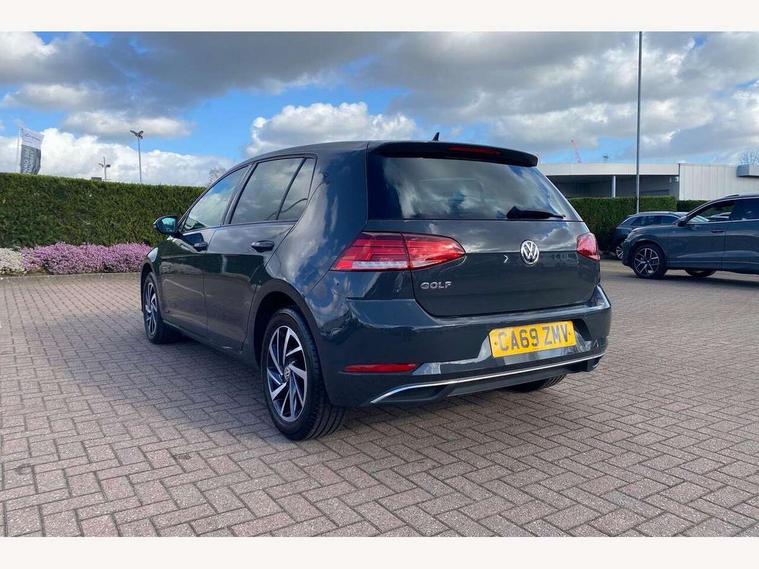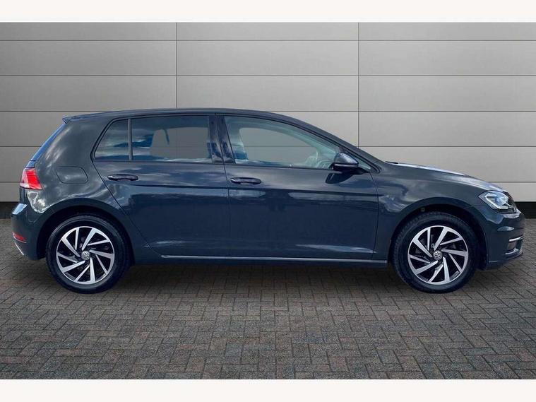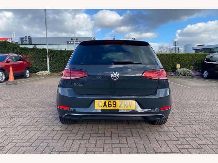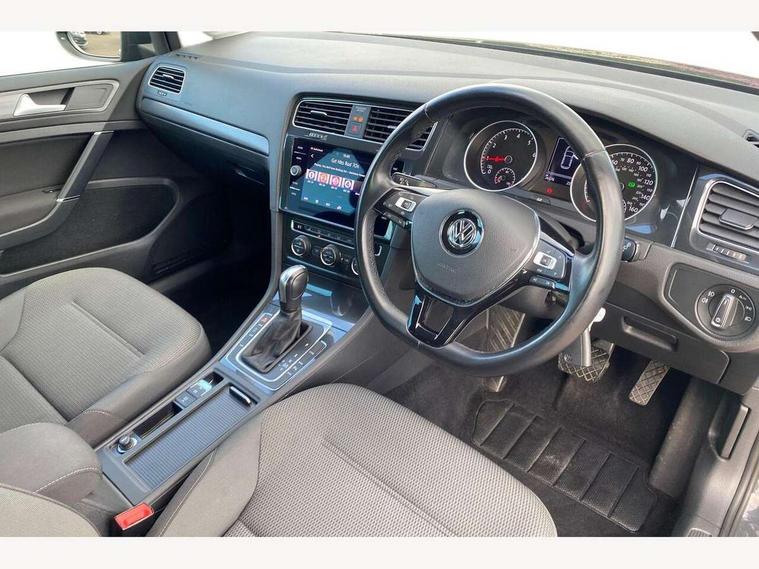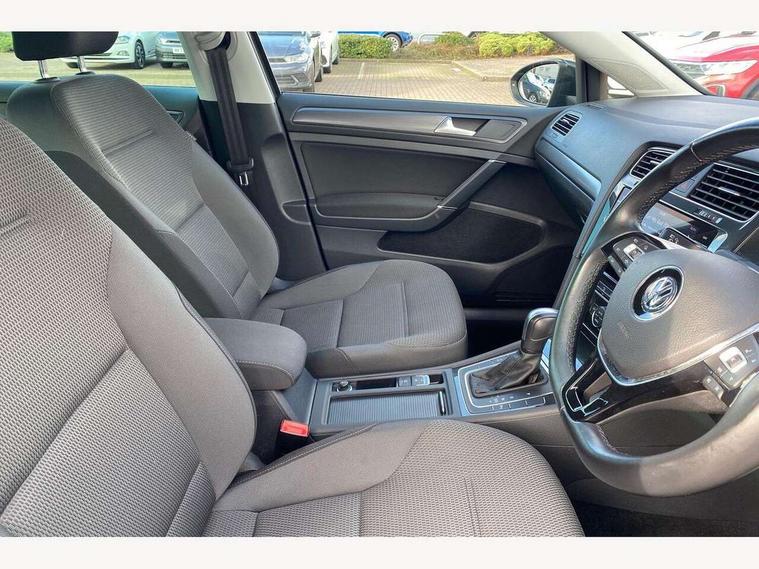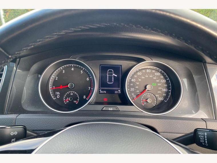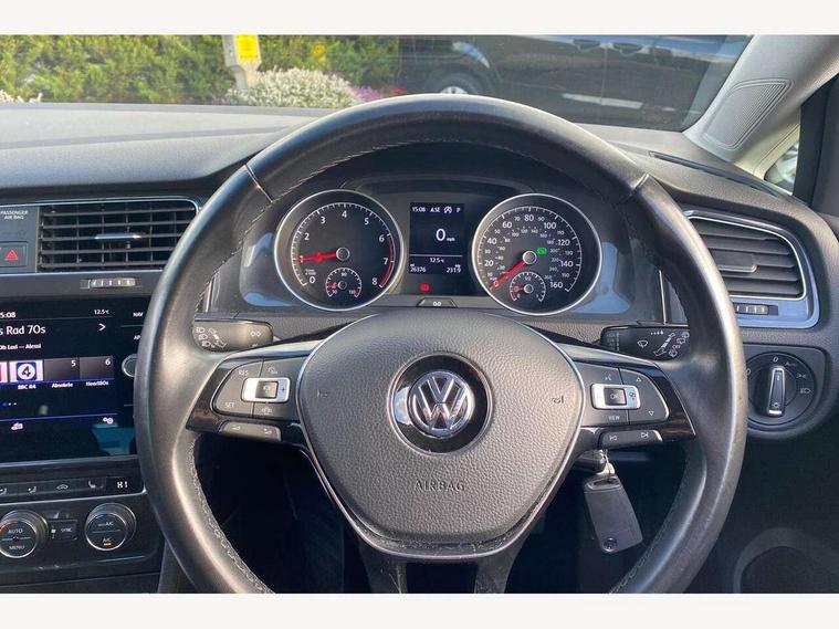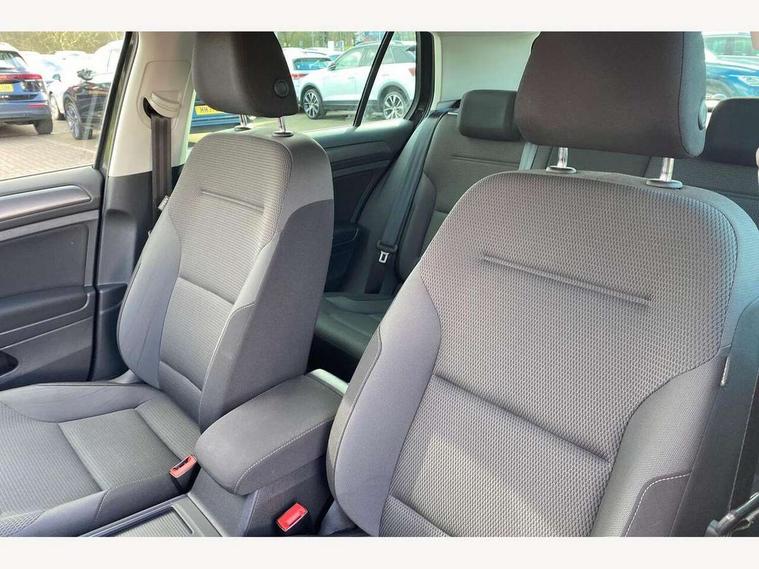 'Lights On' Reminder warning buzzer, ACC - Adaptive cruise control with front assist, forward collision warning, distance monitoring, city emergency brake and speed limiter, Bluetooth telephone and audio connection for compatible devices, Brake pad wear indicator warning light, Driver alert system, Driving Mode Selection with four preset modes - Eco, normal, sport or individual modes, Multifunction computer with visual gear change recommendation for fuel consumption, Power assisted speed sensitive electro-mechanical steering, Push tank flap, Speed limit display, Speedo, rev counter, electronic odometer, trip, service interval display, exterior temperature and fuel gauge, Stop/start system, Think blue trainer driver tips and journey analysis, Warning buzzer and light for front seatbelts unfastened, Battery regeneration during braking, XDS electronic differential lock, Composition media system, DAB Digital radio receiver, Driver Personalisation profile selection, MP3/WMA compatability, Multi device interface (MDI) via USB connection, Premium USB cable in choice of either Apple or Android smartphone compatibility, SMS Functionality, Title and cover art display, USB and SD card connectivity, Volkswagen media control, Black front air intake and radiator grille with chrome insert, Black rear diffuser, Body colour bumpers, Body colour door handles, Body colour door mirrors with integrated indicators, Dusk sensor + automatic driving lights, Electric front windows, Electric rear windows, Electrically adjustable and heated door mirrors, Fully galvanised body, Heated rear windscreen, High level 3rd brake light incorporating LED Technology, LED front fog lights with static cornering light function, Range adjustable headlights via infotainment system with LED daytime running lights, Rear fog lamp, Rear number plate lights incorporating LED technology, Rear tinted glass 65% light absorbing from B pillar backwards, Rear window aerial, Rear window wash/wipe with intermittent wipe, Reflectors in all doors, Tailgate with integrated rear roof spoiler, Windscreen wipers/ intermittent wipe + 4 position delay, 12V socket in luggage compartment, 3 rear headrests, 4 load lashing points in luggage compartment, 60/40 split folding rear seat backrest, Bag hook in luggage compartment x 2, Climate control - 2 zone electronic air conditioning with automatic air recirculation and allergy filter, Cooled glovebox, Cover for storage compartment in centre, Dust/pollen filter, Front and rear reading lights X 2, Front centre armrest with storage compartment and two rear air vents, Front seat back storage pockets, Grab handles front x 2, rear x 2 with integrated coat hooks, Height and reach adjustable steering wheel, Illuminated vanity mirrors, Instrument lighting white adjustable panel illumination, Interior light delay, Isofix preparation for 2 rear child seats, Load through provision with rear centre armrest and cupholders x2, Luggage compartment lighting, Overhead storage box, Pearl grey headlining, Storage box in luggage compartment, Storage compartment in roof console with cover, Storage compartments in centre console, Storage compartments in front doors, Storage compartments in rear doors, Stowable luggage compartment cover, Sun visors, Variable boot floor, height adjustable and removable, Convenience Pack - Golf, Mirror pack - Golf, Winter pack - Golf, 3 rear three point seatbelts, Airbags - Driver's and front passenger's, curtain airbag, Driver's knee, front side impact and passenger's airbag deactivation switch, Anti-lock Braking System (ABS) with Hydraulic Brake Assist (HBA), Automatic post collision braking system, Child locks on rear doors, Driver/Passenger optimised head restraints, Electronic parking brake with auto hold, Electronic stability control (ESC) including Electronic differential lock (EDL) and ASR (Traction control) with deactivation via infotainment system, Front ventilated disc brakes and rear disc brakes, Pre crash preventive occupant protection, Three point height adjustable front seatbelts with tensioners, Tyre pressure loss indicator, Alarm with interior protection and deactivation via infotainment system, Electronic engine immobiliser, Brushed dark silver decorative inserts in dash and door panels, Chrome plated air vent surround, Chrome-plated light switch surround, Polar night black decorative inserts in centre console, Steel space saver spare wheel,