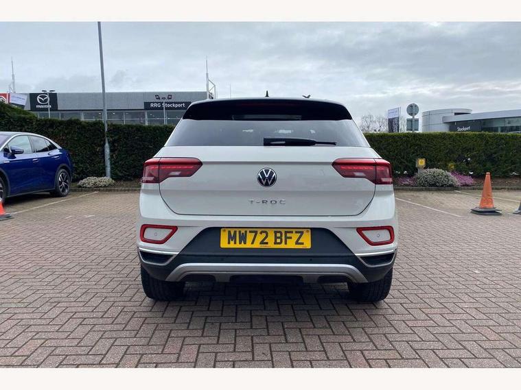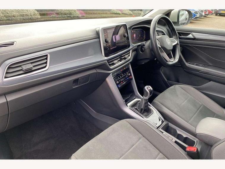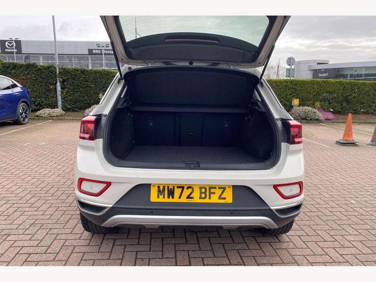 10.25" Digital cockpit pro, Bluetooth mobile phone interface, Driver alert system with fatigue detection, Driver tips and journey analysis, Emergency call service, Lane keeping system Lane Assist, Modified key software - reduce switch off time for key status change to Long no motion, Online services, Park assist including front and rear parking sensors, Service interval indicator, Tailgate/trunk lid release from outside, Think blue trainer driver tips and journey analysis, Warning sound and light for front seatbelts unfastened, Wireless app connect, Battery regeneration during braking, Start/stop function with battery regeneration, Diversity antenna for FM reception, Front and rear 6 speakers, Music playback - MP3, WMA and AAC files, Premium USB cable in choice of either Apple or Android smartphone compatibility, SD card slot, Simultaneous pairing of 2 compatible mobile devices, Title and cover art display, We Connect and We Connect Plus functionality, 3rd brake light, Auto dimming interior rear view mirror, Automatic hazard lights activation under emergency braking, Automatic headlight control with LED separate daytime running lights with coming/leaving home function, Body colour sports bumpers with silver metallic underbody fascia, Dynamic headlight range control with self adjusting whilst driving, Extended roof spoiler, Exterior mirrors aspherical on driver side, convex on front passenger side, External USB type C socket and charging sockets, Front windscreen wiper with intermittent wipe and 4 position delay, Heated rear window, LED Plus headlamps, LED rear combination lamps, LED rear number plate lights, LED tail lamp rear comination lamps, Light mode for poor weather, rain, fog or snow, Power windows with comfort operation and circuit breaker, Rain sensor, Rear exhaust tailpipe, Rear fog light on one side and reversing lights on both sides, Rear side wing doors, Rear wash/wipe with intermittent wipe setting, Remote electrically foldable door mirrors, puddle lights and reverse activated passenger's door mirror, 12V power socket in centre console, 3 rear head restraints, 3 seat bench in 2nd row, 4 load lashing points in luggage compartment, Air care climatronic air conditoning system with active combination filter and 2-zone temperature control, Chrome plated radiator grille inserts, air vent surrounds and light switch surrounds, Door and side trim panel with leatherette insert, Drawer under drivers seat, Front + rear carpet mats, Front centre armrest, Front comfort sports seats, Front cupholders x 2, Front footwell illumination, Instrument lighting, white adjustable panel illumination, Interior ambient lighting and surround lighting, Interior light delay, Isofix child seat preparation, Leather gearshift handle, LED interior light with switch off delay/dimmer and 2 front/rear LED reading lights, Load-through provision with cup holder when folded down ('Unsplit rear seat bench, split folding backrest, with centre armrest), Luggage compartment lighting, Non-folding front passenger seat backrest, Single front passenger seat, Storage compartment in left and right luggage area, Storage compartment in rear doors, Storage compartments in driver and front passenger doors, Sunvisors with illuminated vanity mirrors, Variable boot floor, height adjustable and removable, Driver assistance pack without proactive passenger protection - T-Roc, 3 point height adj front seatbelts + pretensioners, 3 point seatbelts in outer rear with ECE label, ABS, Child locks on rear doors, Driver and front passenger airbag with front passenger airbag deactivation, Driver and front passenger safety-optimised head restraints, Drivers seatbelt reminder, Electronic parking brake, Electronic Stability Control (ESC) inc EDL (Electronic Differential Lock) and ASR (Traction Control), Front and rear passengers curtain airbag system including front side airbags, Front assist with city emergency braking and pedestrian monitoring, Front seat side impact airbags, Predictive pedestrian protection, Rear disc brakes, Single tone horn, Tyre pressure loss indicator, Volkswagen roadside assistance, Alarm with interior protection, Anti-theft alarm system with interior monitoring, backup horn, and towing protection, Remote central locking with SAFELOCK, radio remote control with 2 remote control folding keys, Trims for alloy wheels,