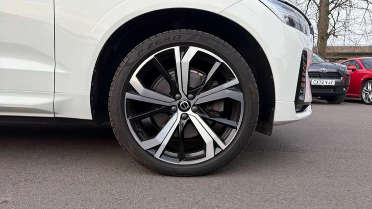 12.3" Active TFT crystal driver's instrument display, 9" centre console touch screen, Adjustable steering wheel force, Bluetooth handsfree system, Drive mode selector, Driver alert control with lane keeping aid, Emergency services call system, Front and rear park assist, Google Automotive Services, Oncoming Lane Mitigation, Service interval indicator, Speed limiter, Speed sensitive steering, Trip computer, Volvo on call with App, Wireless/Inductive Mobile Phone Charging, 8 speed automatic transmission with start/stop + manual change functions, Dynamic chassis, DAB Digital radio, Adaptive brake lights with high level LED brake lights, Auto dimming interior + exterior mirrors, Automatic headlight levelling system, Automatic LED Headlights + Active high beam incorporating daytime running lights, Dark tinted windows for rear side windows and cargo area, Electric adjustable/heated/auto power folding door mirrors, Electric front+rear windows, Front aluminium tread plates, High gloss black door mirrors, High gloss black mesh front grille with high gloss black surround, High gloss black rear bumper deco, High gloss black window frame surround, Home safe and approach lighting, Integrated roof rails in high gloss black, Puddle lights, Rain sensor with automatic windscreen wiper activation, Rear side wing doors, Rear wiper, Roof antenna, Roof spoiler, Tinted windscreen, Visible VIN plate, 12V socket in front tunnel console and luggage compartment, 3 seat bench in 2nd row, 3 spoke tailored sports steering wheel, A-pillar parking ticket holder, B Pillar ventilation, Bright metal luggage threshold, Centre armrest storage illumination, Centre console cupholders and storage, Charcoal headlining, Contour sports seats with nappa leather/textile upholstery, Floor mats, Front and rear door pocket and front cupholder illumination, Front footwell and side step illumination, Front reading lights, Front seat cushion extensions, Head restraints for all seats, Heated front seats, Height/reach adjustable steering column, High gloss black steering wheel remote infotainment controls, Illuminated glovebox, Illuminated luggage compartment, Illuminated vanity mirrors + ticket holder, Load cover, Load protection net, Multi directional lumbar support, Rear armrest with cupholder, Rear footwell and side step illumination, Rear seat concealed storage, Single front passenger seat, Sport leather gear knob, Sport pedals, Tailgate illumination and ambient door lighting, Underfloor stowage compartment, Versatile split folding rear seat - 60/40, 5 three point seatbelts, City safety with steering support with Pedestrian + cyclist + large animal detection + front collision warning with full auto brake, Drivers knee airbag, Dual stage driver/passenger airbags, Electronic parking brake with auto hold, First aid kit, Hill descent control, Hill start assist, IC (Inflatable Curtains) - Full Length, Mechanical child locks on rear doors, Passenger airbag cut-off device, Road sign information display, Run off Road Mitigation, Run off Road Protection, Seatbelt reminder and pretensioners, SIPS (Side Impact Protection System), SIPS airbags, Slippery road and hazard light alert, Stability and Traction Control with Spin control, Engine Drag Control and Corner Traction Control, Tyre pressure monitoring system, Vehicle deceleration control with Anti-lock Brake System, Electronic Brake Distribution and Emergency Brake Assist, Warning triangle, WHIPS whiplash protection system - front, Anti-theft alarm including immobiliser/volume sensor + level sensor, Care key with user defined top speed, Key integrated remote control central locking + fuel flap with deadlocking system and auto open/close power windows, Keyless Drive (includes Keyless Entry and Keyless Start) with Handsfree Tailgate Opening/Closing, Locking wheel nuts, Private locking for tailgate, Metal mesh inlays,