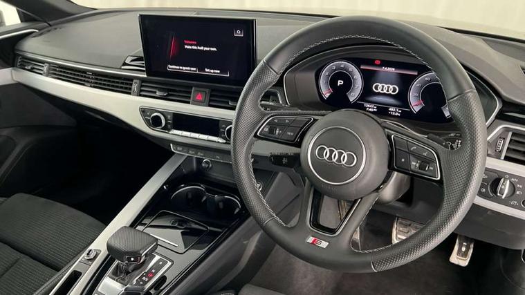 Audi connect safety and service (e-call), Audi drive select (Auto, Comfort, Dynamic and Individual), Audi smartphone interface, Audi virtual cockpit - 12.3" full colour digital instrument cluster, vehicle/engine speed, Radio/media information+Driver assistance systems, Automatic start-stop system with coasting functionality and efficiency programme, Bluetooth interface, Camera based traffic sign recognition, Electro-mechanical power steering, Email, calendar and text messages displayed via MMI, Front and rear parking sensors, Lane departure warning, MMI nav+ with MMI touch - 10.1" high resolution MMI display, touch sensitive, 3D map, route/country info, dynamic route guide, personal route assist, Power operated tailgate, Rear view camera, Service interval indicator, Voice control system, 54 litre fuel tank, Sports suspension lowered by 23mm, 8 passive loudspeakers, CD player, DAB digital radio reception, Two additional USB ports for rear passenger in rear centre console, Two SDXC card slots, Auto dimming door mirrors, Auto dimming rear view mirror, Body colour bumpers, Body colour door handles, Body colour front spoiler lip, Body colour side sill trim, Body coloured door mirrors, Electric adjustable heated door mirrors, Electric folding door mirrors, Electric front windows, Front fog lights, Honeycomb structure radiator grille in grained matt black, Kerb-view function for passenger side, LED headlights and rear lights with LED daytime running lights, LED side indicator lights integrated into door mirrors, LED third brake light, Matt aluminium silver tailpipe trim, Privacy glass, Rain and light sensors, Rear side wing doors, Rear wiper, S line badges on front wings, S line front and rear bumpers with side skirts, S Line rear diffuser in matt anthracite black with trim strip in matt aluminium silver, Side air inlets in grained matt black with matt aluminium silver inlay, Variable front intermittent wipers, Windscreen with acoustic glazing, 3 seat bench in 2nd row, 3 spoke high multifunction leather sport steering wheel with paddle shfit and S badging perforated leather grips, 4 way electric lumbar support for driver and front passenger, 40/20/40 split folding 3 seater rear bench seat, Adjustable steering column, Black cloth headlining, Black perforated leather gearknob, Contrast stitching on seats, steering wheel and gear lever gaiter, Deluxe 3 zone electronic climate control, Front centre armrest, Front head restraints, Front/rear floor mats, Heated front seats, Illuminated door sill trim with S logo, ISOFIX child seat mounting and top tether, Luggage compartment mat, Manual seat adjustment, Rear centre armrest, Rear headrests, Single front passenger seat, Stainless steel pedals and footrest, Sunvisors with vanity mirrors, LED interior light pack - A5/RS5, 3x3 point rear seatbelts, 6 airbags - Driver, front passenger, curtain and side airbags, Attention and drowsiness assist, Electromechanical parking brake, Electronic Stabilisation Control (ESC) including ABS, ASR and EDL, Front passenger airbag deactivation, Height adjustable front seatbelts, Hill hold assist, Manual child lock in rear doors, Multi collision brake assist, Pop-up bonnet for pedestrian protection, Pre sense city, Seatbelt monitoring, Tyre pressure warning, Variable restraint system, Warning triangle and first aid kit, Anti theft alarm system, Anti theft wheel bolts, Immobiliser, Keyless Go, Remote central locking, Matt brushed aluminium inlays, Tool kit, Tyre repair kit,