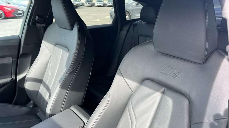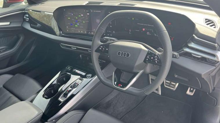 Adaptive cruise control, Advanced driver attention and fatigue montior, Audi application store, Audi assistant, Audi connect emergency call and service, Audi drive select, Audi virtual cockpit plus with 11.9" OLED colour display, Automatic start/stop system with coasting functionality, Camera based traffic sign recognition, Intersection assist, Lane departure warning, MMI navigation plus with high resolution 14.5" OLED touchscreen colour display, Park assist plus, Parking system plus with 360 display, Progressive steering with servotronic, Rear view camera, Smartphone interface, Swerve assist and turn assist, Traffic sign based speed limiter, Sports suspension lowered by 20mm, 2 USB-C ports in both the front and rear, Audi sound system impressive sound with 8 loudspeakers including centre speaker and subwoofer, 6-channel amplifier with a total output of 180 watts, DAB digital radio reception, Smartphone compartment with wireless charging, Aluminium roof rails, Aluminium window trims, Auto dimming rear view mirror, Body colour door mirrors, Door mirrors - electrically adjustable, heated, folding and auto dimming on both sides, Front and rear electric windows, Front door sill trims with aluminium inlays, illuminated with 'S' logo, High beam assist, LED headlights Plus incl. digital daytime running lights, turning light, all-weather light, motorway light, manouevring light and intersection light, LED rear lights pro incl. dynamic rear indicators and illuminated light strip with animated coming and leaving home function, LED third brake light, Privacy glass, Rear and side windows with heat insulating glass, Rear side wing doors, Rear wash/wipe, S Line badges on the front wings, S line bumpers, radiator grille and diffuser in phantom black and diffuser insert in matt anthracite, White rhombus logo projection light in exterior mirrors, Windscreen with acoustic glazing, 3 rear headrests, 3 seat rear bench, 3 spoke leather steering wheel with multi-function buttons with touch control, flattened on top and bottom, with S badging and contrast stitching, 3-zone automatic climate control, 40:20:40 split folding rear seat bench with centre armrest and cup holders, Comfort front centre armrest, Front and rear floor mats, Front seats with manual adjustment for position and 4-way electric lumbar support, Front sport seats with integrated headrest and S embossed logo, Headlining in black cloth, Heated front seats, i-Size child seat mounting on the front passenger side and outer rear seats, i-Size and top tether on the outer rear seats, Luggage compartment lid, electrically opening and closing, Manual steering column height and depth adjustment, Single front passenger seat, Stainless steel pedals and footrest, Steering wheel grips in perforated leather and shift paddles, Ambient lighting package plus - A5, 3x3 point rear seat belts, Driver airbag, Electric child safety locks, First aid kit with warning triangle and vests, Front emergency brake assist, Front passenger airbag, Front passenger airbag deactivation, Front side airbags with head airbag system and front interaction airbag, Hill hold assist, Seat belt monitoring with rear seat occupant reminder, Tyre pressure loss indicator, Anti theft alarm, Anti-theft wheel bolts, Keyless Go, Accent surfaces and control buttons in gloss black, Black dashboard with contrast stitching, Inlays in matt brushed aluminium with linear embossing, anthracite, Softwrap in leatherette with contrast stitching, Upper and lower interior elements in leatherette, Tyre repair kit,