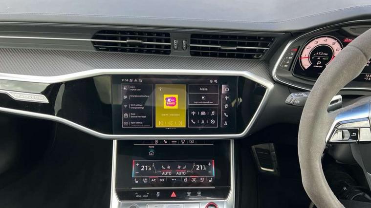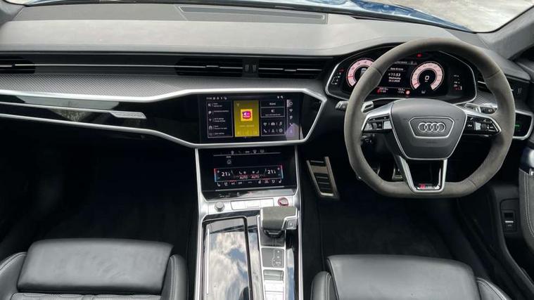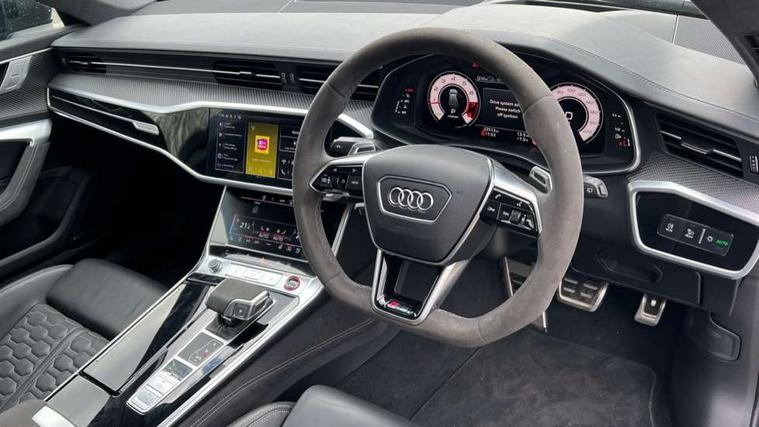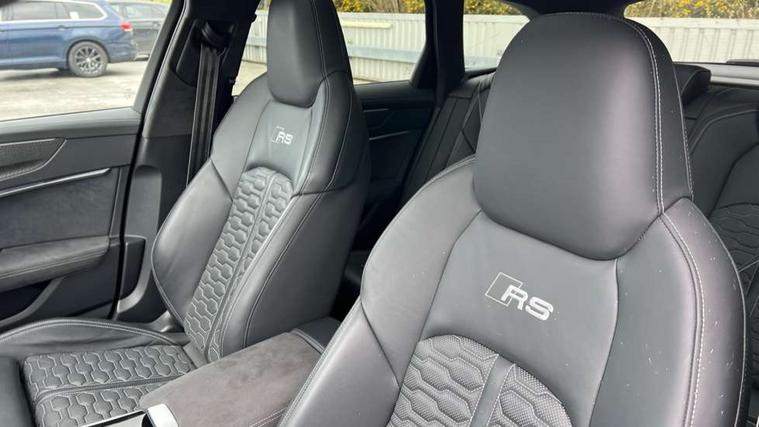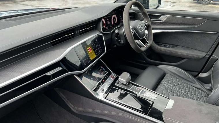 Audi connect safety and service (e-call), Audi connect with Amazon Alexa Integration, Audi drive select with 2 configurable RS modes, Audi smartphone interface with app store includes wireless Apple carplay, Android auto and Amazon alexa integration, Audi virtual cockpit plus with RS specific design and 12.3" display with additional graphic display options, Automatic start/stop system, Bluetooth interface, Dynamic all wheel steering, Head up Display, Lane departure warning system, MMI navigation with MMI touch + twin touch screens 10.1" and 8.6" with haptic and acoustic feedback, Night vision assistant, Operating buttons in black, glass look with haptic feedback including extended aluminium look, Power door closure, Power operated tailgate, Service interval indicator, Surround view camera system, Voice control system, 48V Mild hybrid technology, 73 litre fuel tank, Increased top speed to 174mph, Quattro sports differential, RS Sports suspension plus with dynamic ride control, 2 USB-C ports with charging functionality in the rear, Audi music interface, Bang & Olufsen 3D Premium Sound System, DAB Digital radio, 3rd brake light, Adaptive windscreen wipers with integrated washer jets, Black window trims, Electric front/rear windows, Electrically adjustable, heated and folding door mirrors with integrated LED indicators and kerb view function for passenger side, Frameless auto dimming interior rear view mirror, HD Matrix LED headlights with Audi laser light with dynamic light design and dynamic turn signal, Headlight washers, Heat insulating darkened glass in side and rear windows, LED daytime running lights, LED rear combination lamps with dynamic light design and dynamic turn signal, Panoramic glass sunroof, Privacy glass with rear/side windows and acoustic glazing side windows, Radiator grille in honeycomb structure, large front air inlets and rear diffuser in gloss black, Rain and light sensors, Rear side wing doors, Rear wiper, RS front bumper with air inlets on both side, RS rear spoiler in body colour, RS sports exhaust system with high gloss black oval tailpipe trims, Without tow bar preparation, 3 seat bench in 2nd row, 4 way electric lumbar support for driver and front passenger, 4 zone deluxe automatic climate control, Audi phone box light, Electric steering wheel adjustment, Electrically adjustable front seats with driver memory, Entry LED with RS Performance projection (Audi Beam) in front and rear, Front and rear headrests, Front centre armrest, Front seat ventilation, Heated front and rear seats, Illuminated front and rear door sill trims with aluminium inlays and RS6 logo, ISOFIX and Top Tether child seat mounting for the outer rear seats, ISOFIX child seat mounting and Top Tether with front passenger airbag deactivation, RS sports seat plus, Single passenger seat, Stainless steel pedals and foot rest, Air quality pack - RS6, Ambient lighting pack plus - RS6, City assist pack - RS6 Performance/carbon/vorsprung, Park assist pack with park assist plus - RS6, Storage pack - RS6, Tour pack - RS6 Performance/carbon/vorsprung, 3 point rear seatbelts, Direct tyre pressure monitoring system, EBD - Electronic brakeforce distribution, Electromechanical parking brake, Electronic Stability Control (ESC) including ABS, ASR and EDL, Extended pedestrian protection measures, Manual child lock in rear doors, Side airbags, front and rear including head airbag system and illuminated belt buckles, Warning triangle and first aid kit, Anti theft alarm with tow away protection, Immobiliser, Keyless Go, Performance tyres, Tyre repair kit,