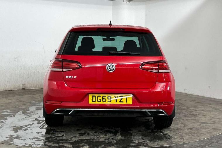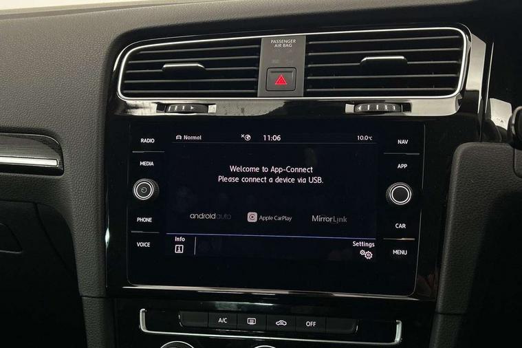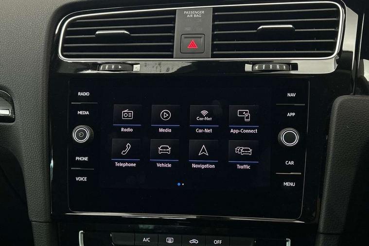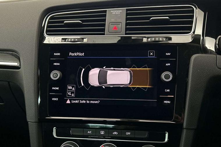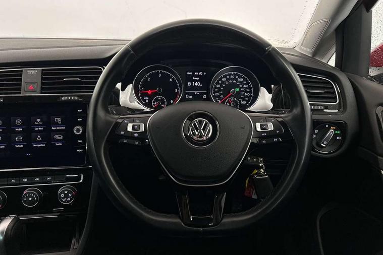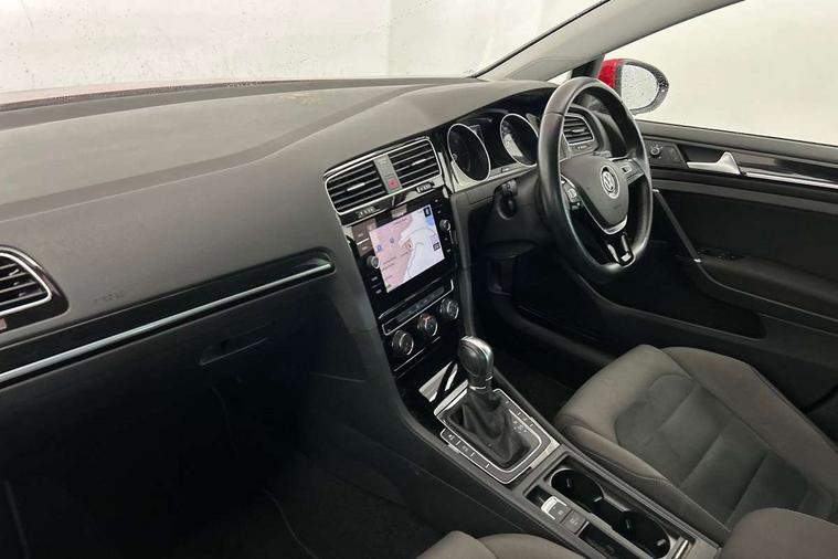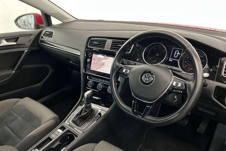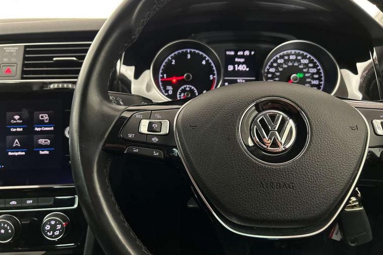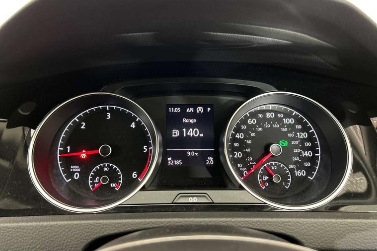 'Lights On' Reminder warning buzzer, ACC - Adaptive cruise control with front assist, forward collision warning, distance monitoring, city emergency brake and speed limiter, Bluetooth telephone and audio connection for compatible devices, Brake pad wear indicator warning light, Driver alert system, Driving Mode Selection with four preset modes - Eco, normal, sport or individual modes, Instrument cluster in white, Misfuelling protection device, Multifunction computer with visual gear change recommendation for fuel consumption, Power assisted speed sensitive electro-mechanical steering, Push tank flap, Speed limit display, Speedo, rev counter, electronic odometer, trip, service interval display, exterior temperature and fuel gauge, Stop/start system, Think blue trainer driver tips and journey analysis, Warning buzzer and light for front seatbelts unfastened, Battery regeneration during braking, Diesel particulate filter, XDS electronic differential lock, Composition media system, DAB Digital radio receiver, Driver Personalisation profile selection, MP3/WMA compatability, Multi device interface (MDI) with USB connection, Premium USB cable in choice of either Apple or Android smartphone compatibility, SMS Functionality, USB and SD card connectivity, Volkswagen media control, Auto dimming rear view mirror, Black front air intake and radiator grille with chrome insert, Black rear diffuser, Body colour bumpers, Body colour door handles, Body colour door mirrors with integrated indicators, Chrome trimmed front air intake surrounds, Dusk sensor + automatic driving lights, Electric front windows, Electric rear windows, Electrically adjustable and heated door mirrors, Fully galvanised body, Heated rear windscreen, Hidden exhaust pipe, High level 3rd brake light incorporating LED Technology, LED front fog lights with static cornering light function, Range adjustable headlights via infotainment system with LED daytime running lights, Rear fog lamp, Rear number plate lights incorporating LED technology, Rear tinted glass 65% light absorbing from B pillar backwards, Rear window aerial, Rear window wash/wipe with intermittent wipe, Reflectors in all doors, Remote electrically foldable door mirrors, door mirror puddle lights and reverse activated kerb-view adjustment on passengers door mirror, Tailgate with integrated rear roof spoiler, Windscreen wipers/ intermittent wipe + 4 position delay, 12V socket in luggage compartment, 3 rear headrests, 4 load lashing points in luggage compartment, 60/40 split folding rear seat backrest, Bag hook in luggage compartment x 2, Black decorative sleeve on gear handles, Cooled glovebox, Cover for storage compartment in centre, Dust/pollen filter, Front + rear carpet mats, Front centre armrest with storage compartment and two rear air vents, Front seat back storage pockets, Grab handles front x 2, rear x 2 with integrated coat hooks, Height and reach adjustable steering wheel, Illuminated vanity mirrors, Instrument lighting white adjustable panel illumination, Interior light delay, Isofix preparation for 2 rear child seats, Load through provision with rear centre armrest and cupholders x2, Luggage compartment lighting, Overhead storage box, Pearl grey headlining, Storage box in luggage compartment, Storage compartment in roof console with cover, Storage compartments in front doors, Storage compartments in rear doors, Stowable luggage compartment cover, Sun visors, Variable boot floor, height adjustable and removable, Ambient lighting pack - Golf, Convenience Pack - Golf, Light and Sight pack - Golf, Mirror pack - Golf, 3 rear three point seatbelts, Airbags - Driver's and front passenger's, curtain airbag, Driver's knee, front side impact and passenger's airbag deactivation switch, Anti-lock Braking System (ABS) with Hydraulic Brake Assist (HBA), Automatic post collision braking system, Child locks on rear doors, Driver/Passenger optimised head restraints, Electronic parking brake with auto hold, Electronic stability control (ESC) including Electronic differential lock (EDL) and ASR (Traction control) with deactivation via infotainment system, Front ventilated disc brakes and rear disc brakes, Pre crash preventive occupant protection, Three point height adjustable front seatbelts with tensioners, Tyre pressure loss indicator, Alarm with interior protection and deactivation via infotainment system, Electronic engine immobiliser, Chrome plated air vent surround, Chrome plated electric mirror adjustment switch surround, Chrome plated electric window button surround, Chrome-plated light switch surround, Piano black decorative inserts in centre console, Tumbler decorative inserts, Steel space saver spare wheel,