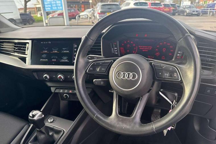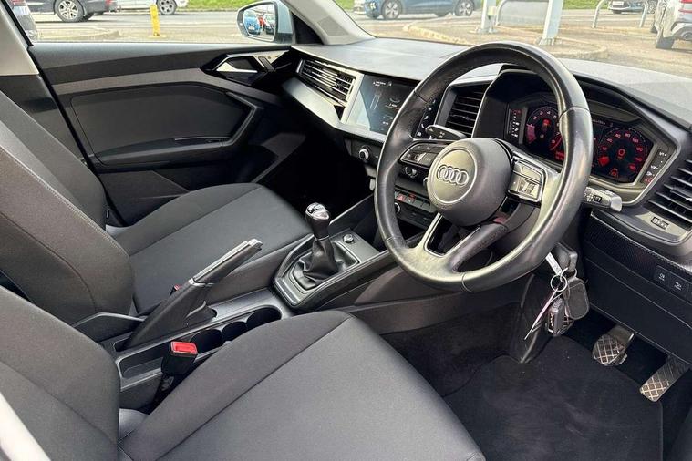 10.25" Digital instrument cluster display classis style instrument dials + speed, odometer, time, outside temperature, telephone menu + fuel level warning, Audi smartphone interface with connect compatible smartphone via USB directly MMI display + Nav, music, third party apps controlled via MMI controller, Automatic start/stop system, Bluetooth interface, Driver's information system, Electromechanical power steering, Emergency e-call, Emergency services call system, Lane departure warning system, Service interval indicator, Speed limiter, Voice control system, Washer fluid level indicator, Dynamic suspension, 1 x SDXC card reader, 2 x USB type C connection points, 6 passive loudspeakers, DAB Digital radio, MMI radio plus with 8.8" colour MMI display screen and MMI touch, Auto dimming rear view mirror, Body coloured bumpers, Body coloured door mirrors, Electric front and rear windows, Electrically adjustable, heated, folding door mirrors with integrated LED side indicator, Front side air inlets with front spoiler lip and rear diffuser in matt black grained, Heat insulating glass windscreen and side windows, Heated rear windscreen, High level LED brake light, LED headlights with LED rear lights + dynamic rear indicators + headlight adjustment and high beam, turning light + LED daytime running lights, Radiator grille in matt black, Rain and light sensors, Rear fog lights, Rear side wing doors, Rear wing door, Rear wiper, 12V socket in centre console with two cup holders, 3 rear seats with headrests, 3 seat bench in 2nd row, 3 spoke leather multifunction plus steering wheel, 40:60 Split folding rear seat or folded fully, Air vents, door handle recesses and centre console in black, Delta cloth upholstery, Driver and passenger seat with manual height adjust with forward and backwards adjustment, Front head restraints, Front passenger seat, Front/rear floor mats, Height and reach adjustable steering wheel, ISOFIX child seat mounting for front passenger and outer rear seats including top tether attachment point of outer rear seats, Leather gear knob with aluminium trim, Leatherette handbrake grip, Luggage compartment light with front and rear reading lights, Manual air conditioning, Titanium grey cloth headlining, Luggage compartment pack - A1, 3x3 point rear seatbelts, Audi pre-sense front with pedestrain and cyclist recognition, Brake assist function, Driver and front passenger airbag with front side and head airbags, Electronic Stability Control including ABS, EBD, ASR and EDL, Front passenger airbag deactivation switch, Hill hold assist, Manual rear child locks, Seatbelt height adjustment for front seats, Seatbelt monitoring, Tyre pressure warning light, Warning triangle and first aid kit, Anti theft alarm, Anti theft wheel bolts and loose wheel warning, Immobiliser, Remote central locking with 2 foldaway keys, Black inlays polygon structure, 15" 5 arm design alloy wheels,