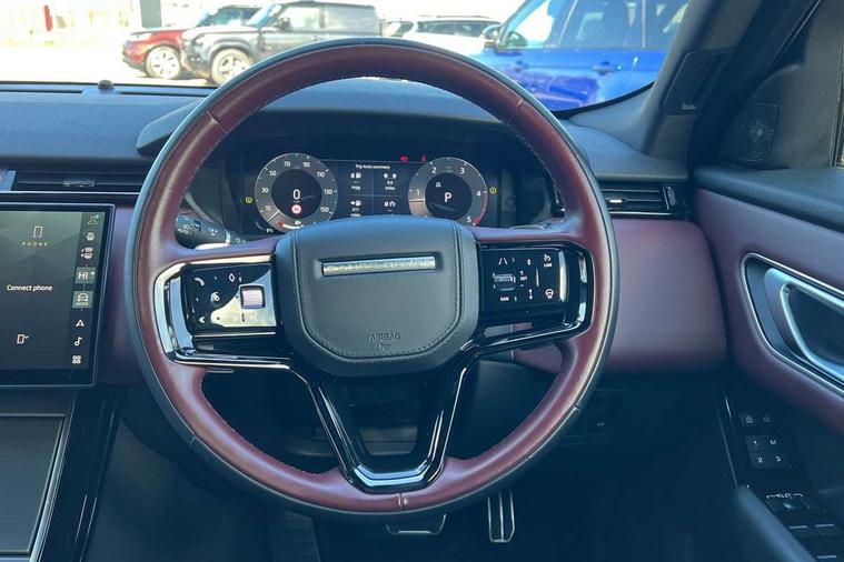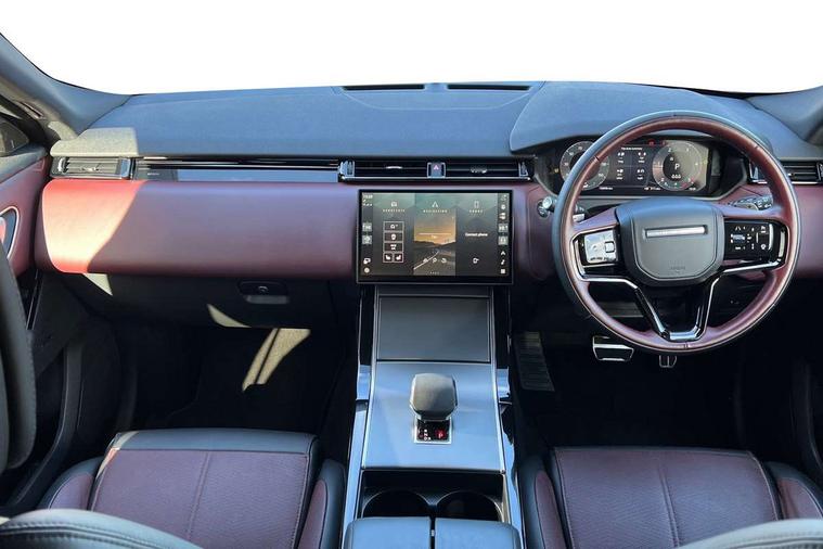Adaptive cruise control with steering assist, Android Auto, Apple CarPlay, Blind spot assist, Bluetooth connectivity, Brake pad wear indicator warning light, Driver condition monitor, eCall emergency call system, Front and rear parking aid, InControl remote, Land Rover InControl apps, Lane keep assist, Pivi pro with connected navigation, Rear collision monitor, Rear traffic monitor, Service indicator, Speed proportional electronic power assisted steering (EPAS), Traffic sign recognition with adaptive speed limiter, Trip computer, Voice control system, 8 speed automatic transmission, Adaptive dynamics, All terrain progress control, Open differential with torque vectoring by braking, Single speed transfer box, DAB radio, Steering wheel mounted controls, 3rd brake light, Acoustic laminated windscreen, Auto dimming interior rear view mirror, Automatic headlamp levelling, Automatic headlights, Black roof rails, Body coloured bumpers, Boot protection plate, Electric windows with one touch open/close and anti trap, Flush deployable exterior door handles, Follow me home headlights, Heated rear window with timer, Heated washer jets, Metal front tread plates, Metal load space scuff plates, Pixel LED headlights with signature DRL, Power fold, auto-dimming, heated door mirrors with memory and approach lights, Rain sensor windscreen wipers, Rear animated directional indicators, Rear fog lights, Rear side wing doors, Rear wash/wipe, Tailgate/boot lid spoiler, Trailer stability assist, Velar badge, 3 seat bench in 2nd row, Ambient lighting, Bright metal pedals, Carpet mats, Driver/passenger sunvisors with illuminated vanity mirrors, Ebony morzine headlining, Electrically adjustable steering column, Heated steering wheel, Isofix system on outer rear seats, Loadspace cover, Overhead lighting console, Overhead stowage for sunglasses, Passive front headrests, Rear air vents, Rear centre headrest, Single front passenger seat, Twin front cupholders, Twin sliding front centre armrest, Online pack with data plan - Velar, Power socket pack 2 - Velar, 355mm Front and 325mm Rear brakes, 3x3 point rear seatbelts, Anti-lock braking system (ABS), Cornering brake control, Curtain airbags, Customer configurable autolock, Door side intrusion beams, Driver airbag, DSC - Dynamic Stability Control, Electronic brake force distribution, Electronic parking brake, Electronic traction control, Emergency braking, Front and rear seatbelt reminder, Hill descent control, Hill launch assist, Low traction launch, Passenger airbag, Power operated child locks, Rear airbags, Roll stability control, Side airbags, Tyre pressure monitoring system (TPMS), Global lock and unlock switch on driver door, Immobiliser, Intrusion sensor, Keyless entry, Lock only switch on front passenger door, Locking wheel nuts, Perimetric alarm, Remote central locking,