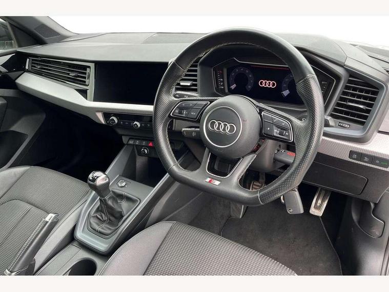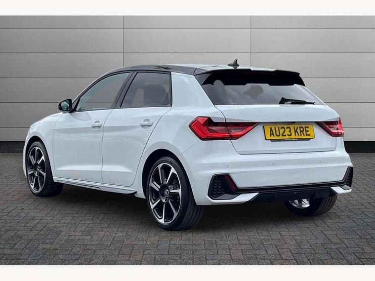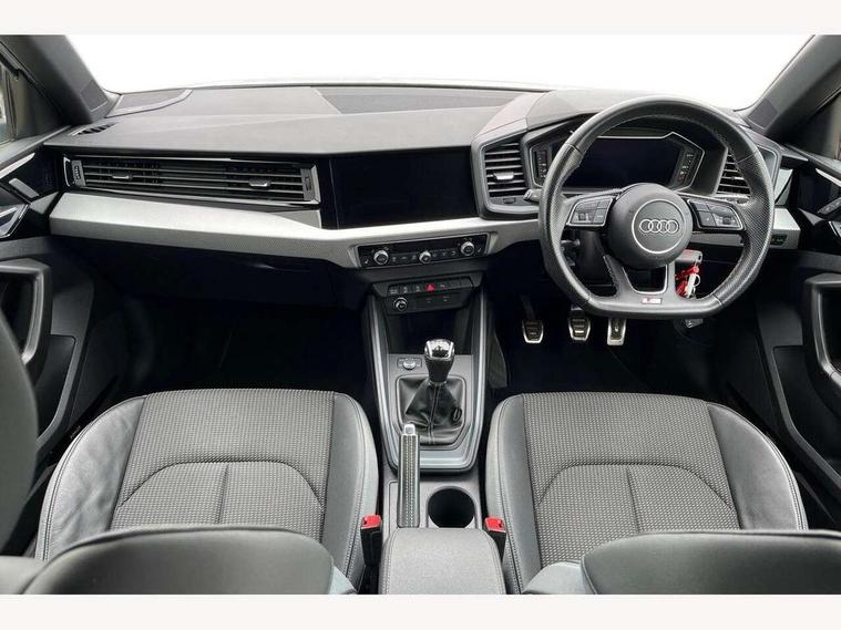 10.25" Digital instrument cluster display classis style instrument dials + speed, odometer, time, outside temperature, telephone menu + fuel level warning, Audi drive select - power steering assistance + engine, Audi smartphone interface with connect compatible smartphone via USB directly MMI display + Nav, music, third party apps controlled via MMI controller, Automatic start/stop system, Bluetooth interface, Cruise control, Driver's information system, Electromechanical power steering, Emergency e-call, Emergency services call system, Lane departure warning system, Service interval indicator, Speed limiter, Voice control system, Washer fluid level indicator, Sports suspension, 1 x SDXC card reader, 2 x USB type C connection points, DAB Digital radio, MMI radio plus with 8.8" colour MMI display screen and MMI touch, Auto dimming rear view mirror, Black door mirrors, Black side skirts, Body coloured bumpers, Door sill trims with aluminium inlays and logo, Electric front and rear windows, Electrically adjustable, heated, folding door mirrors with integrated LED side indicator, Front side air inlets in grained matt black and C frame in anthracite black, Front wing badges, Heat insulating glass windscreen and side windows, Heated rear windscreen, High level LED brake light, LED headlights with LED rear lights + dynamic rear indicators + headlight adjustment and high beam, turning light + LED daytime running lights, Radiator protective grille frame in matt aluminium silver, Rain and light sensors, Rear diffuser strip in matt titanium black, Rear fog lights, Rear side wing doors, Rear wing door, Rear wiper, Side front spoiler lips in grained matt black, 12V socket in centre console with two cup holders, 3 rear seats with headrests, 3 seat bench in 2nd row, 3 spoke flat bottomed multi-function plus leather steering wheel with S badging, grips in preforated leather and contrast stitching, 40:60 Split folding rear seat or folded fully, Black cloth headlining, Driver and passenger seat with manual height adjust with forward and backwards adjustment, Front and rear black floor mats with contrast stitching in fine silver, Front head restraints, Front passenger seat, Height and reach adjustable steering wheel, ISOFIX child seat mounting for front passenger and outer rear seats including top tether attachment point of outer rear seats, Leather gear knob with aluminium trim, Luggage compartment light with front and rear reading lights, Manually adjustable lumbar support in front seats, Stainless steel pedals, Black styling pack - A1 Sportback Black Edition, LED interior lighting pack - A1, Luggage compartment pack - A1, 3x3 point rear seatbelts, Audi pre-sense front with pedestrain and cyclist recognition, Brake assist function, Driver and front passenger airbag with front side and head airbags, Electronic Stability Control including ABS, EBD, ASR and EDL, Front passenger airbag deactivation switch, Hill hold assist, Manual rear child locks, Seatbelt height adjustment for front seats, Seatbelt monitoring, Tyre pressure warning light, Warning triangle and first aid kit, Anti theft alarm, Anti theft wheel bolts and loose wheel warning, Immobiliser, Remote central locking with 2 foldaway keys, Aluminium trim for control switches, air vents and digital instrument cluster, Silver grey inlays polygon structure in diamond paint finish, Structured grey accent areas including air vents, door handle recesses and centre console in quartz paint finish, 18" 7 spoke rotor design alloy wheels in gloss anthracite black, diamond cut finish,