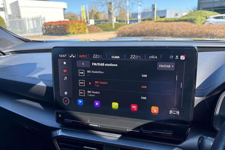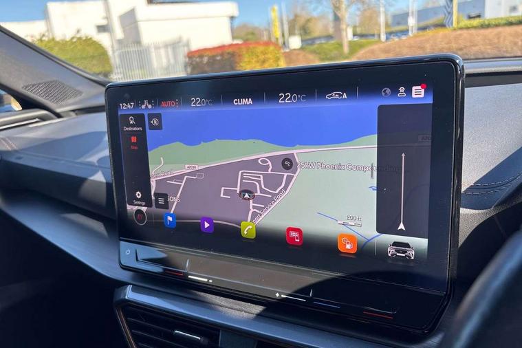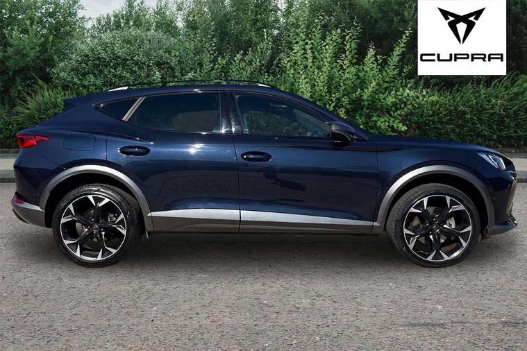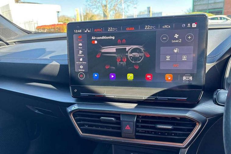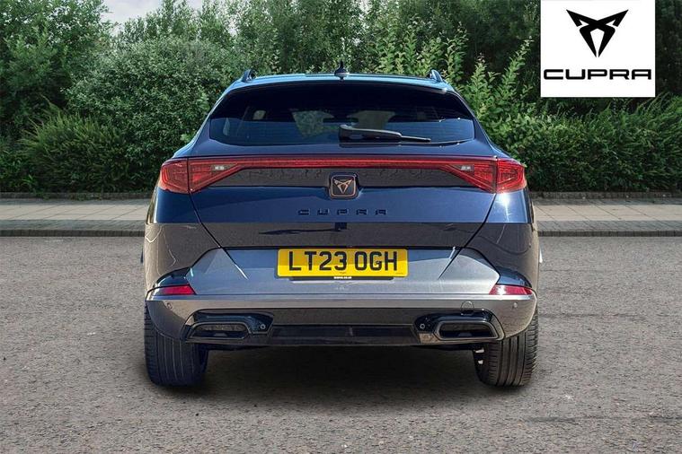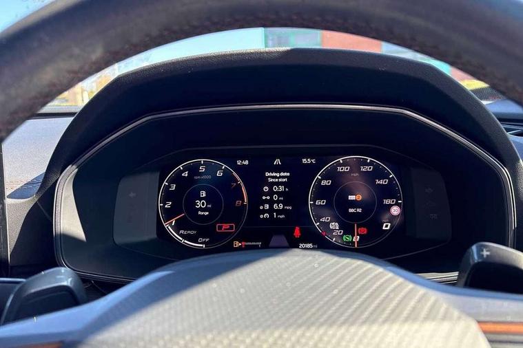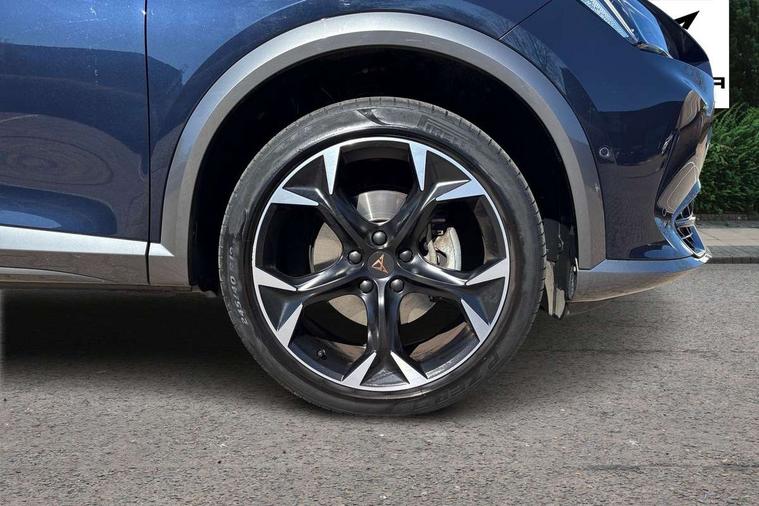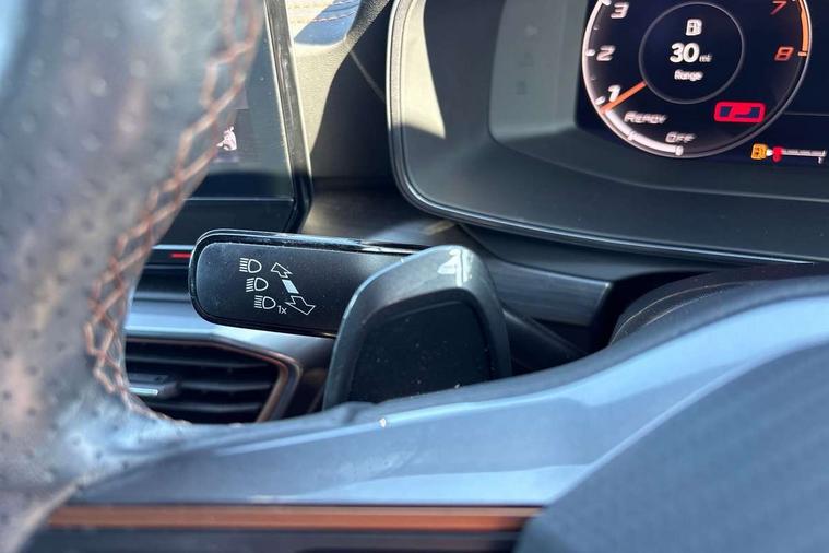 Digital cockpit and configurable dashboard, Driver alert system, Driving profile selection, Forward collision warning with automatic braking, Lane assist, Navigation system with 12'' Touchscreen Display, Park assist (inc front/rear parking sensors), PAS, Predictive adaptive cruise control with speed limiter, Rear view camera, RPM, trip computer, outside temp gauge, instrument light brightness, low fuel warning light, lights on reminder, gearshift indicator, Service interval indicator, Start/stop system with regenerative braking, Voice control system, Wireless apple carplay, Wireless phone charger, Electronic locking differential and dynamic traction support, Standard suspension, 2 front and 2 rear USB type C sockets, Auxiliary input socket, DAB radio, Auto dimming rear view mirror, Body colour door handles, Body coloured bumpers, Dark grey wing mirror, Daytime running light with automatic headlight control and coming home feature, Dynamic headlight range control, Electric front/rear windows, Electrically adjustable heated and folding door mirrors with memory function, Front fog lamps with cornering function, Gloss black roof rails and window surrounds, LED Headlights, LED Taillights with dynamic indicator, Rain sensing wipers, Rear diffuser with black simulated exhaust pipes, Rear side wing doors, Rear wash/wipe, Third brake light, Tinted rear windows, Welcome lights, 12v power supply in centre console, 12V socket, 12v socket in loadspace, 2 front and 2 rear reading lights, 230V socket, 3 seat bench in 2nd row, 60/40 split rear bench seat with armrest and mechanical seat release, Black headlining, Dust/pollen filter, Front and rear head restraints, Front centre armrest, Height/reach adjust steering wheel, Illuminated interior front door sills, Illuminated sunvisor with mirror, Isofix, Leather multi function heated steering wheel with gear shift paddles, Luggage tie-down hooks, Single front passenger seat, Three zone climate control with control panel in rear, Variable luggage/load compartment floor, Wraparound lighting, Genuine Nappa leather Pack - Cupra, 3 point seatbelts on all rear seats, ABS, Brake control system - ESC and brake booster, Child proof door locks, Driver and front passenger airbags with front passenger airbag de-activation, Electronic parking brake, Front and rear disc brakes, Front side curtain airbags, Hill hold control, Public e-call, Seat belt reminder for front and rear seats, Tyre pressure monitoring system, Anti theft alarm system, Keyless entry and start system (KESSY), Locking wheel bolts, Copper and aluminium interior detailing, 19" 'Exclusive' machined sport matte black and silver alloy wheels,